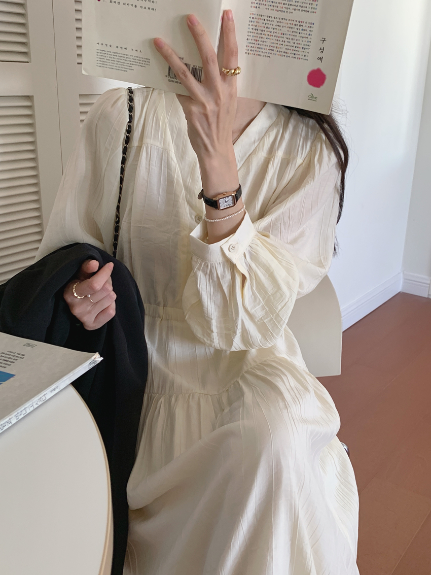 【商品名】【ワンピース】エレガント 合わせやすい 海外トレンド 長袖ワンピース