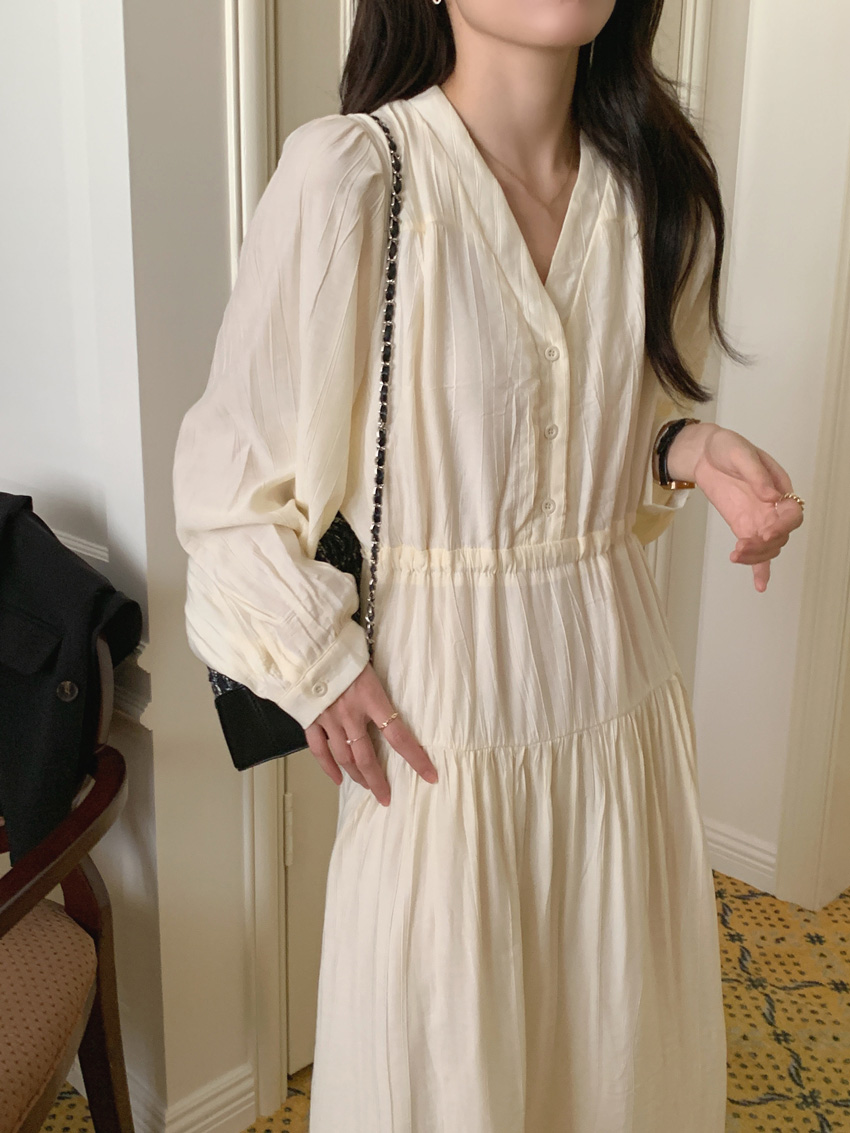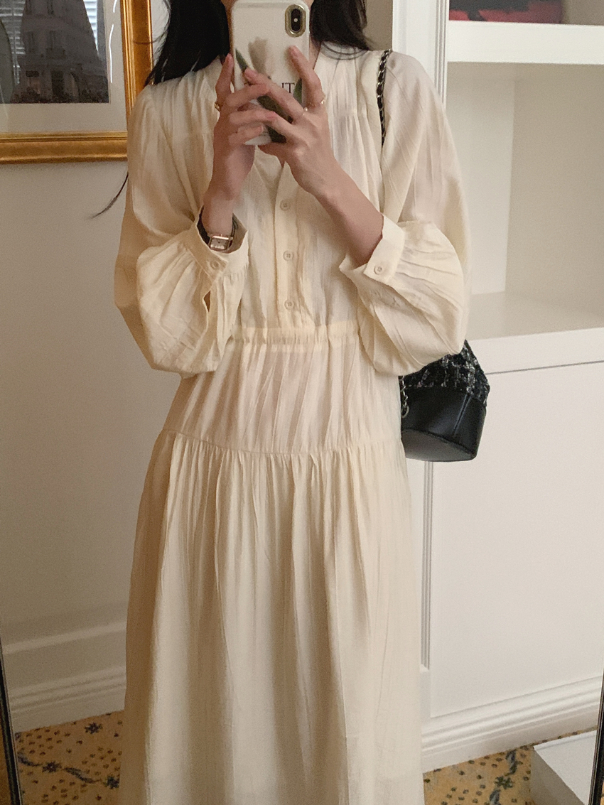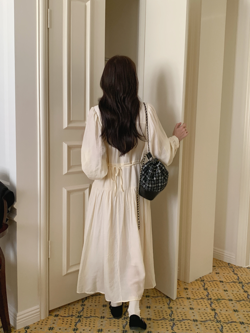 【24AW】【ワンピース】春秋夏 エレガント 合わせやすい 海外トレンド 長袖ワンピース