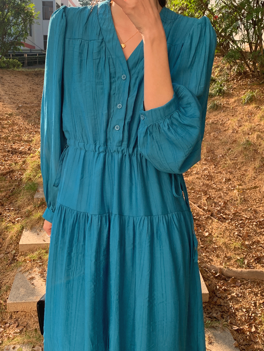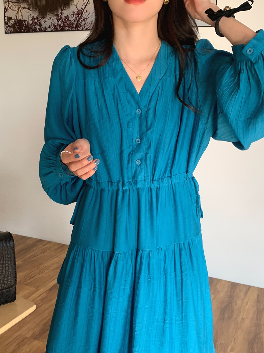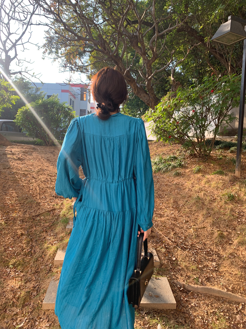 【ワンピース】春 秋 冬 リバーシブル プリーツ切り替え 大振裾 長袖 ワンピース 【JZシリーズ】【30~35日発送】