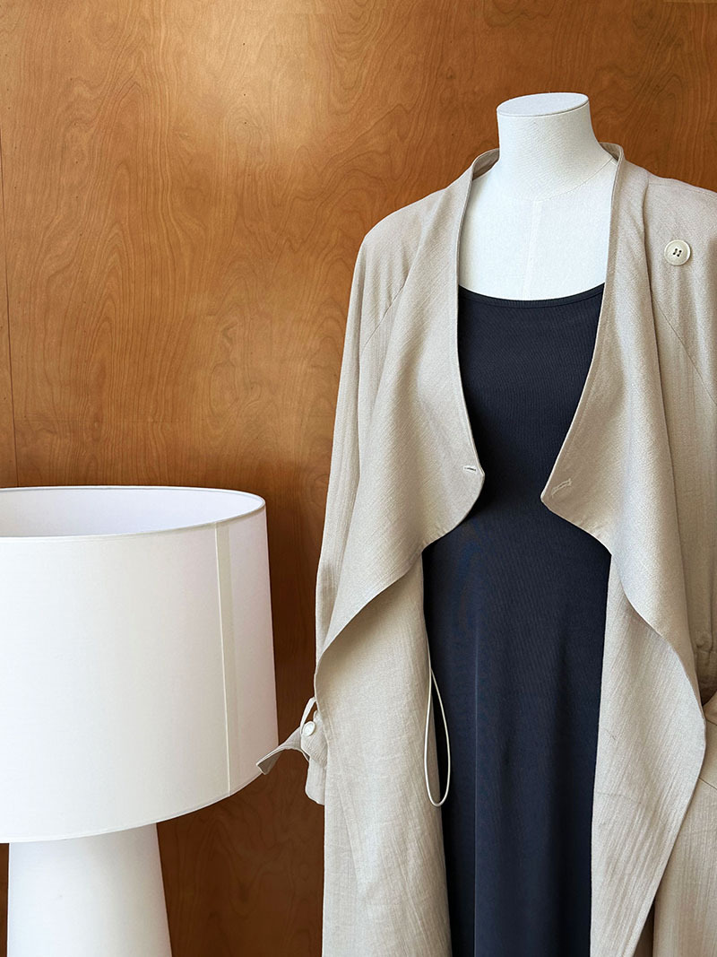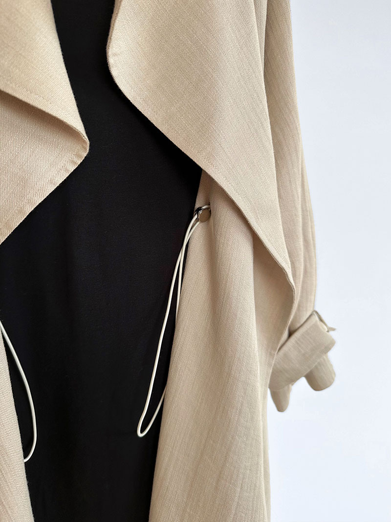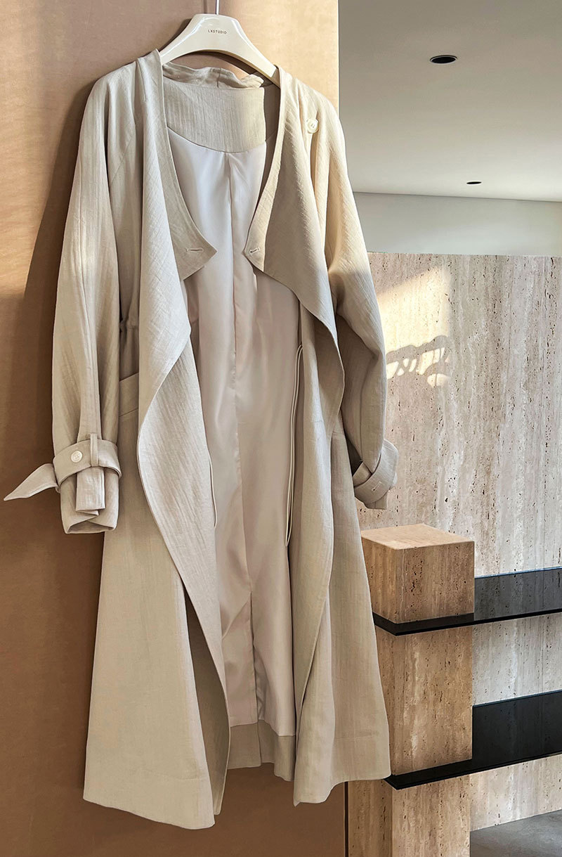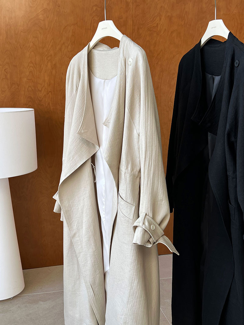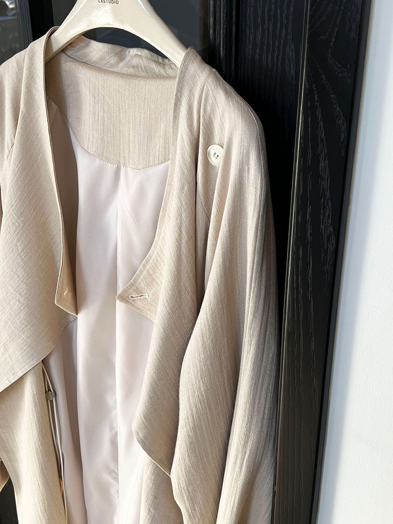 【商品名】【アウター】日系 シンプル 綿麻生地 高級感 無地 トレンチコート