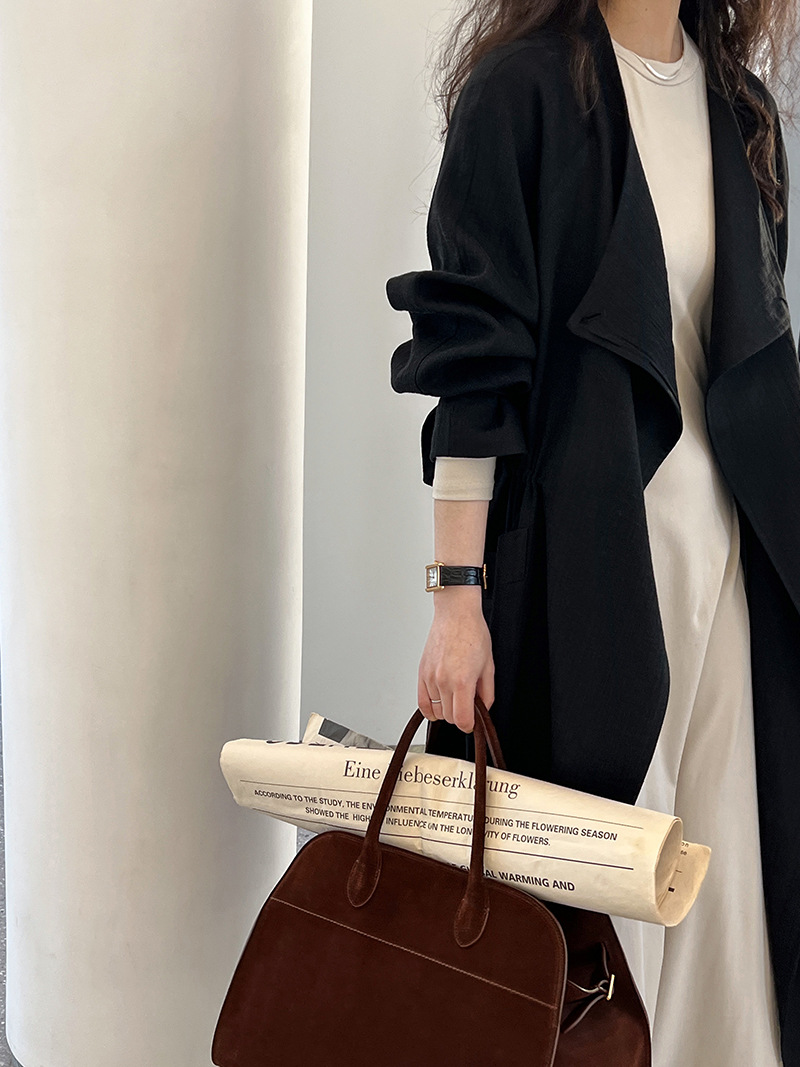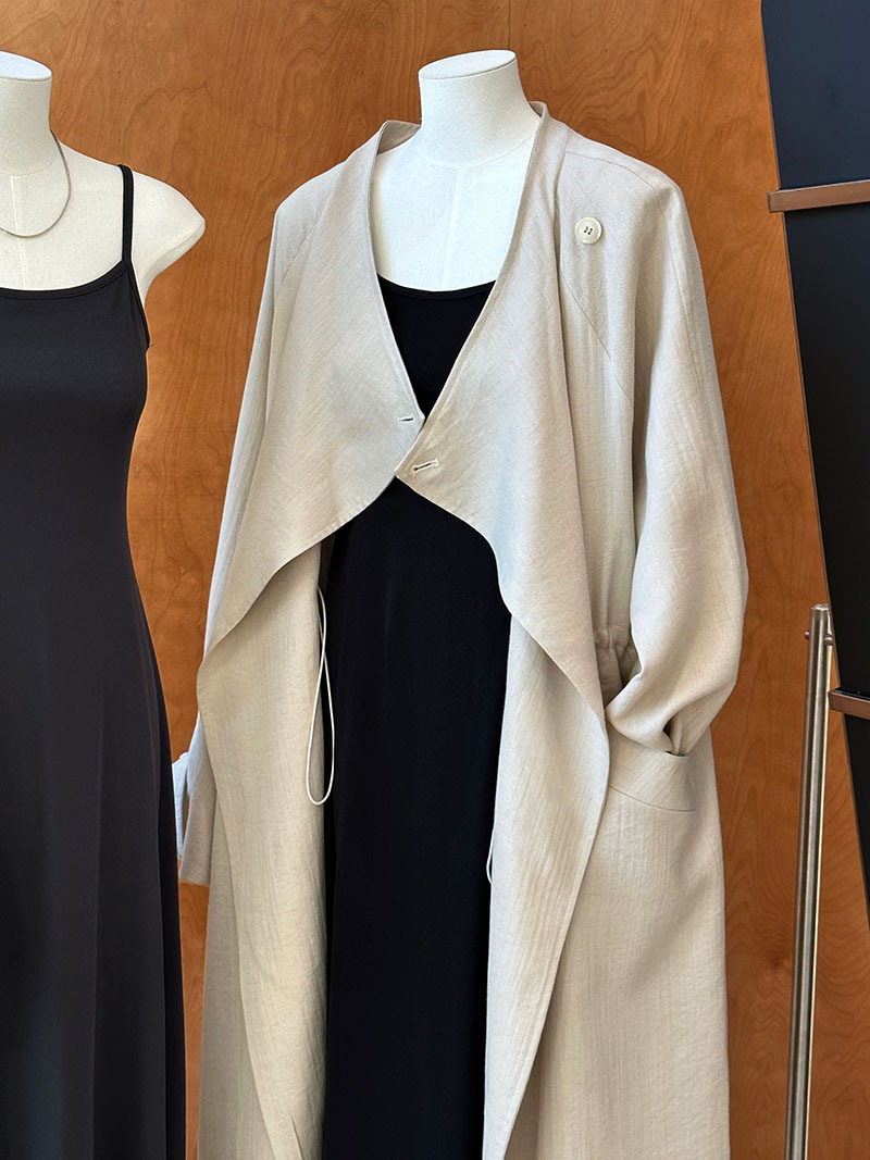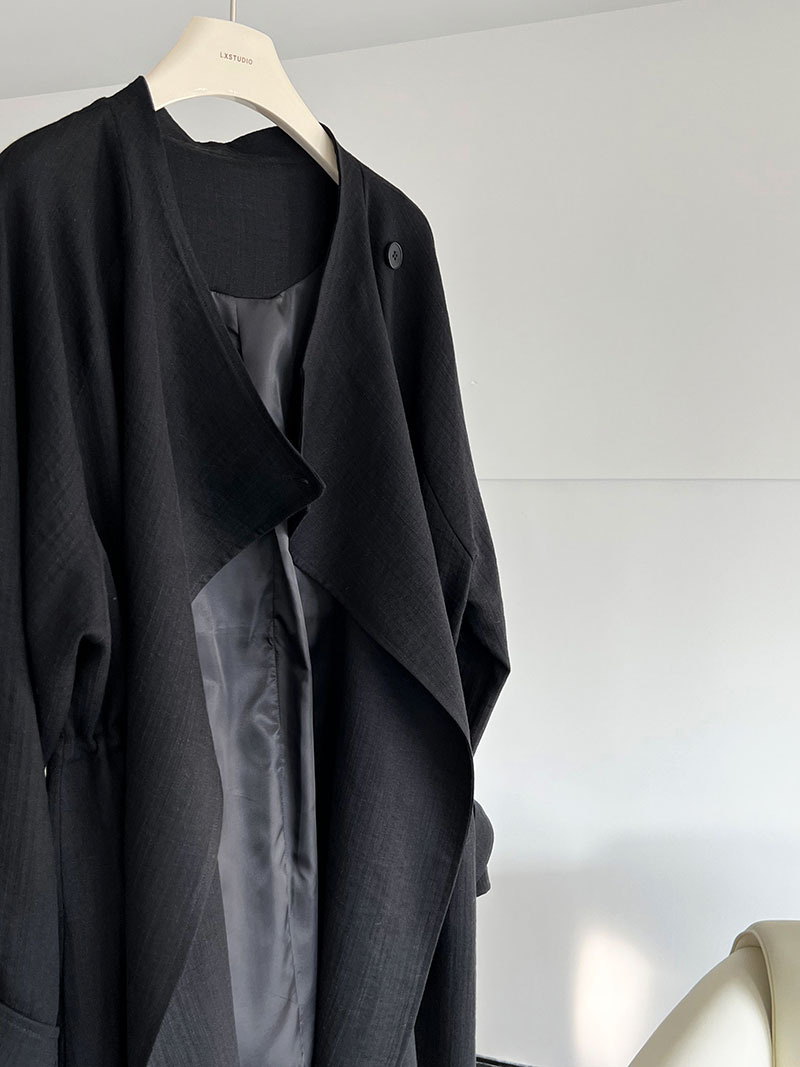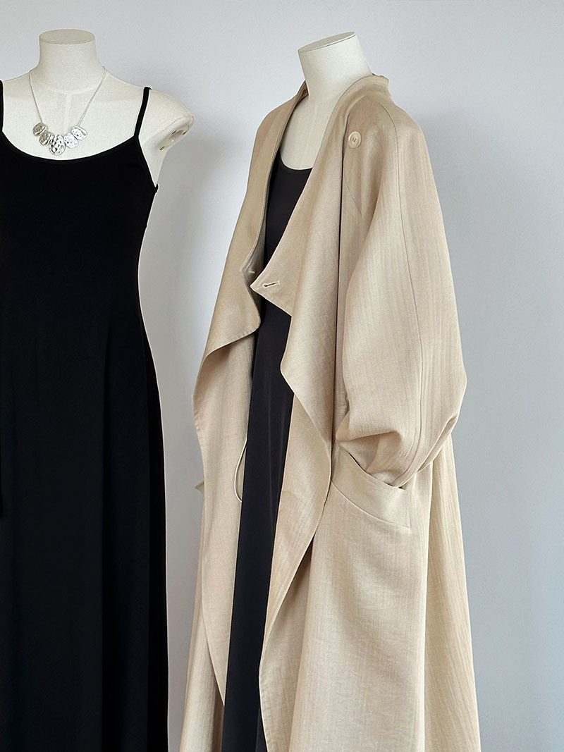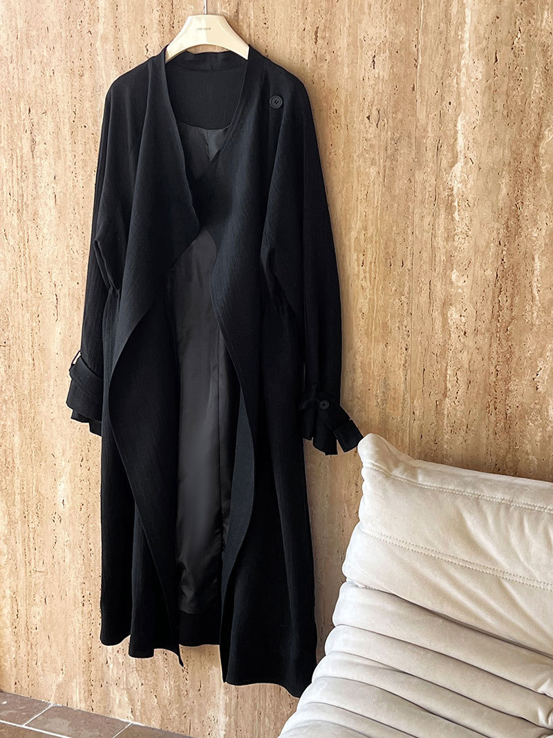 【商品名】【アウター】日系 シンプル 綿麻生地 高級感 無地 トレンチコート