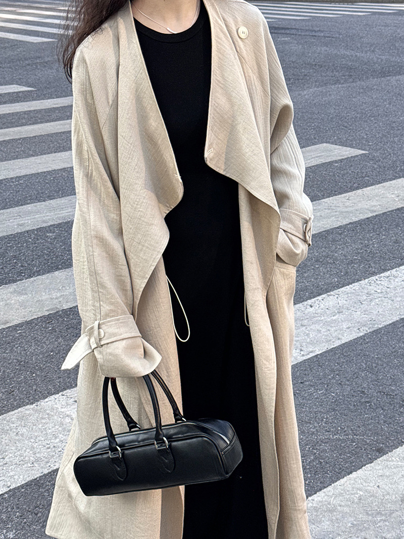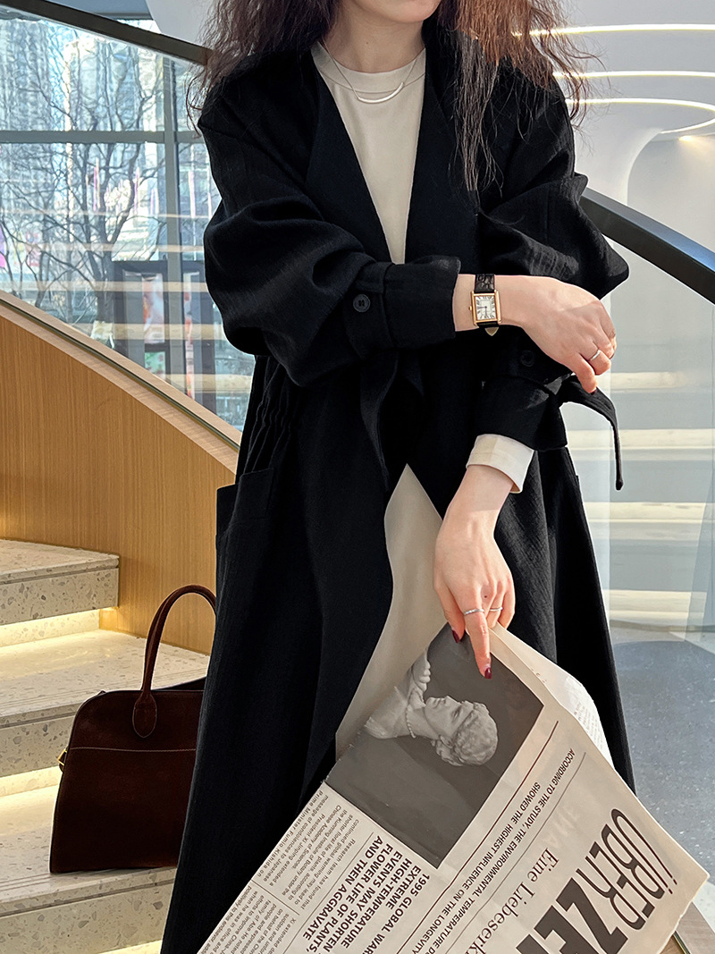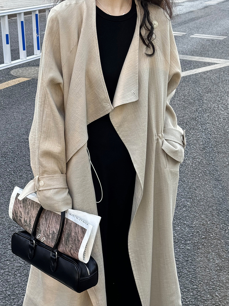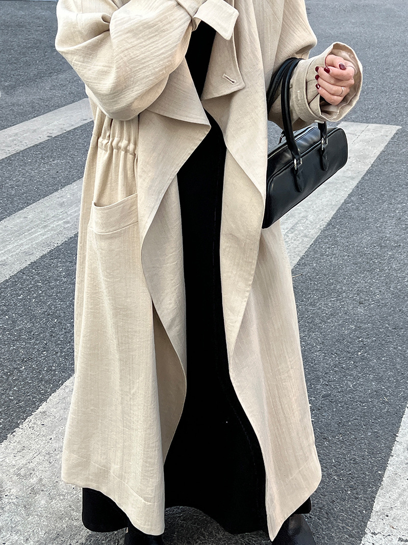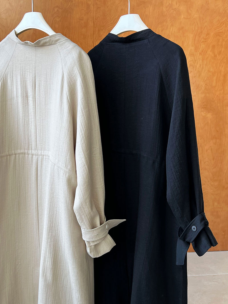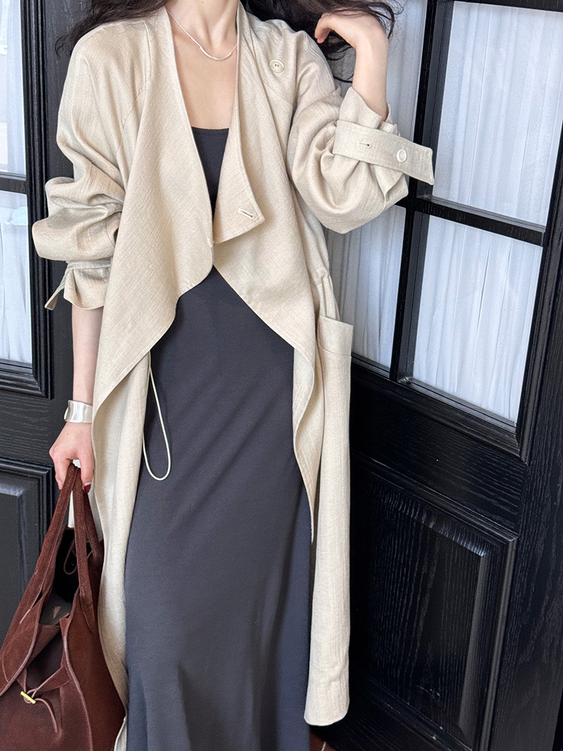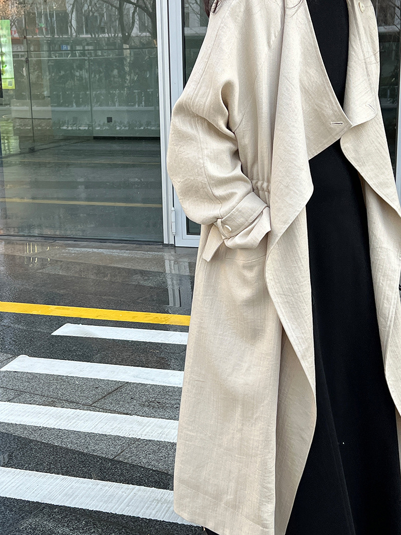 【アウター】日系 シンプル 綿麻生地 春秋 高級感 無地 トレンチコート【SNシリーズ】
