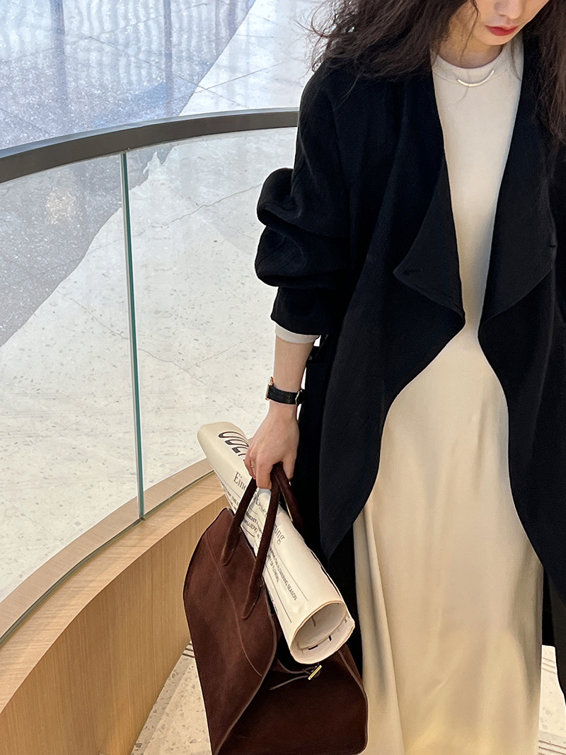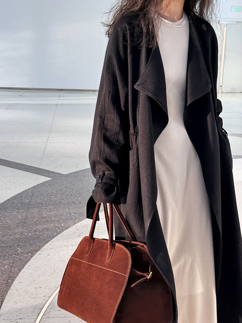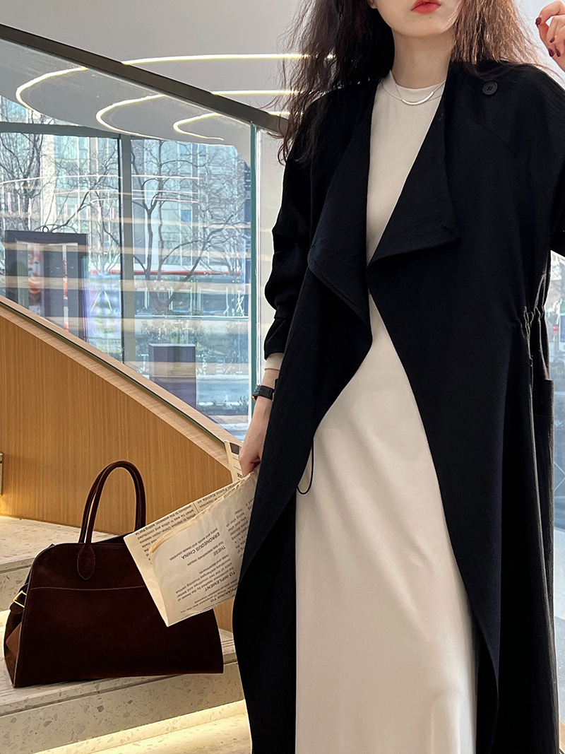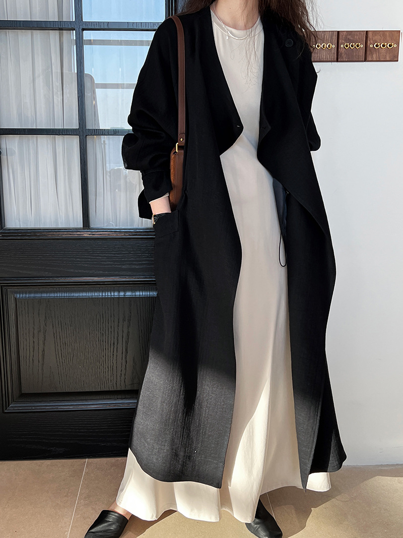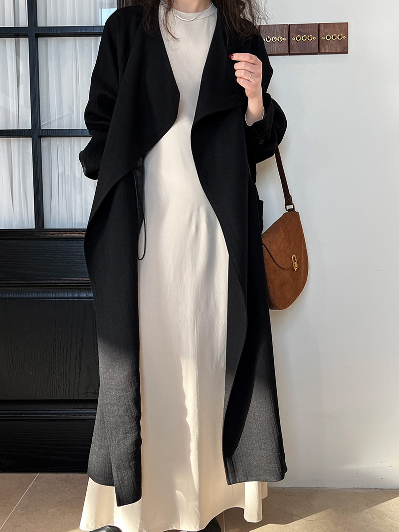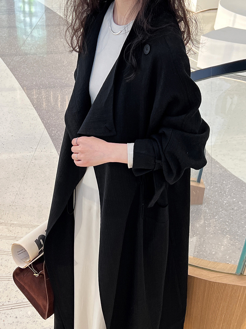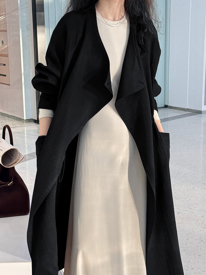 【アウター】日系 シンプル 綿麻生地 春秋 高級感 無地 トレンチコート【SNシリーズ】