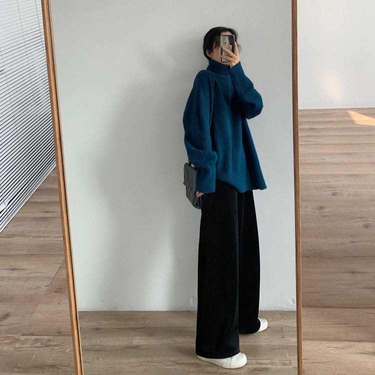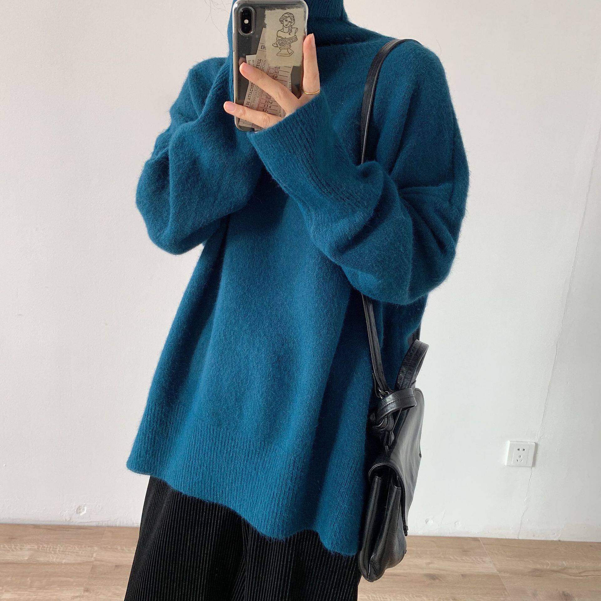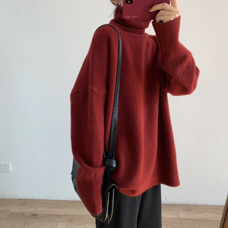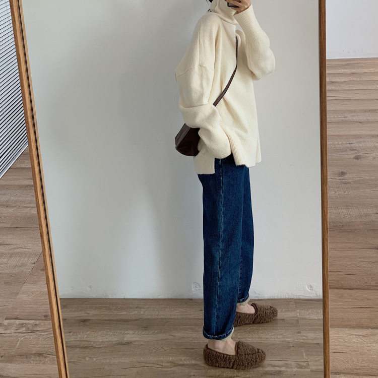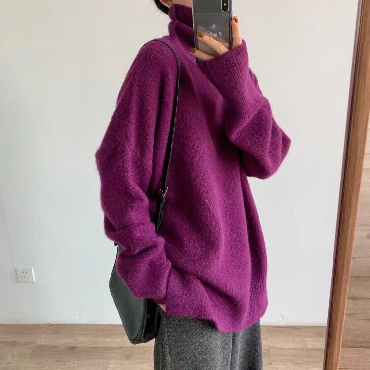 【トップス】秋冬 大きいサイズ ゆったり シンプル 無地 タートルネック セーター