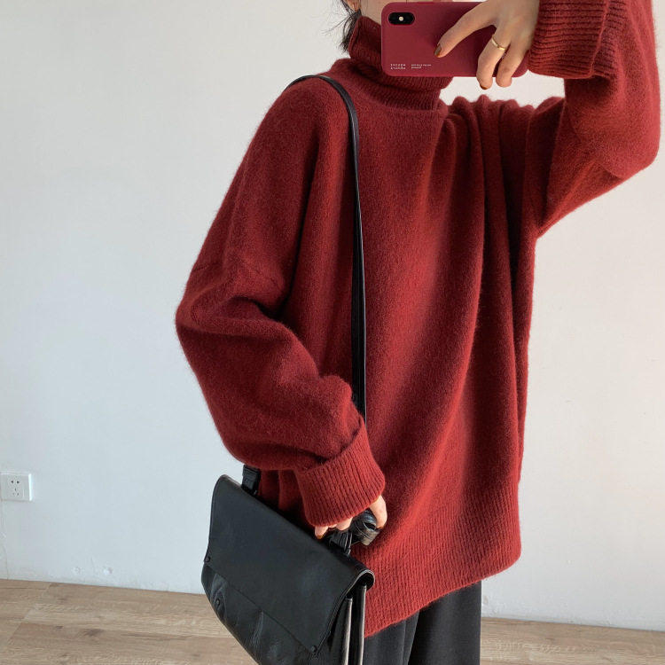 【商品名】【トップス】秋冬 大きいサイズ ゆったり シンプル 無地 タートルネック セーター
