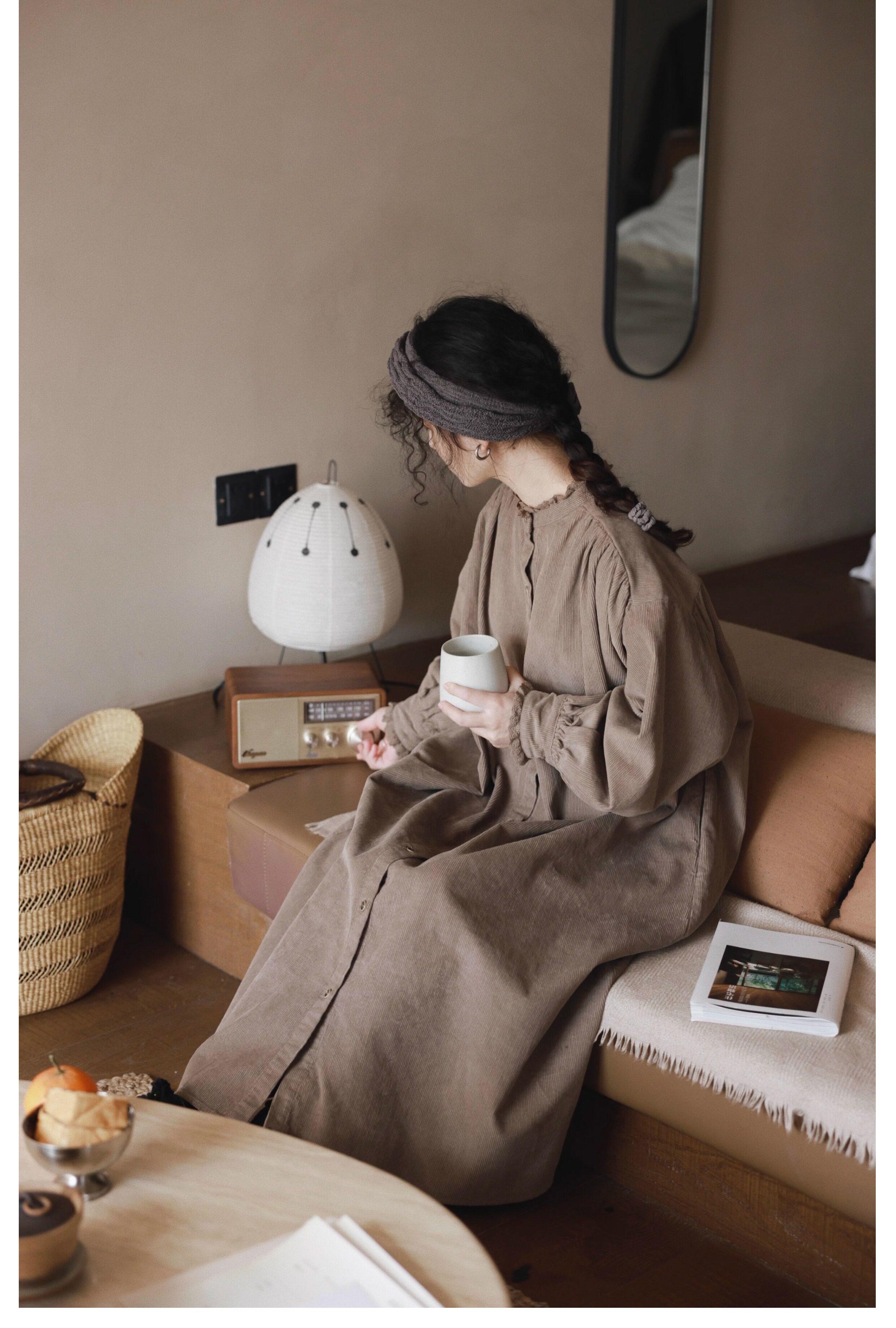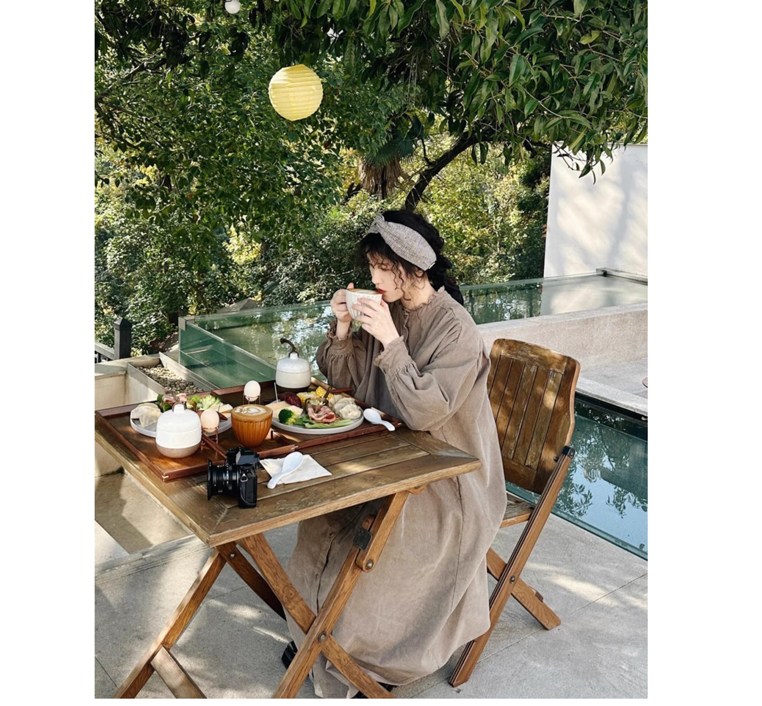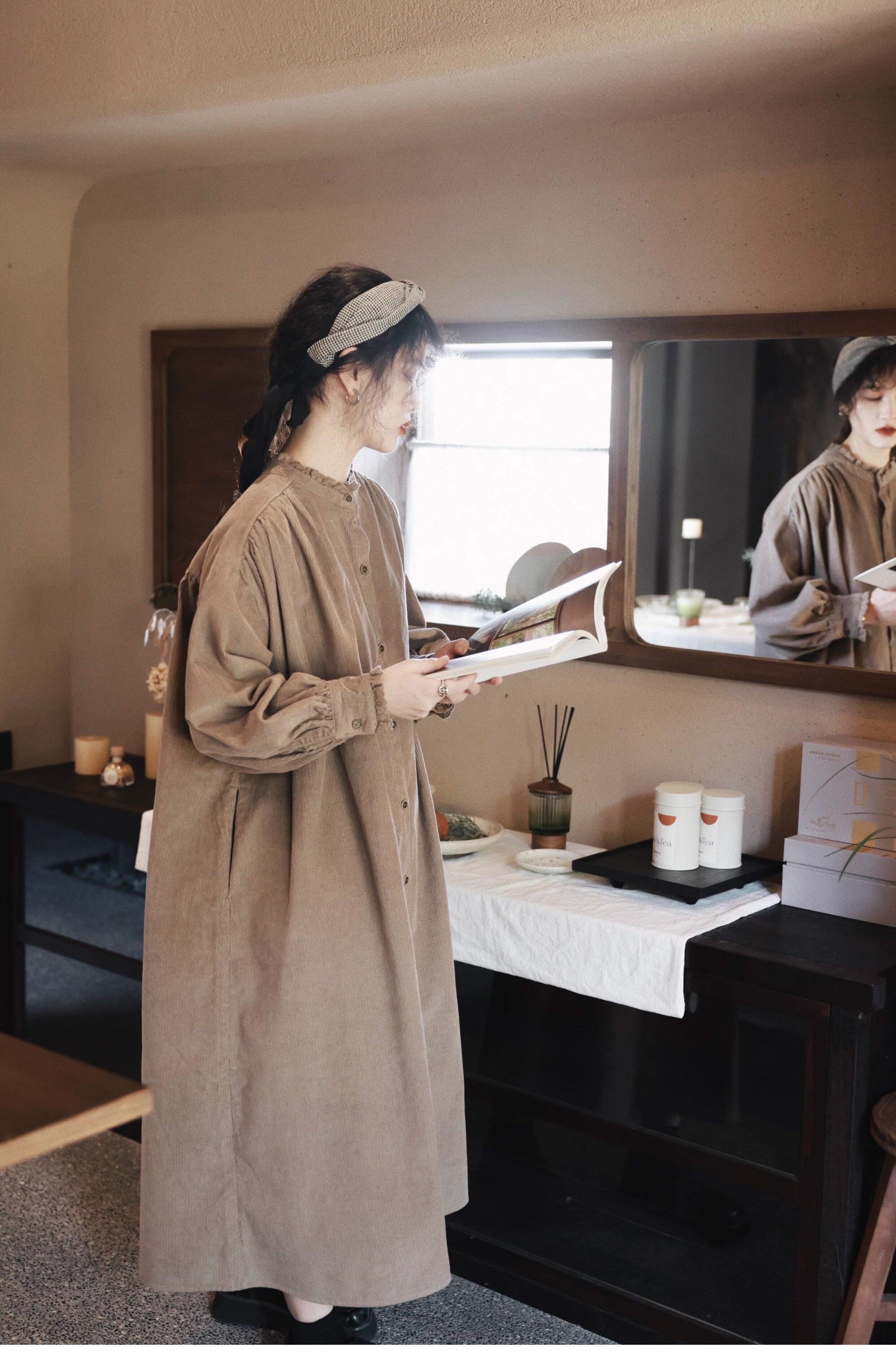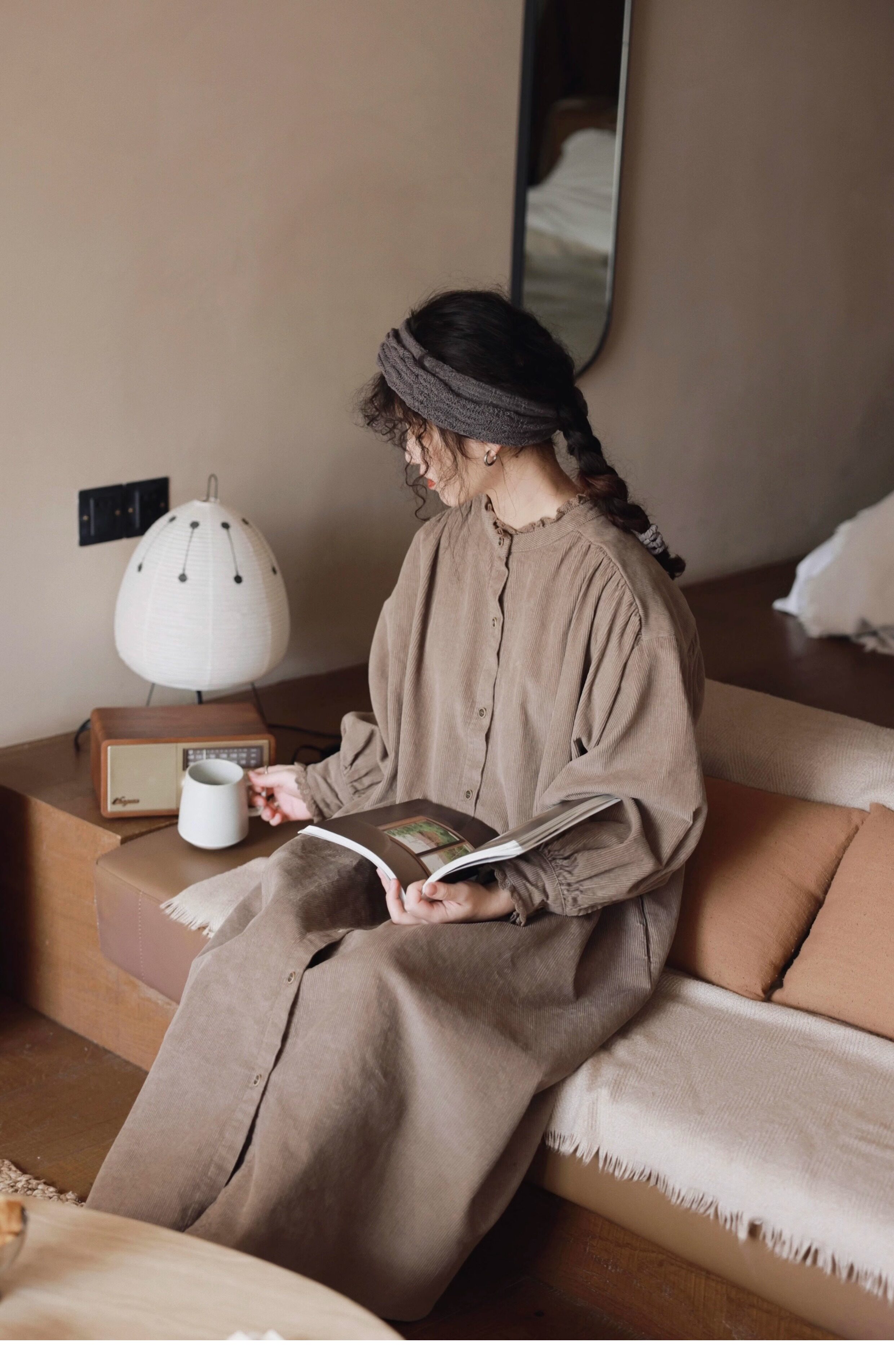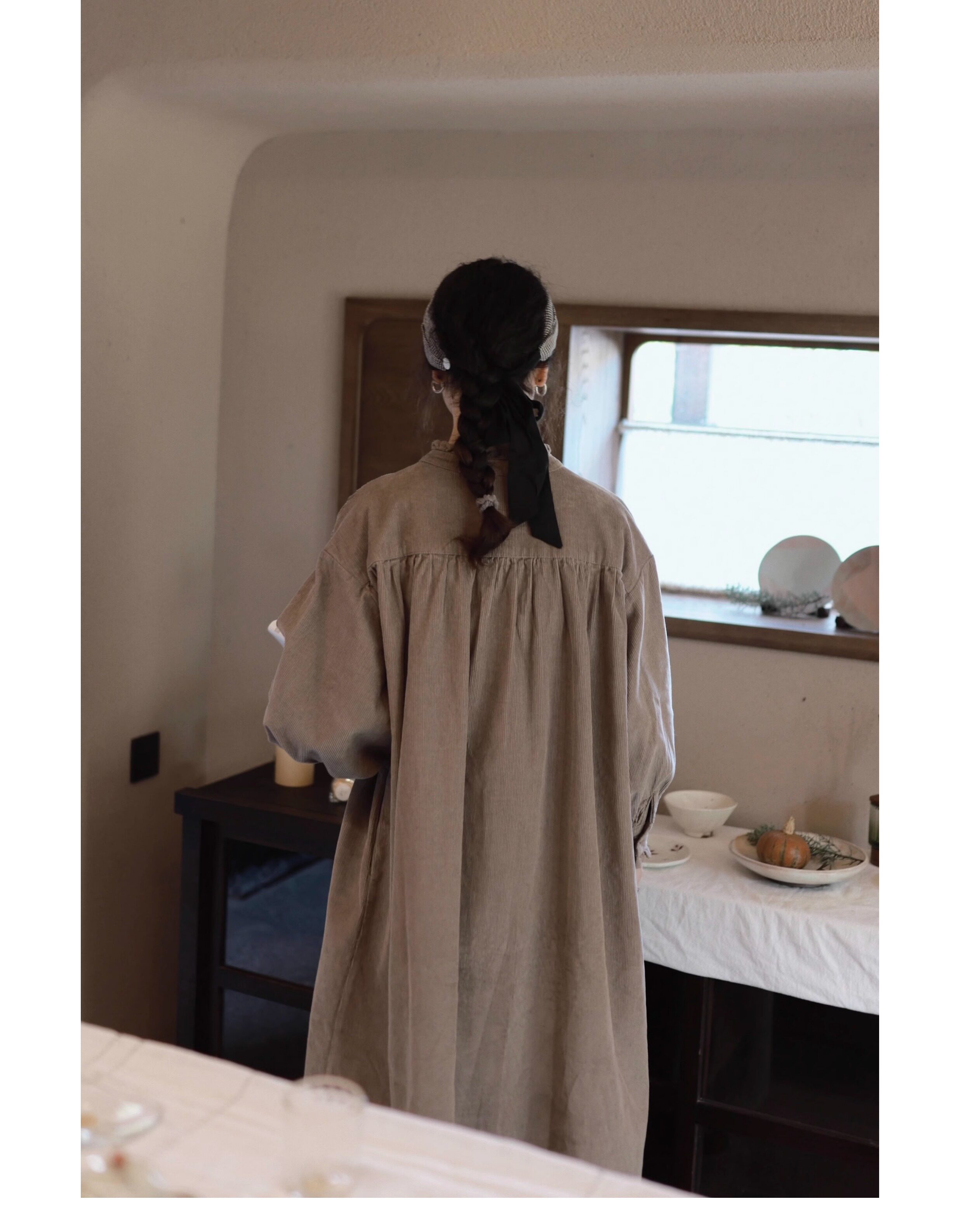 【商品名】【ワンピース】日系 レトロ 文芸スタイル スタンドネック 長袖ワンピース