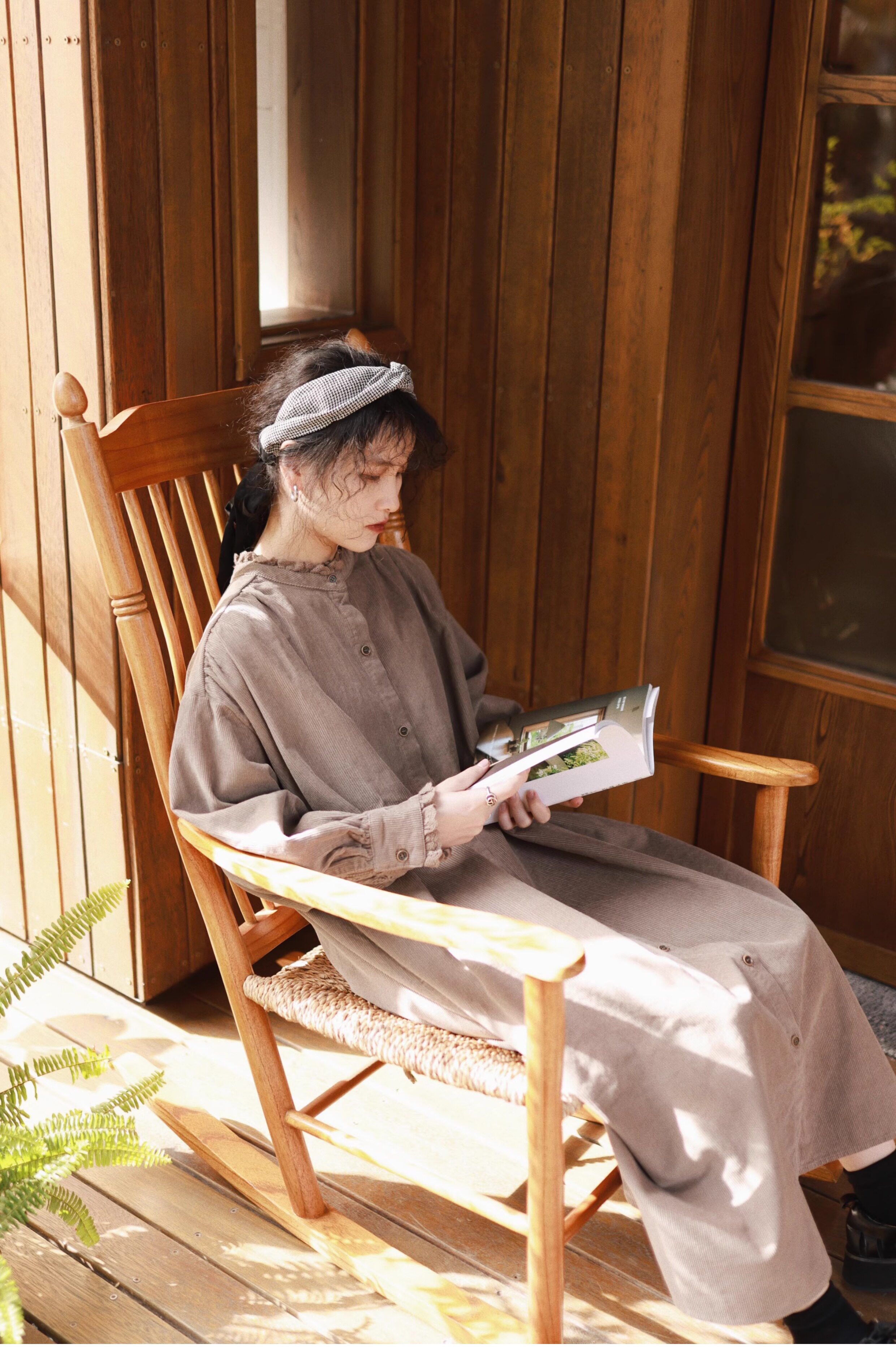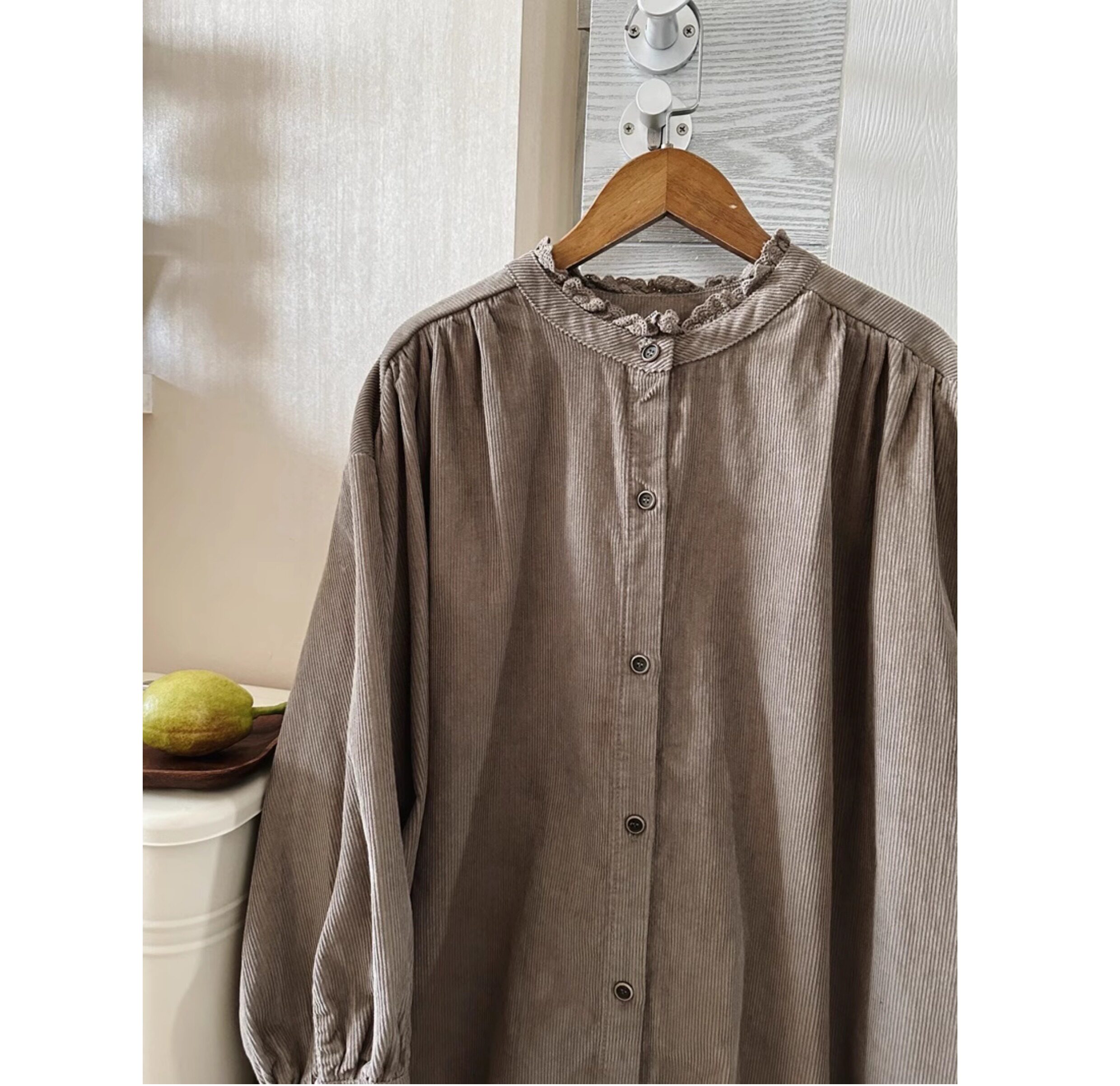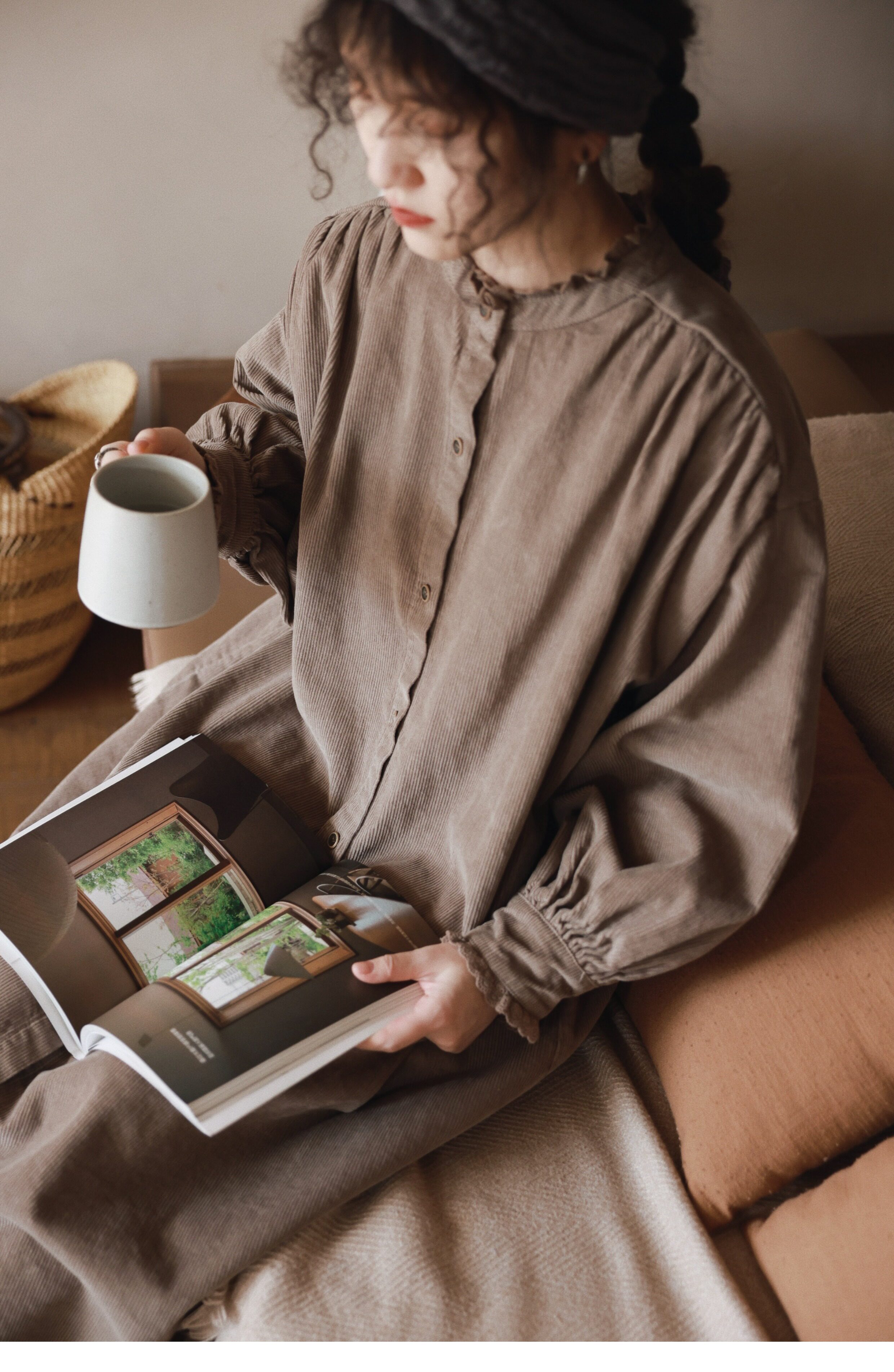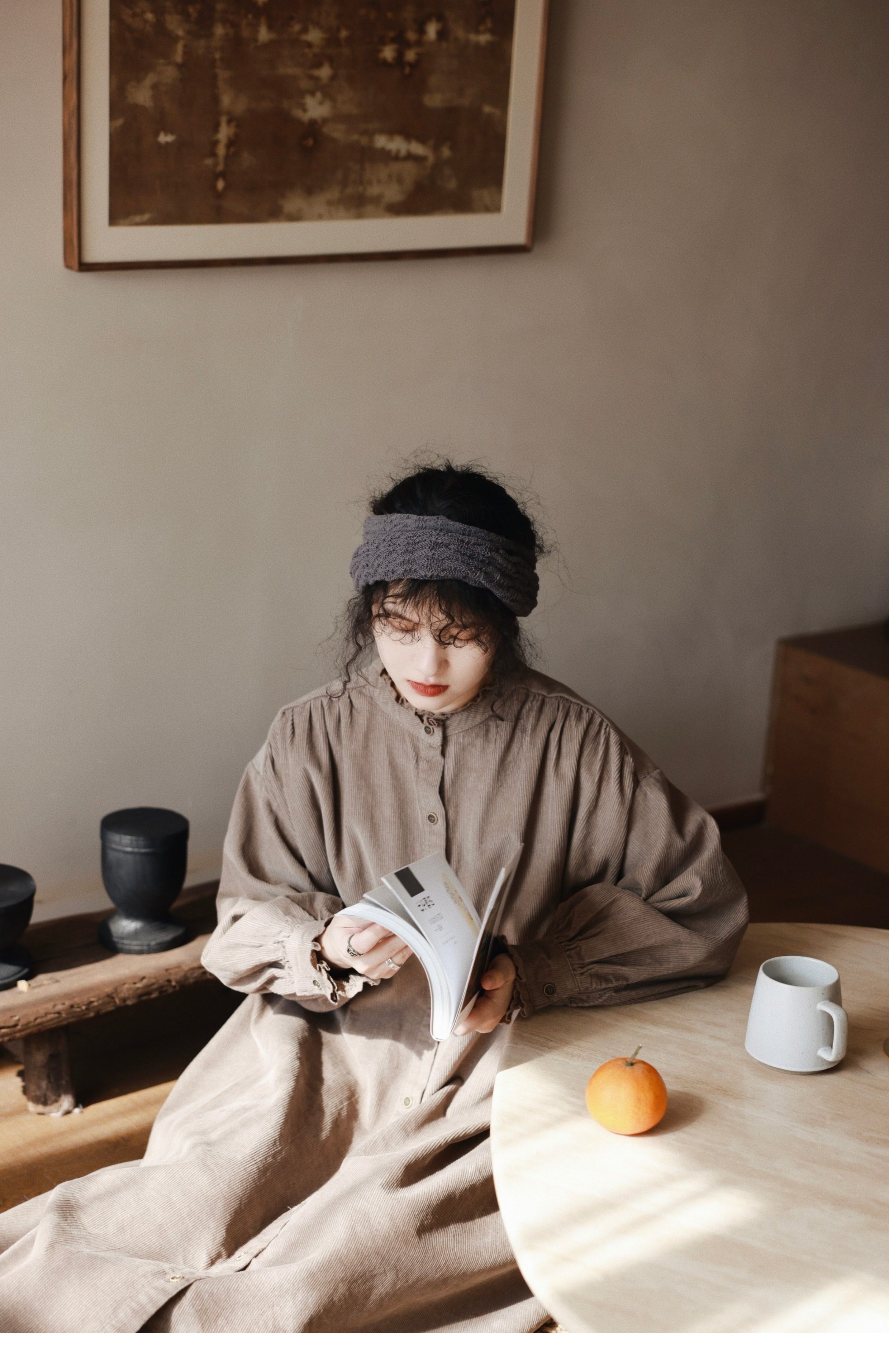 【商品名】【ワンピース】日系 レトロ 文芸スタイル スタンドネック 長袖ワンピース
