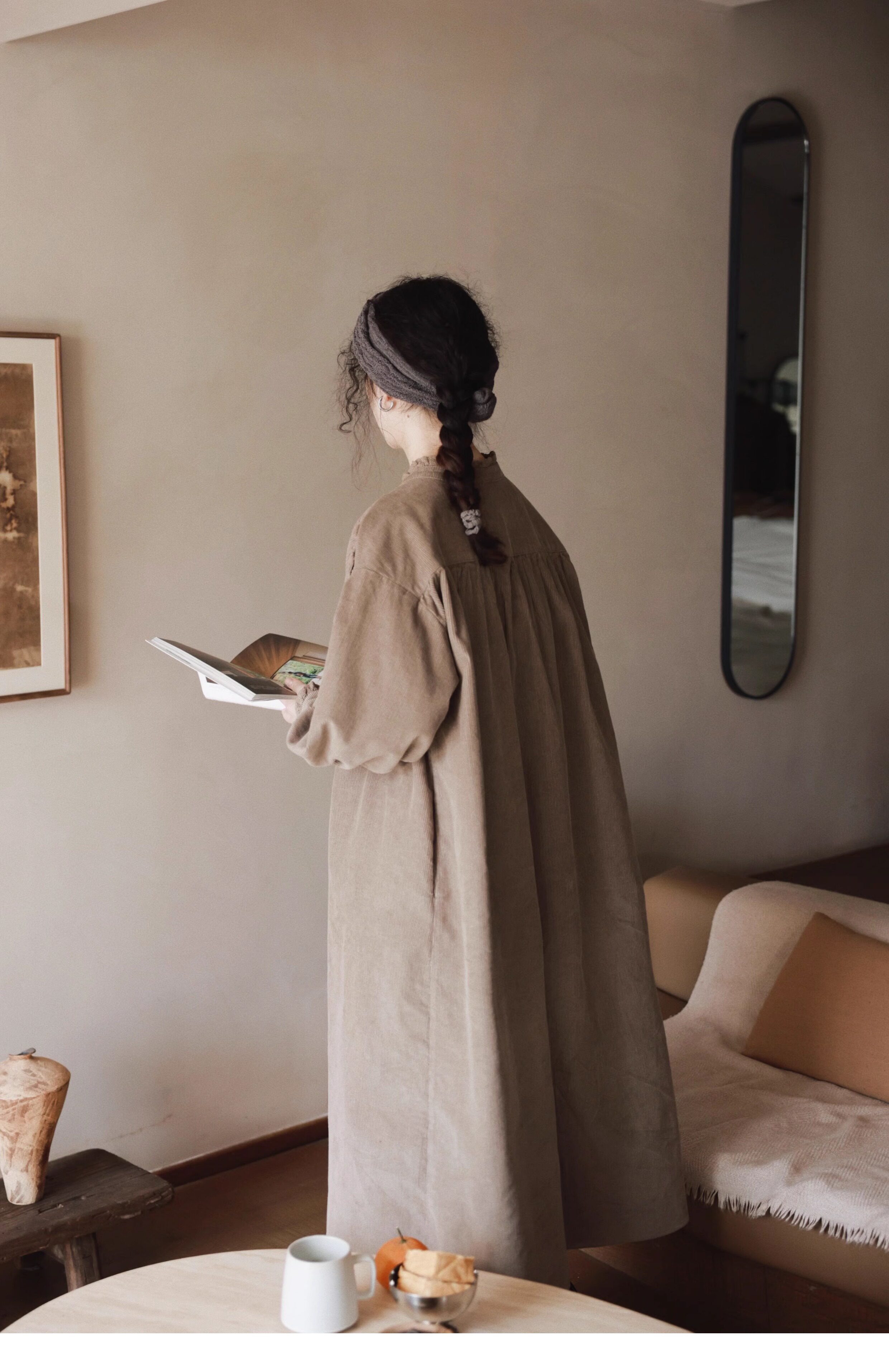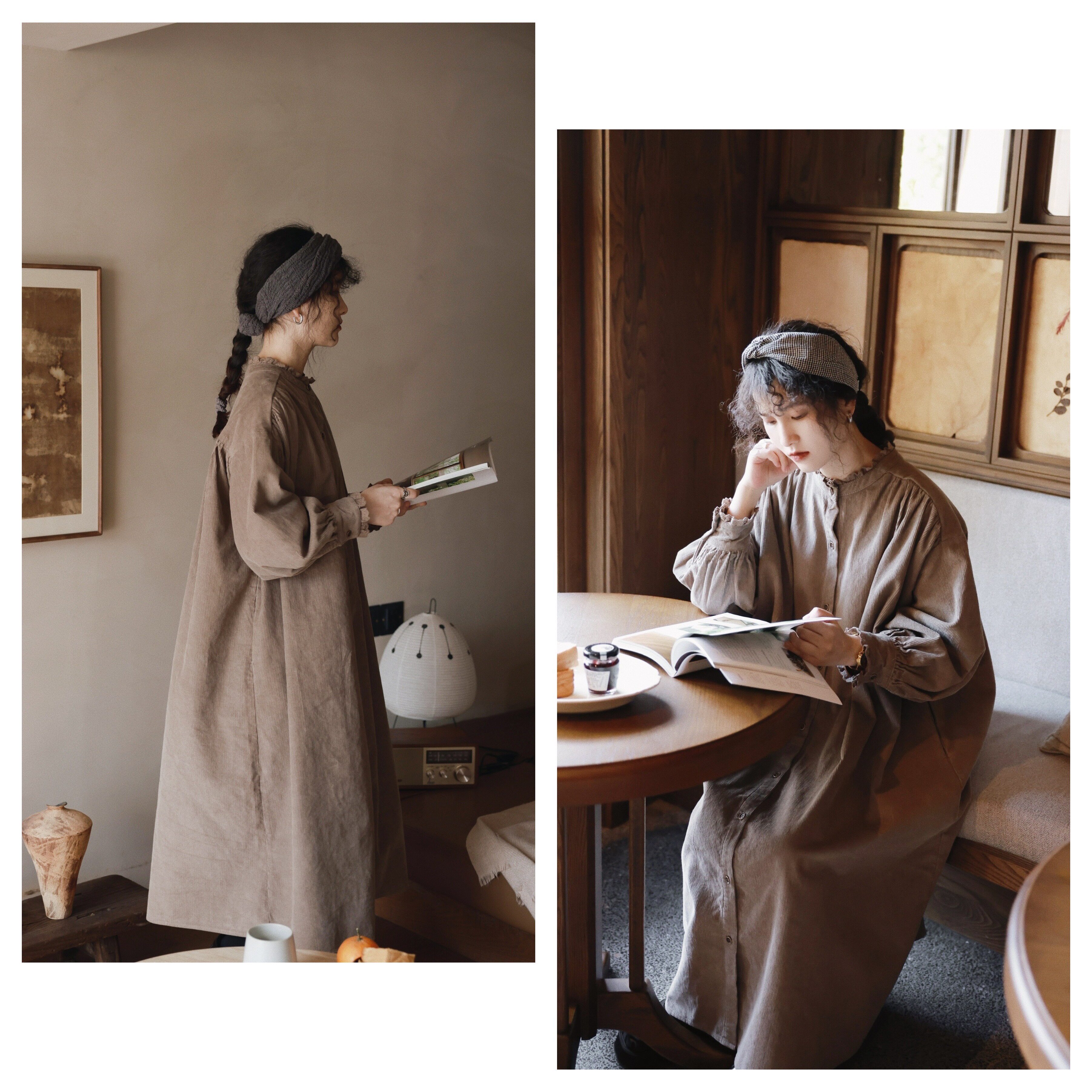 【ワンピース】春秋冬 日系 レトロ 文芸スタイル スタンドネック 長袖ワンピース