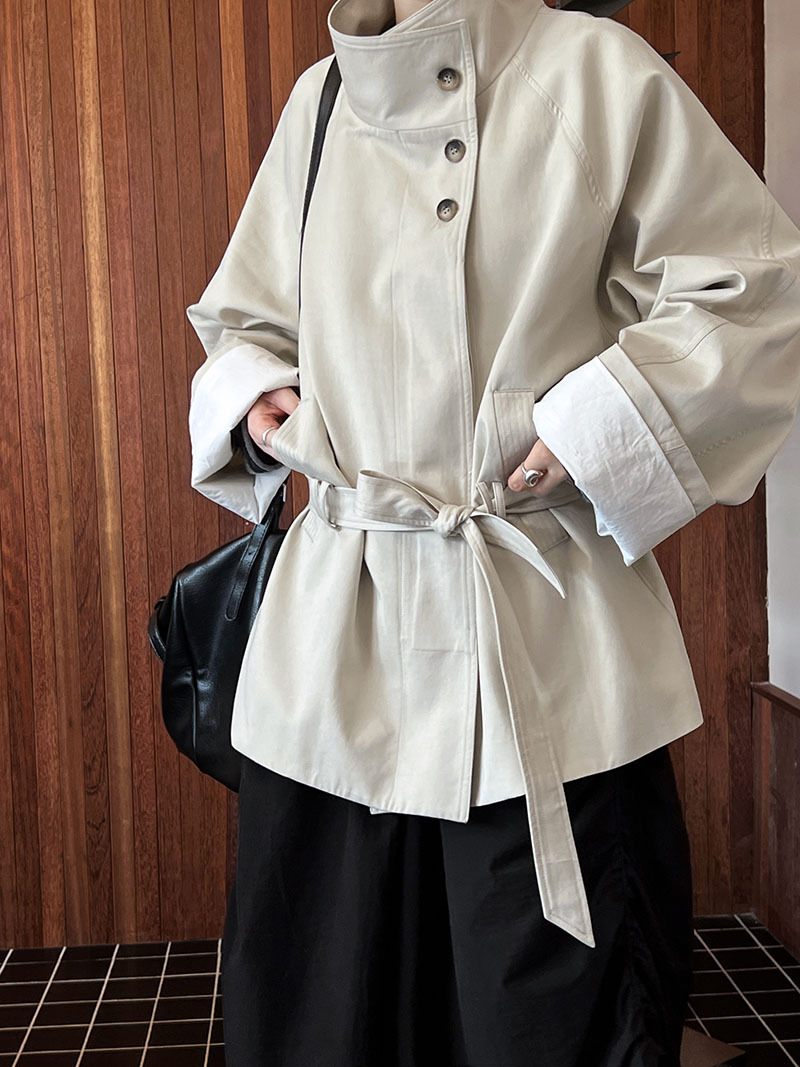 【商品名】【アウター】秋 スタンドネック 着痩せ 高品質 トレンチコート