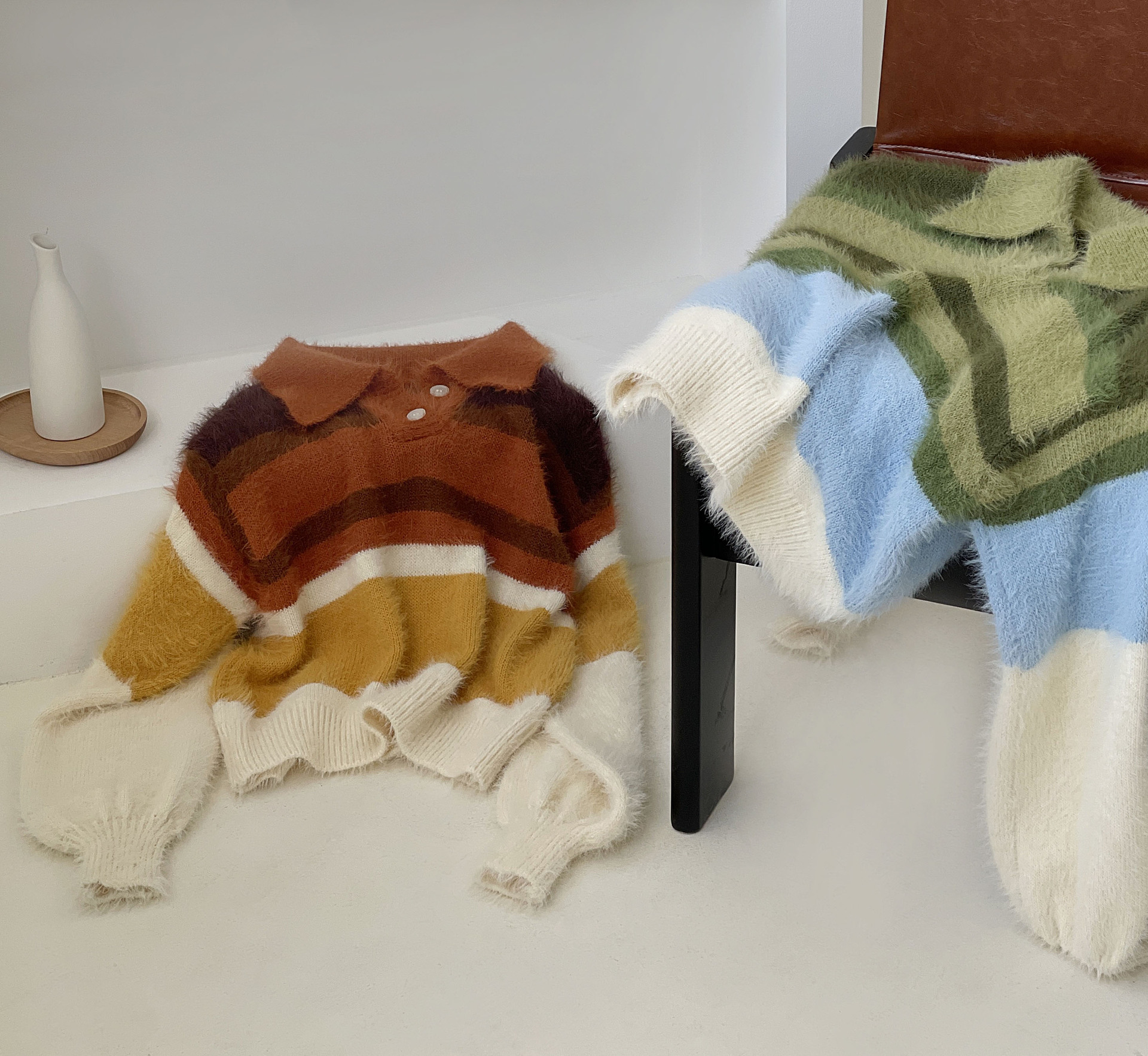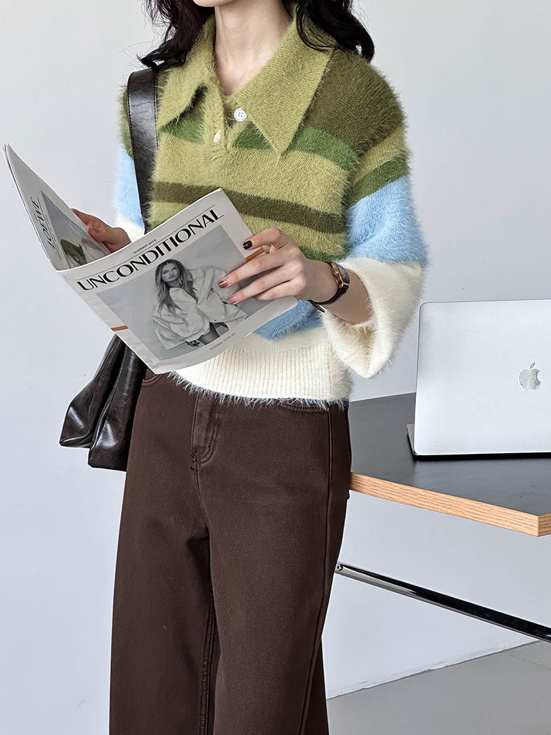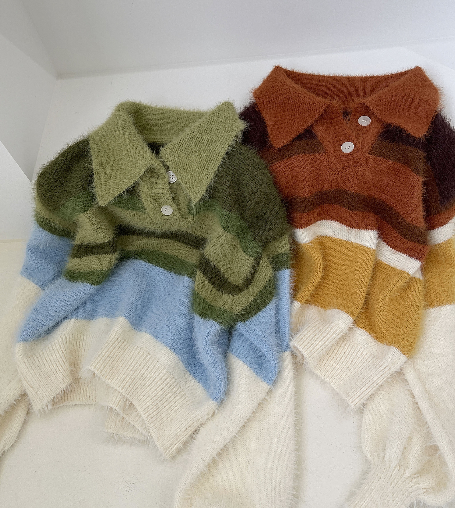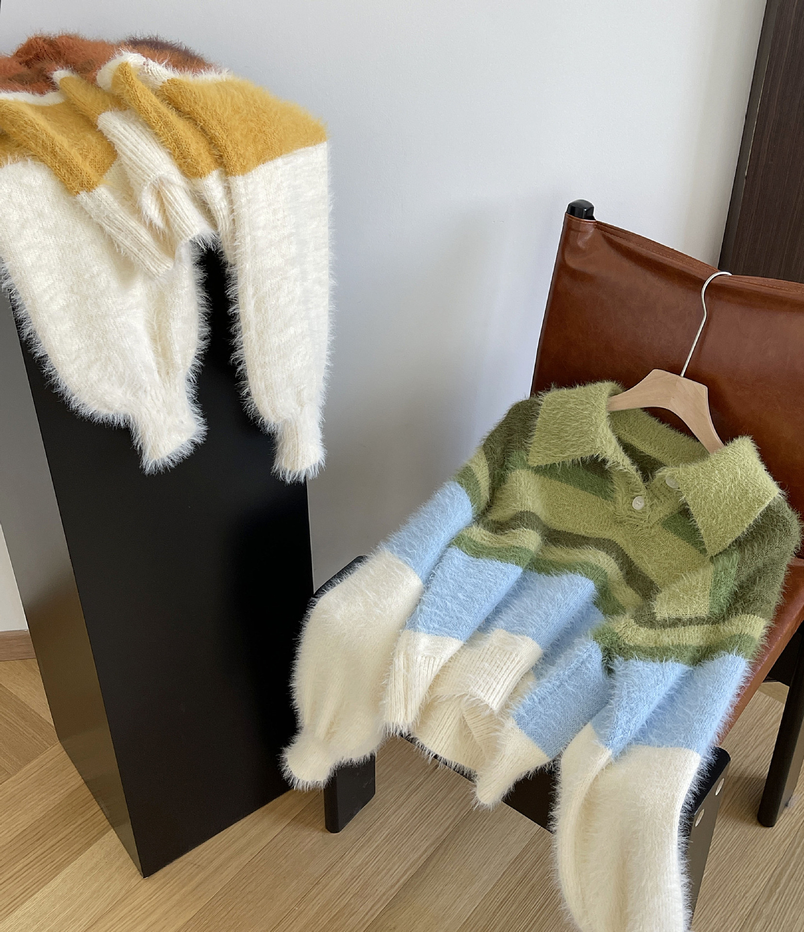 【商品名】【トップス】韓国風 折り襟 レトロ 大注目 ニットセーター