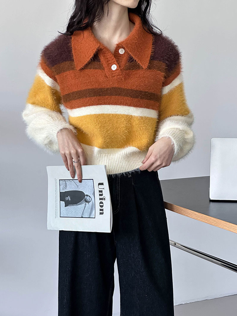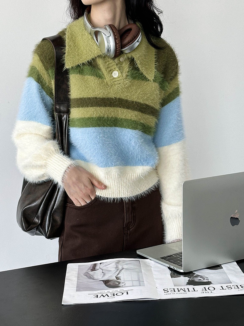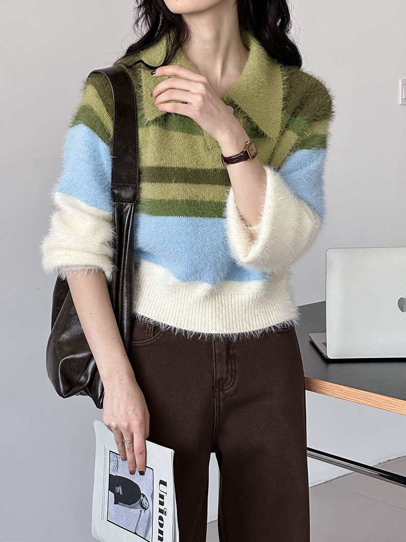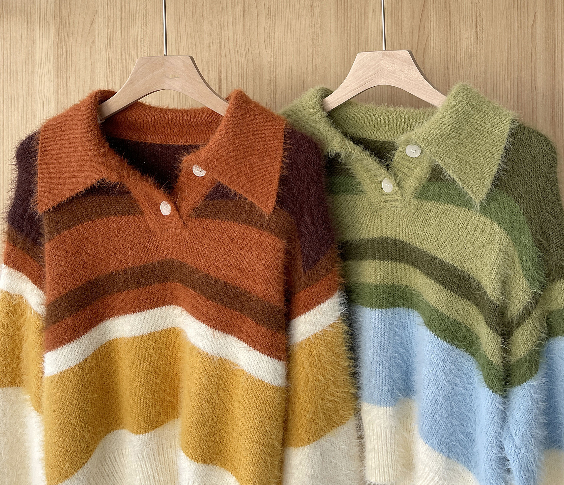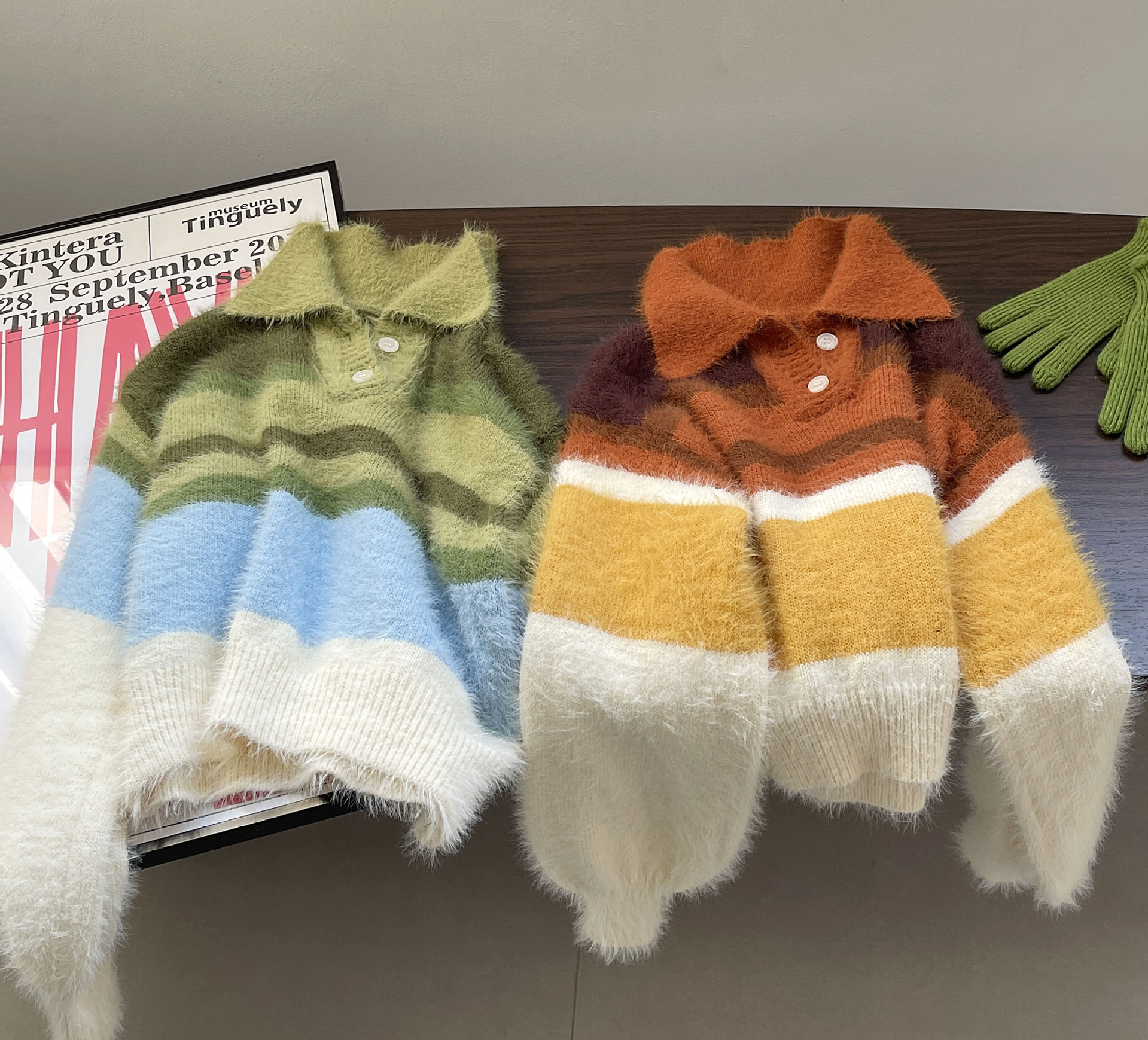 【商品名】【トップス】韓国風 折り襟 レトロ 大注目 ニットセーター