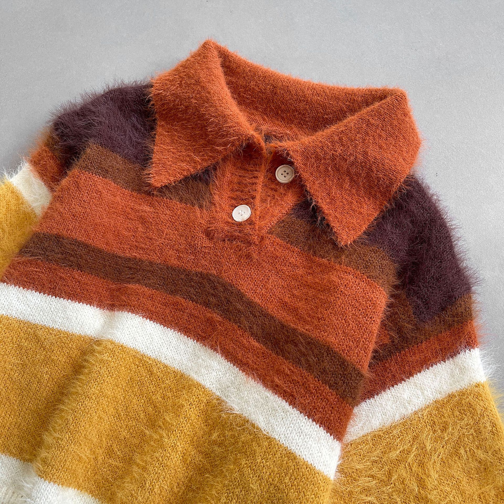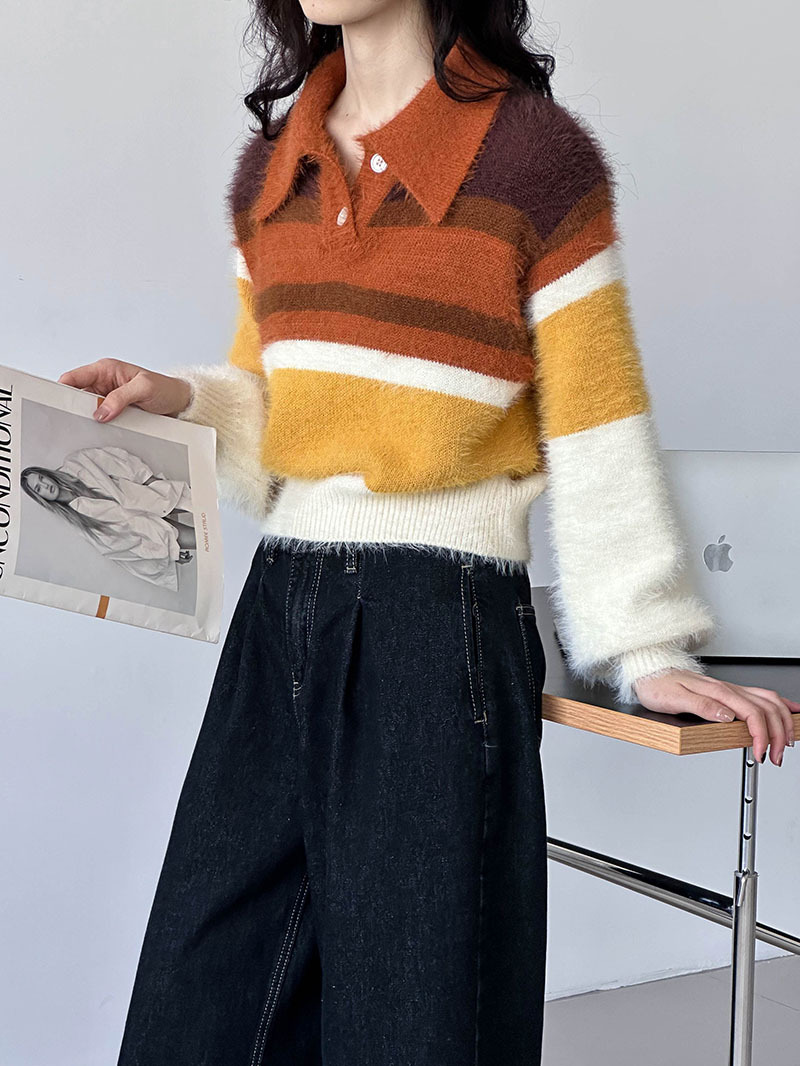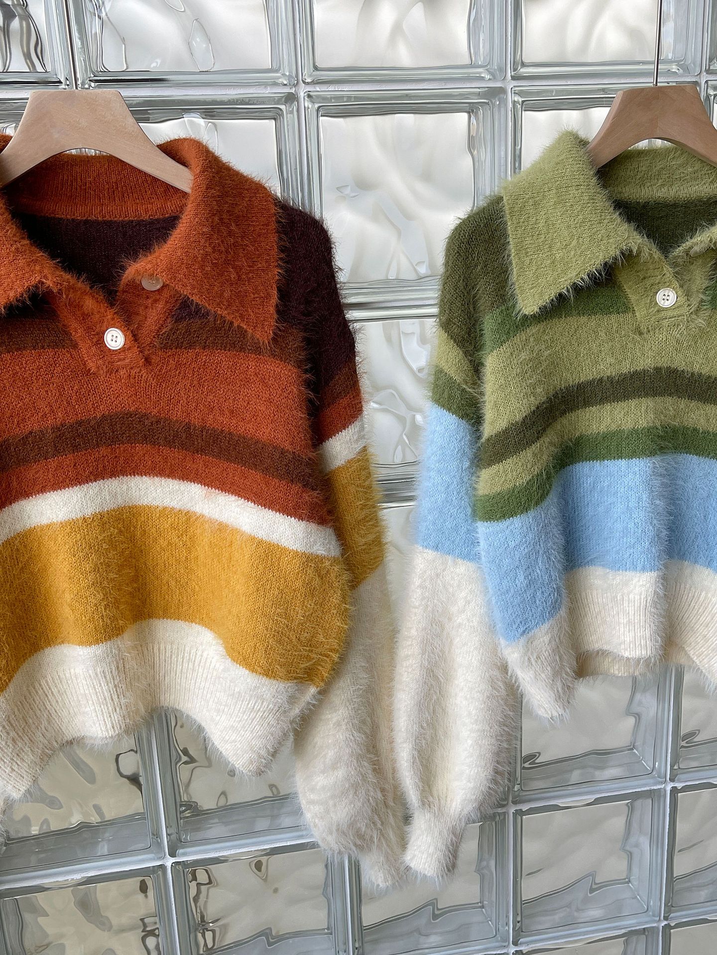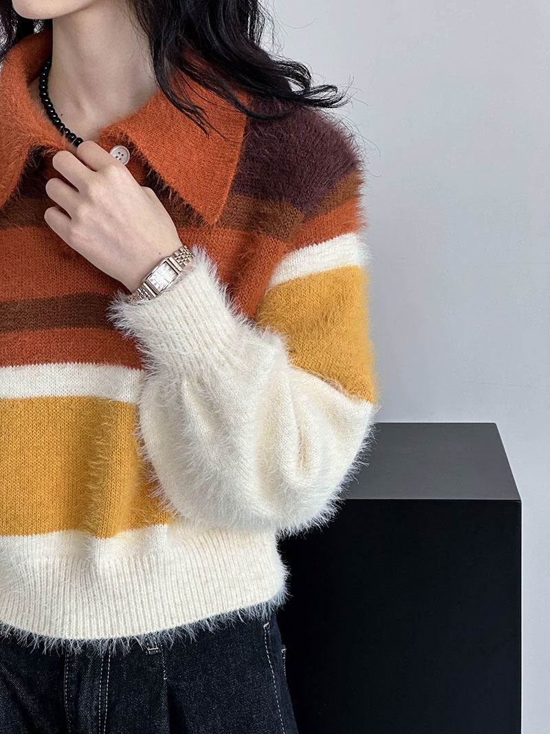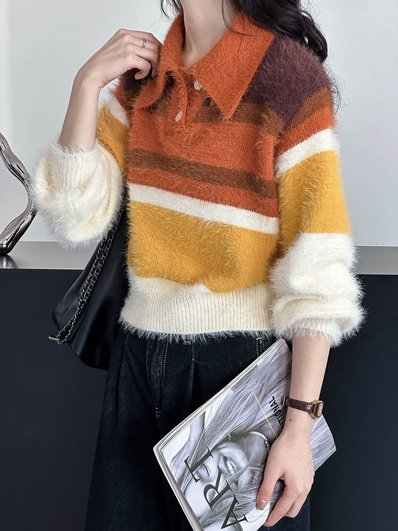 【商品名】【トップス】韓国風 折り襟 レトロ 大注目 ニットセーター