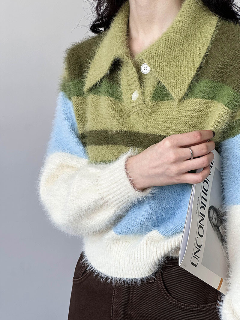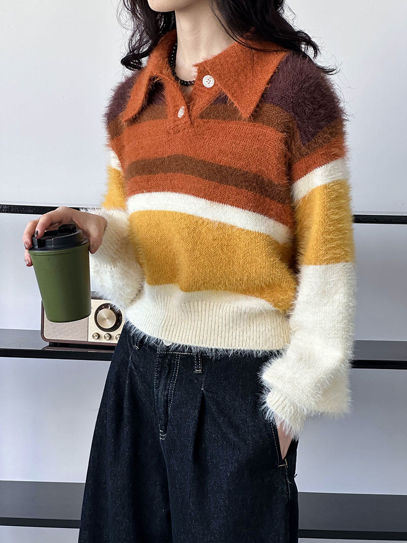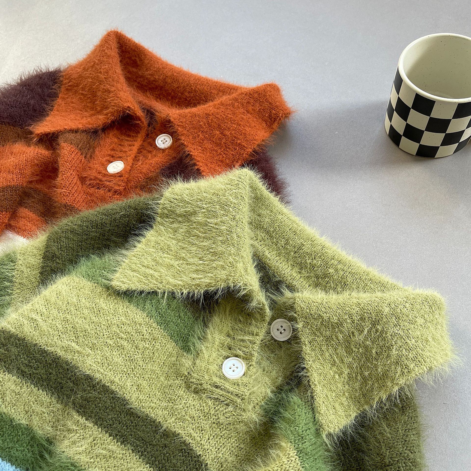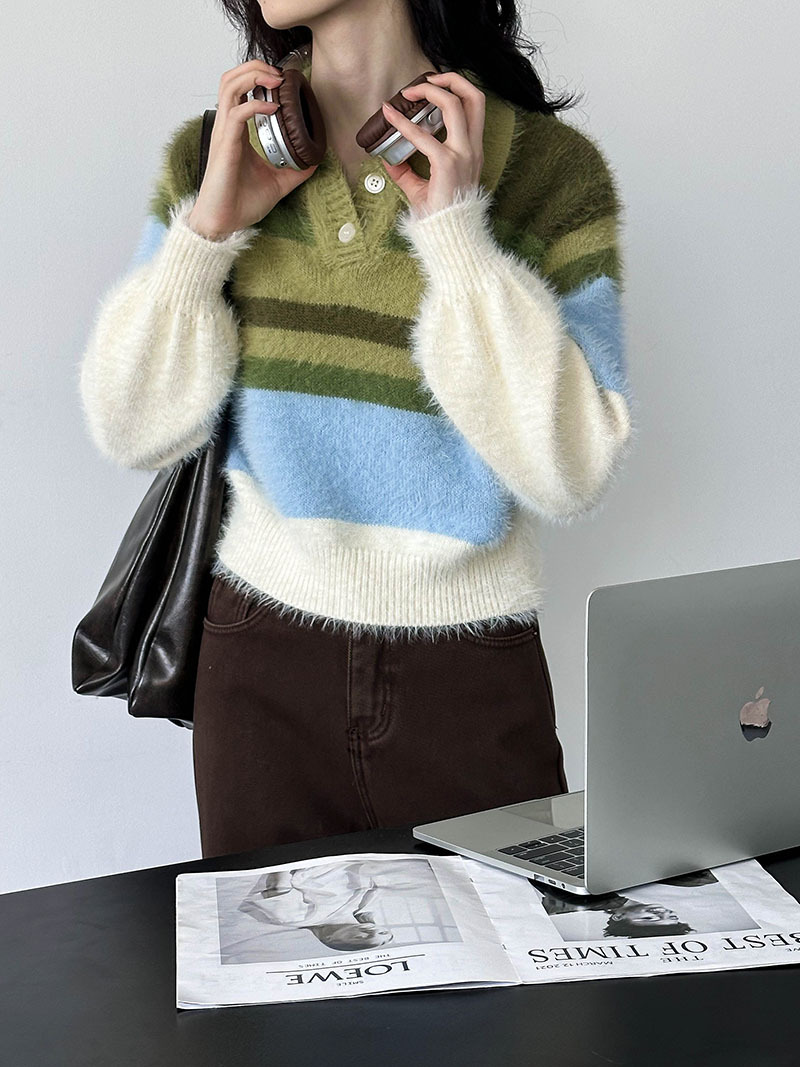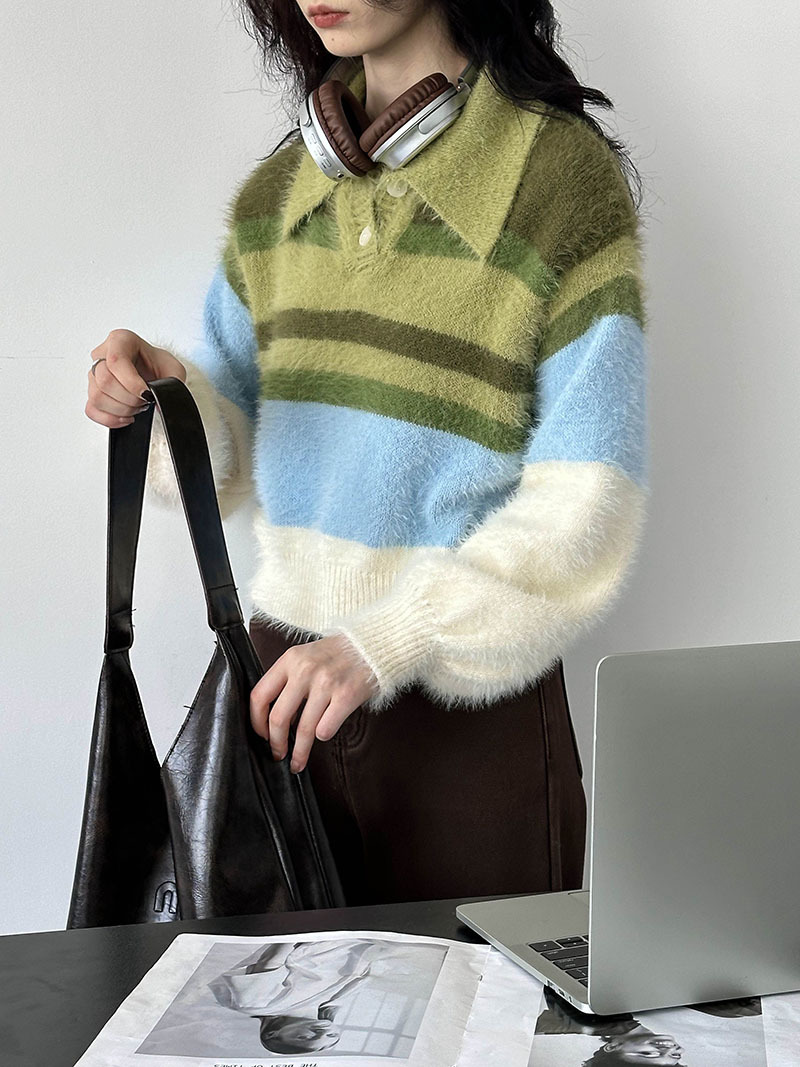 【商品名】【トップス】韓国風 折り襟 レトロ 大注目 ニットセーター