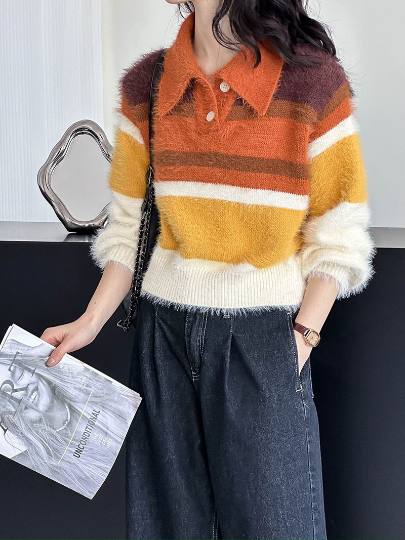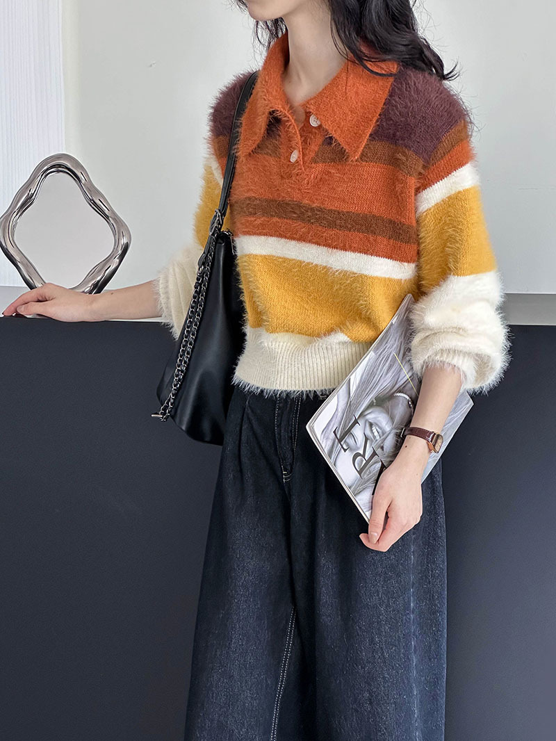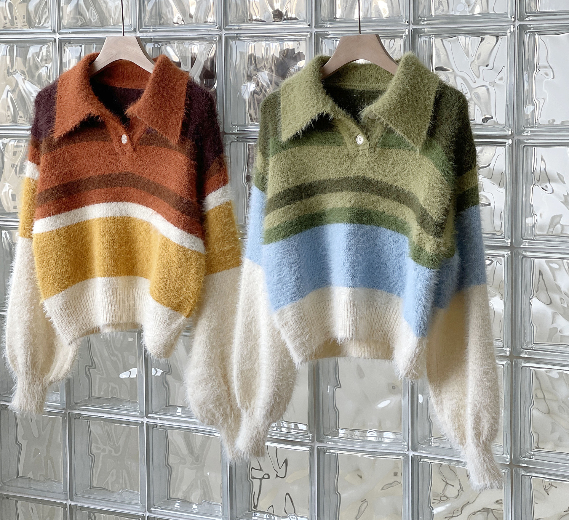 【トップス】秋冬 韓国風 折り襟 レトロ 大注目 ニットセーター【JZシリーズ】