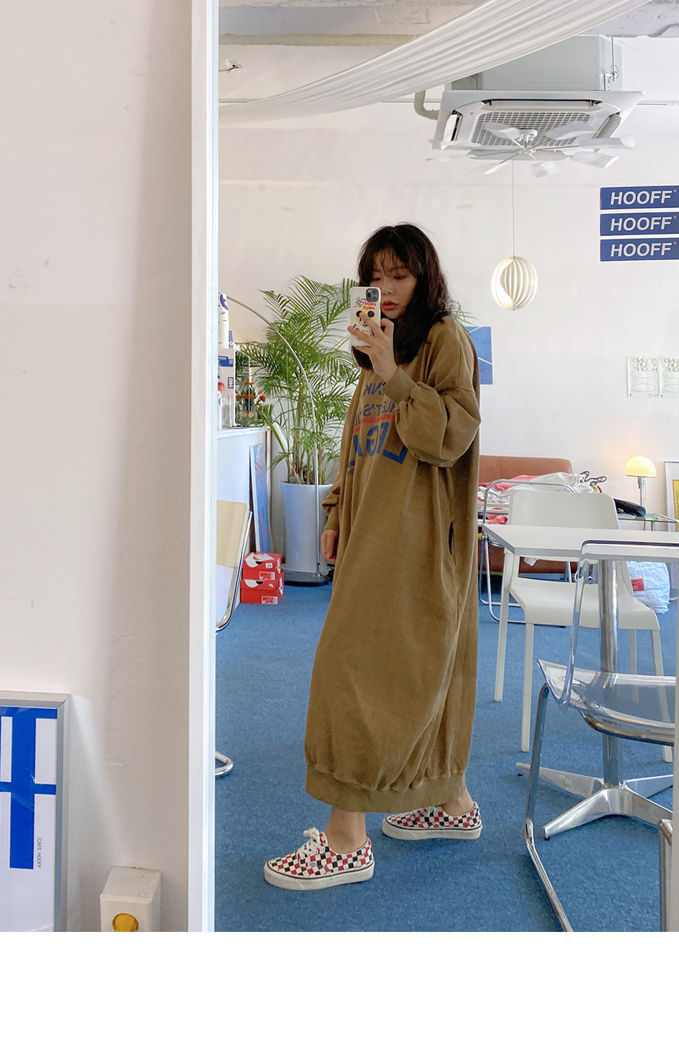 【ワンピース】春秋冬 ゆったり 大きいサイズ ラウンドネック 長袖ワンピース