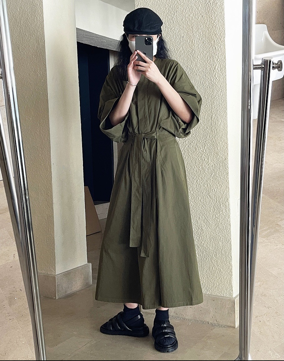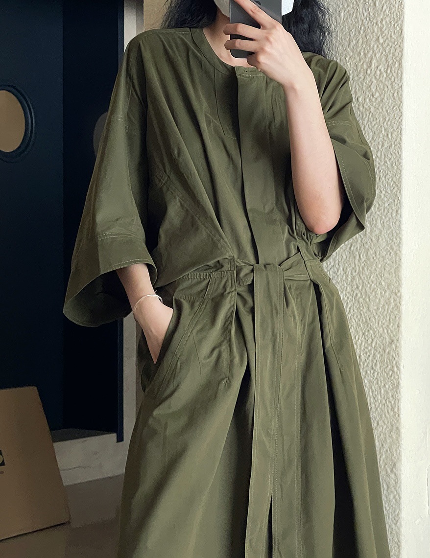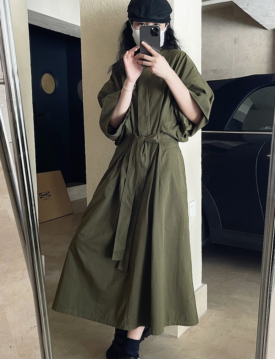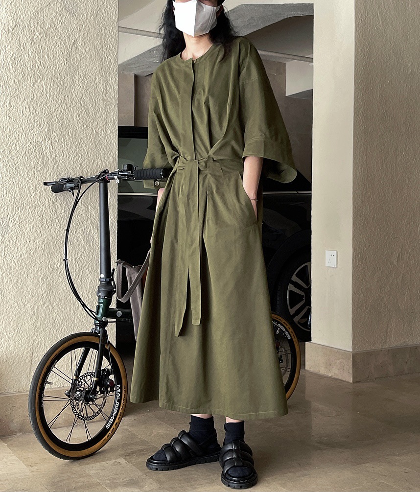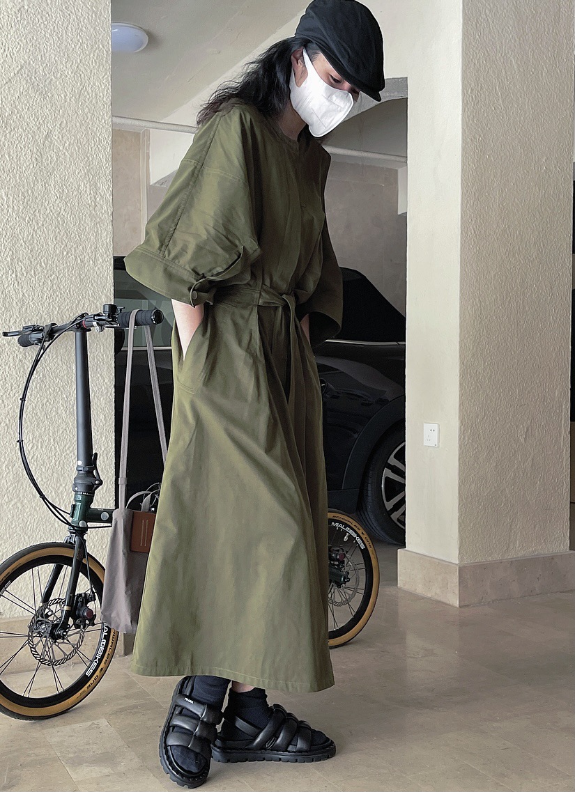 【ワンピース】春秋 高品質 レトロ ゆったり 着痩せ 半袖ワンピース
