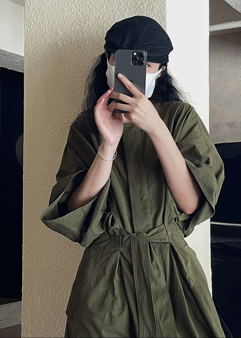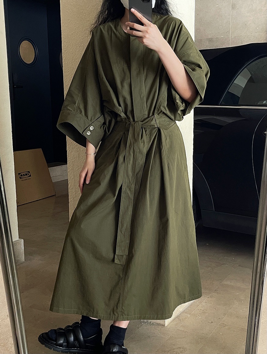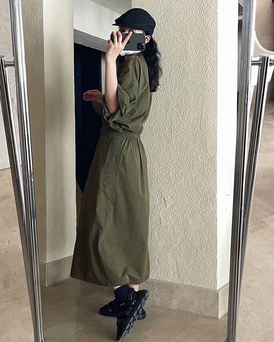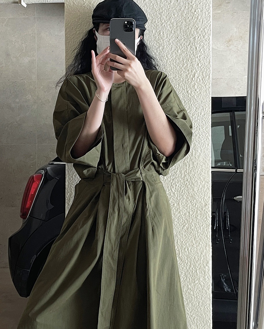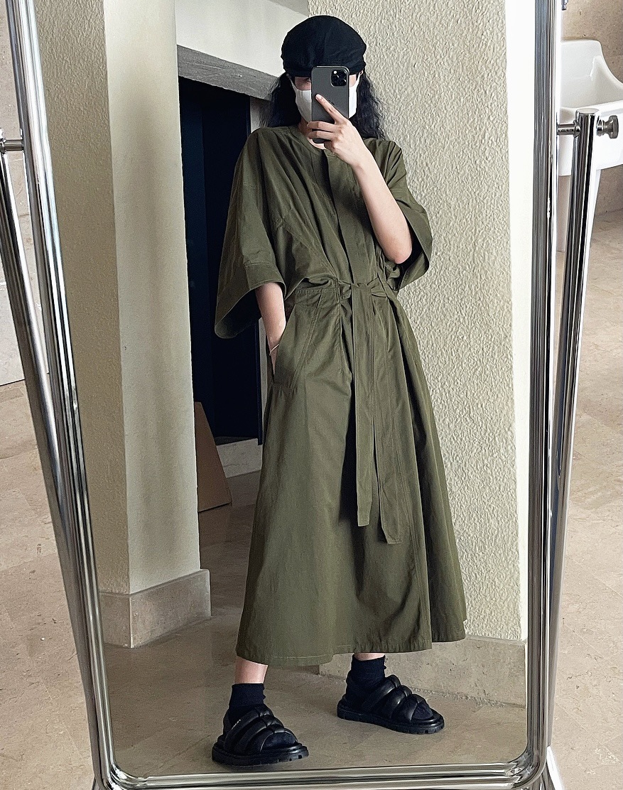 【ワンピース】春秋 高品質 レトロ ゆったり 着痩せ 半袖ワンピース