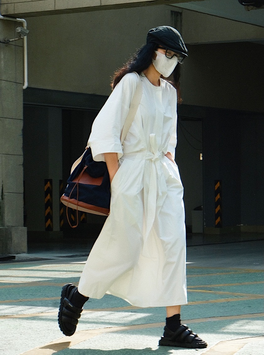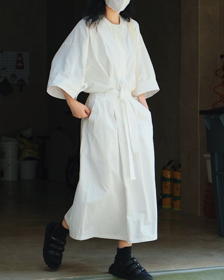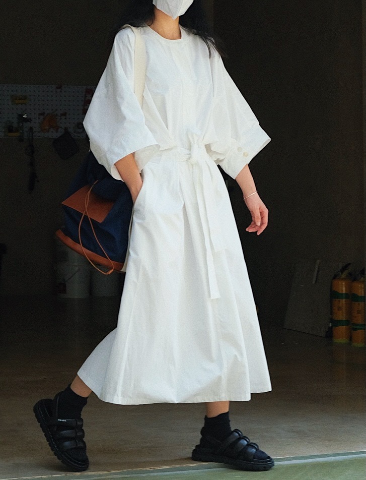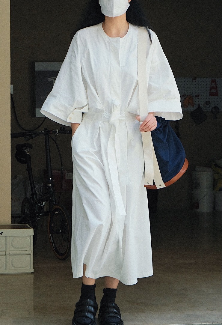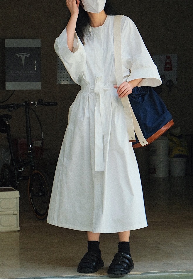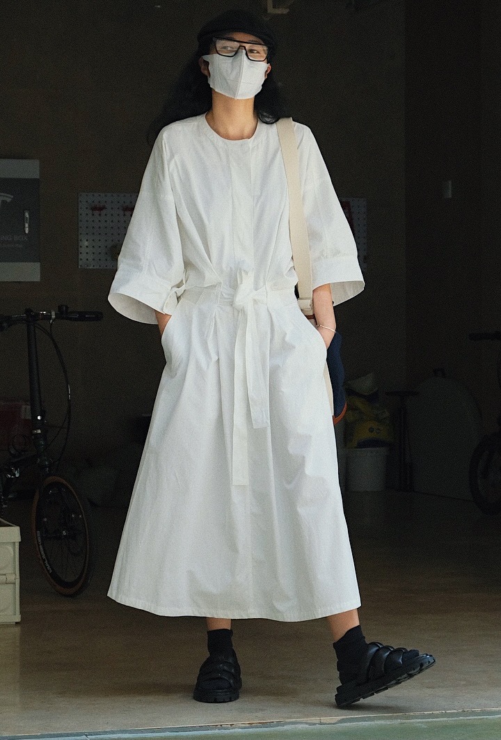 【ワンピース】春秋 高品質 レトロ ゆったり 着痩せ 半袖ワンピース