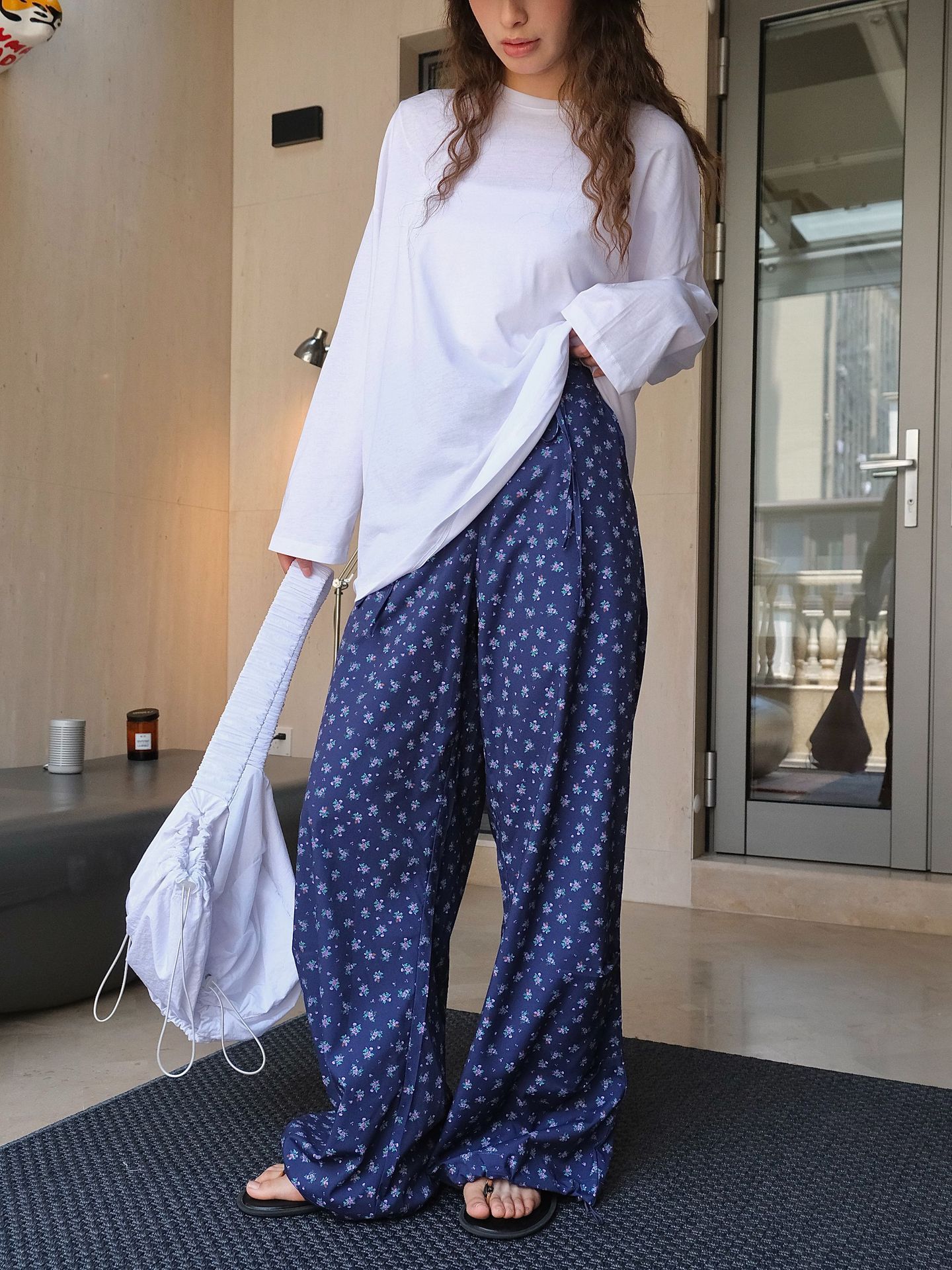 【ボトムス】おしゃれ 花柄 春夏秋 ゆったり 着痩せ カジュアル パンツ【SNシリーズ】