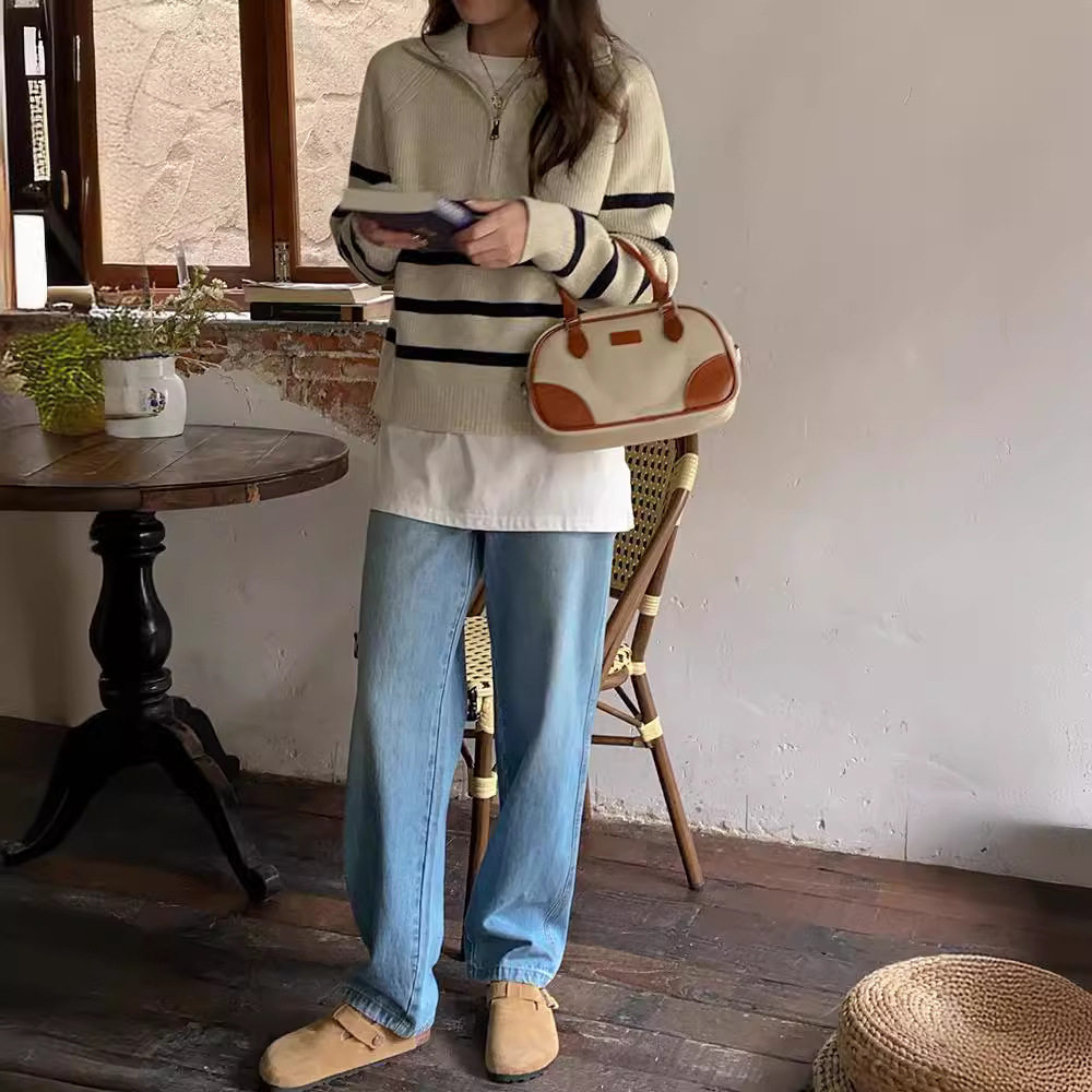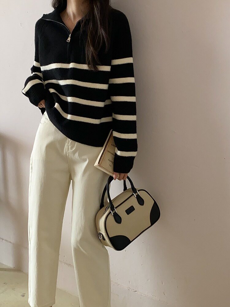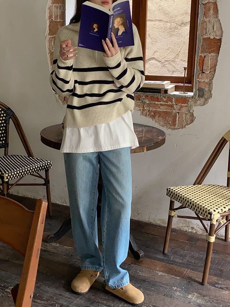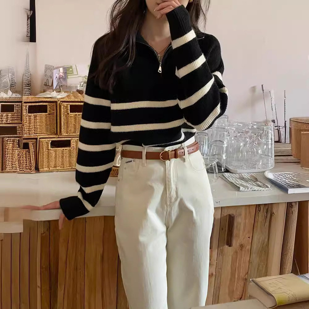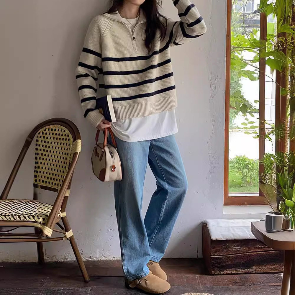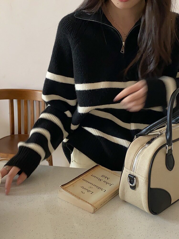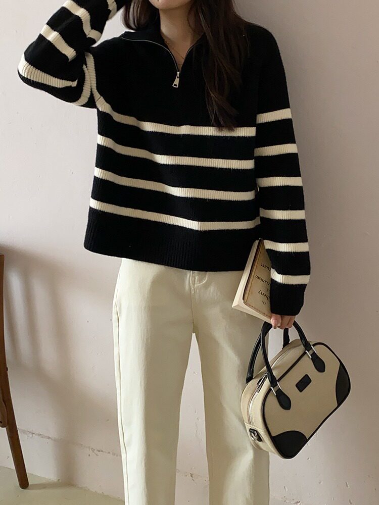 【トップス】秋冬 しま模様 ゆったり 合わせやすい ニットセーター