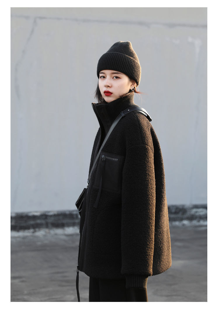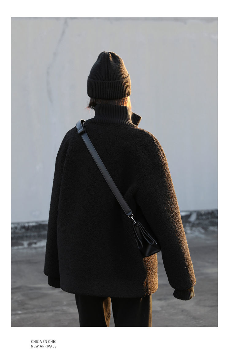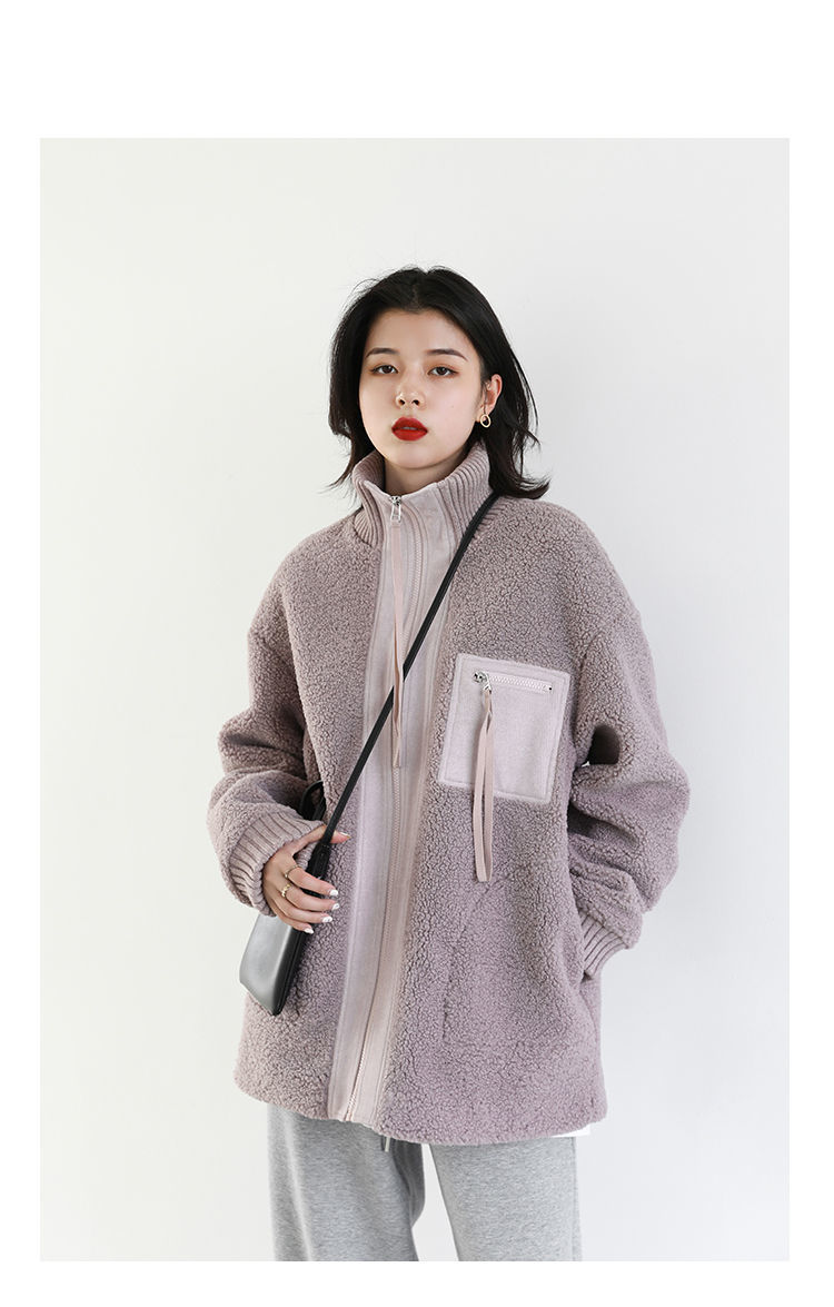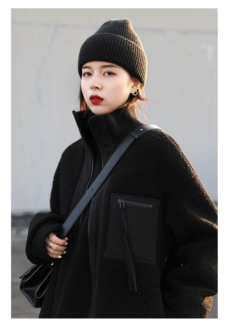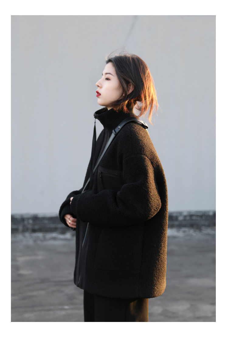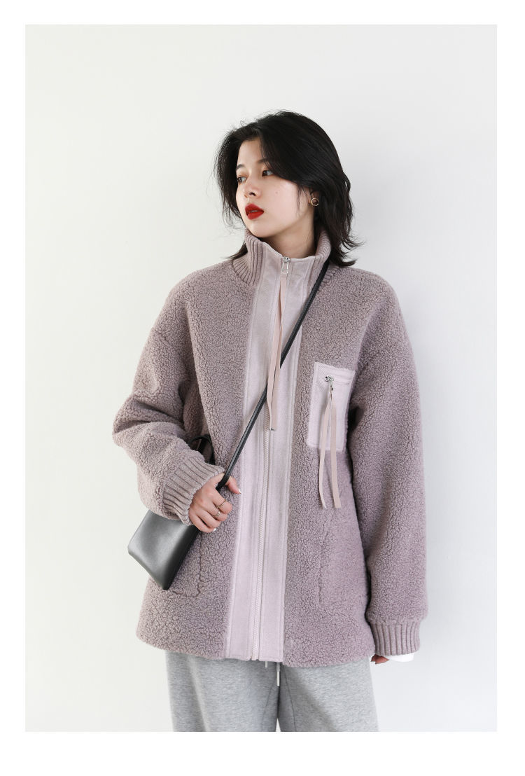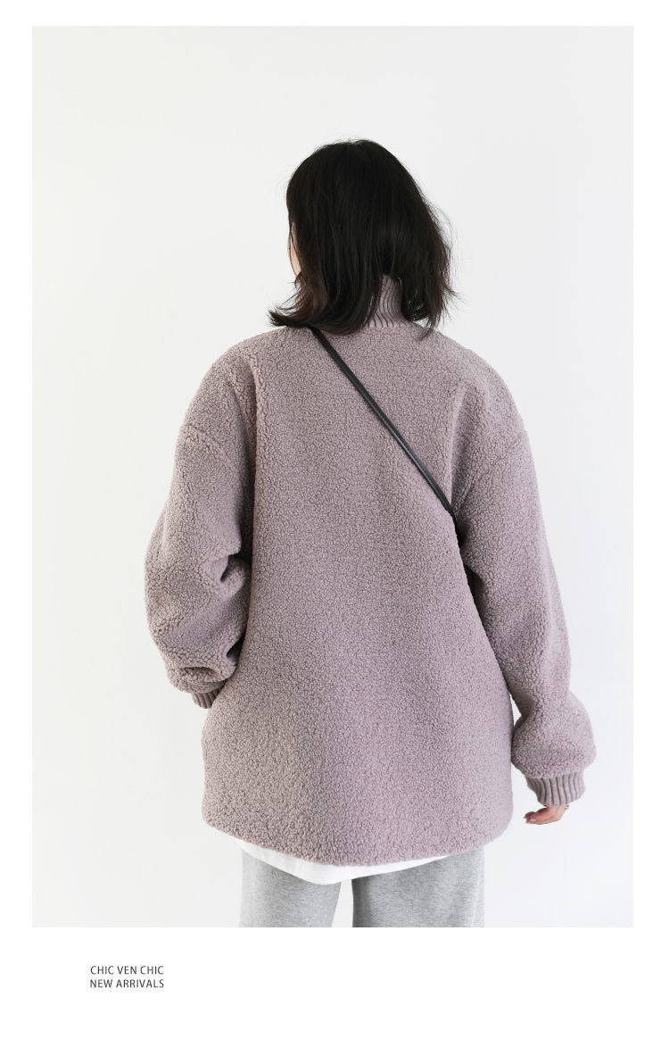 【アウター】秋冬 ゆったり スタンドカラー ラムウール あったか ジャケット