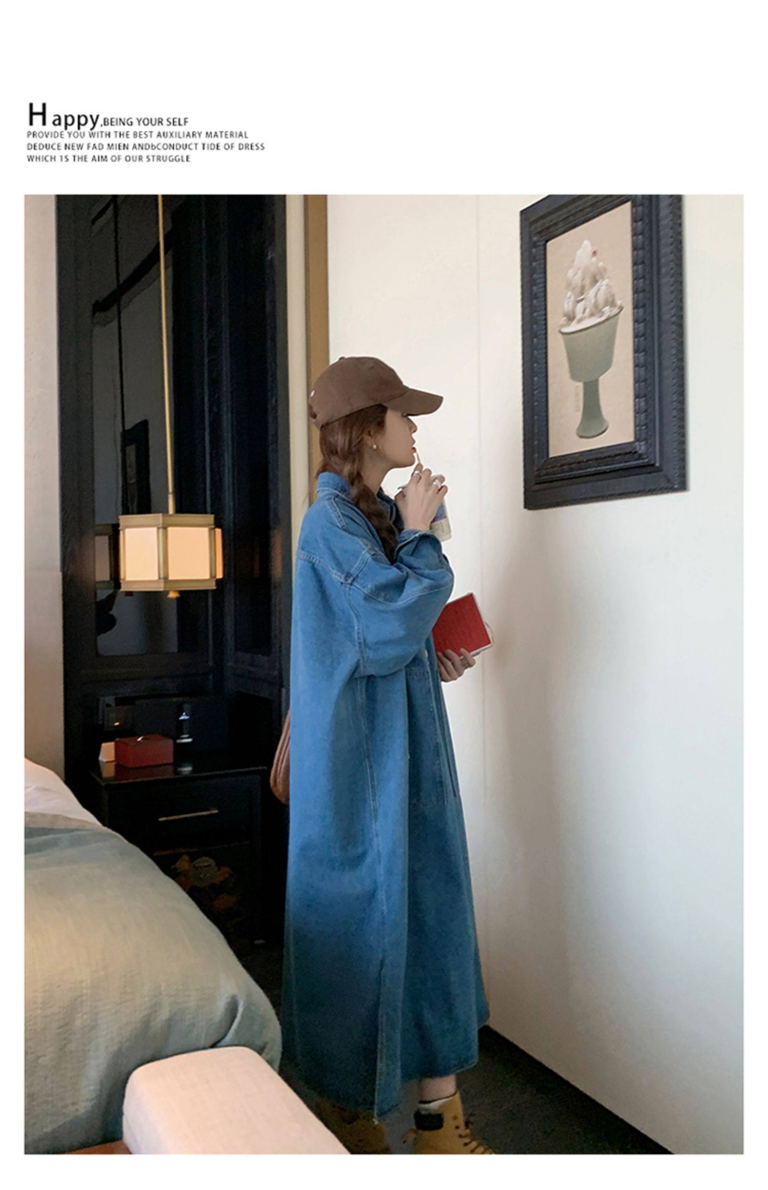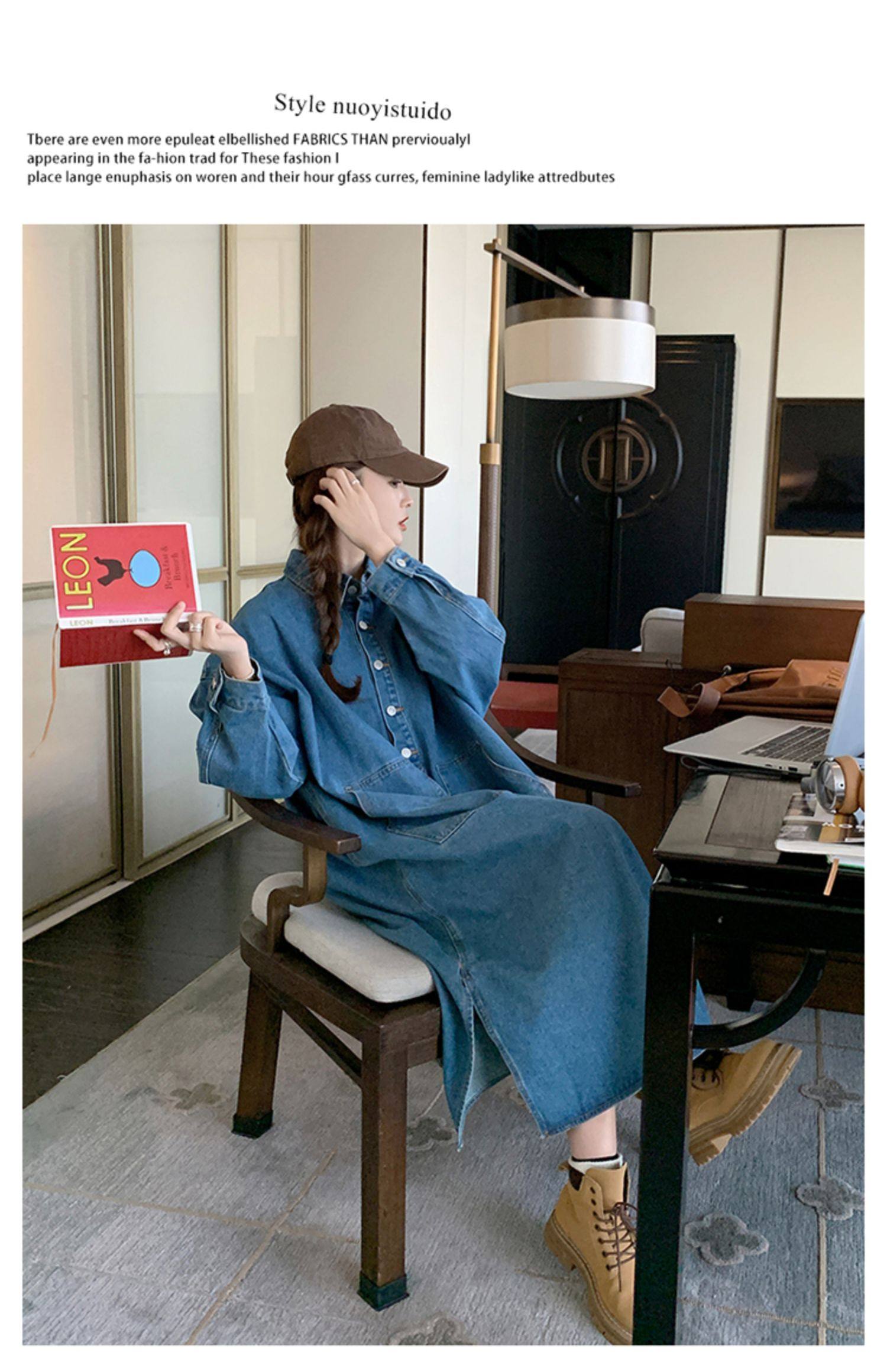 【商品名】【ワンピース】ミドル丈 お腹カバー ゆったり 着痩せ 大きいサイズ デニム 長袖ワンピース