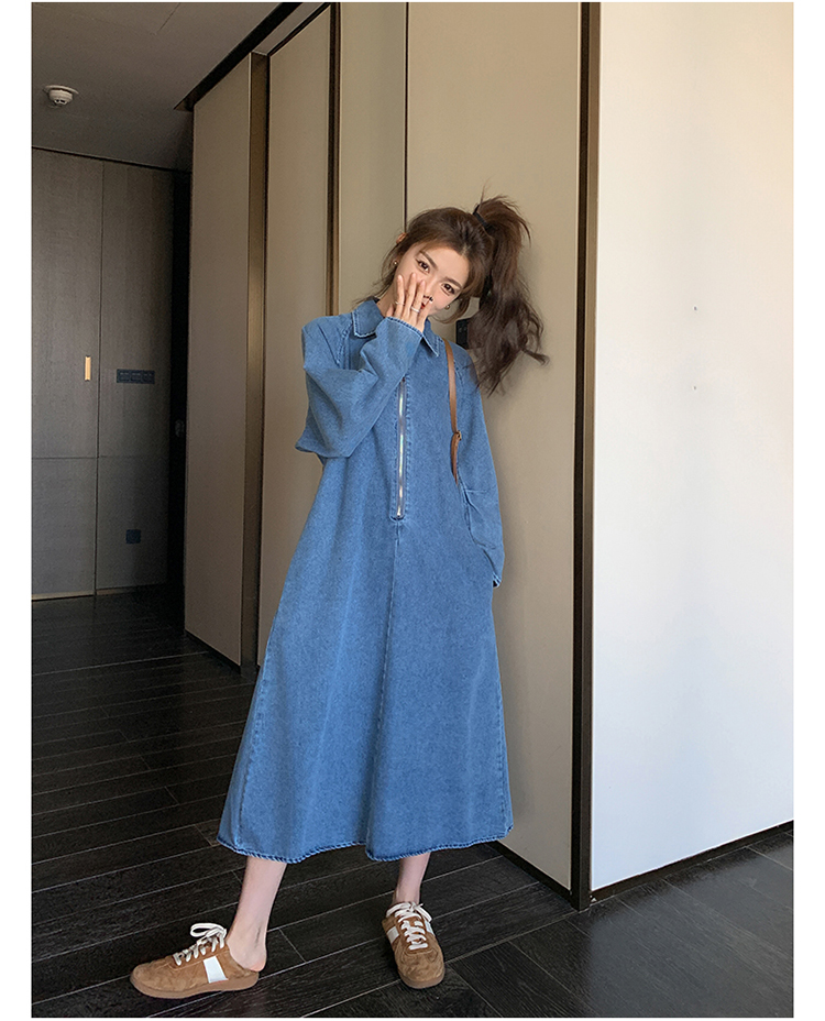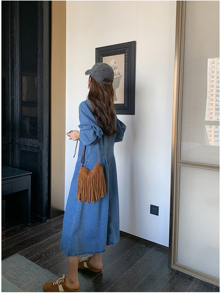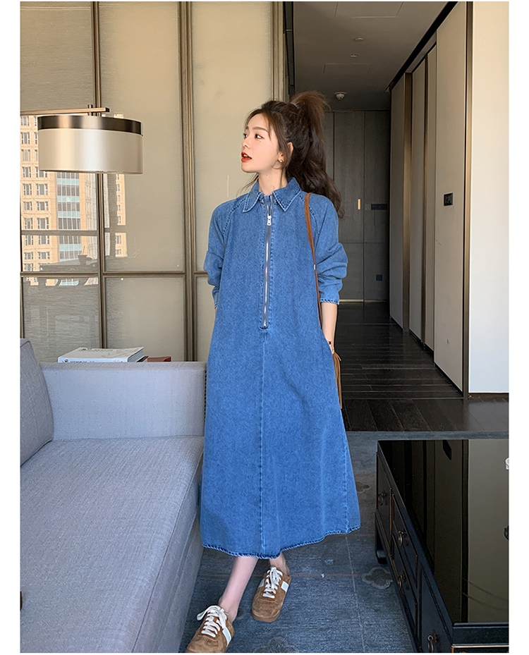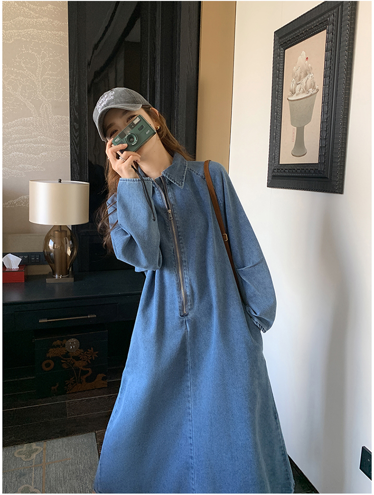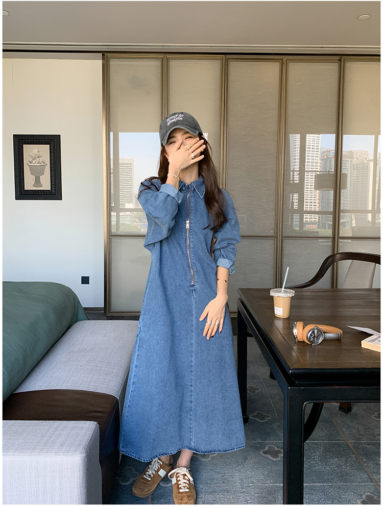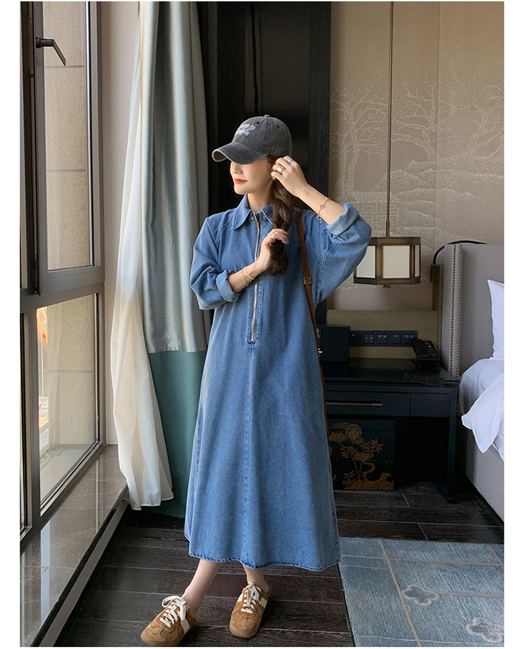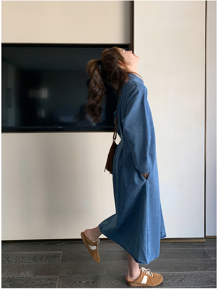 【商品名】【ワンピース】人気トレンド 着痩せ お腹カバー デニム 長袖ワンピース