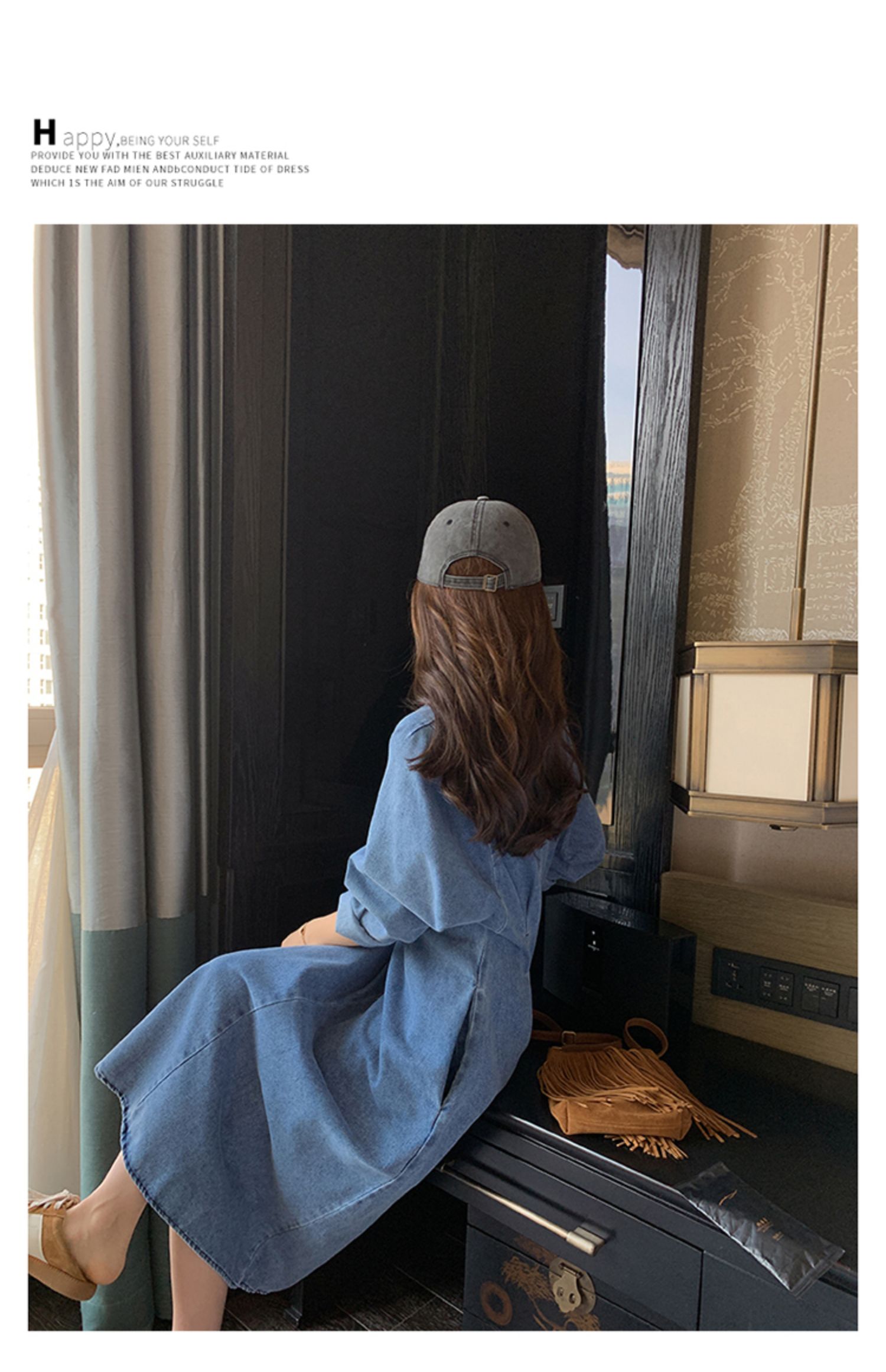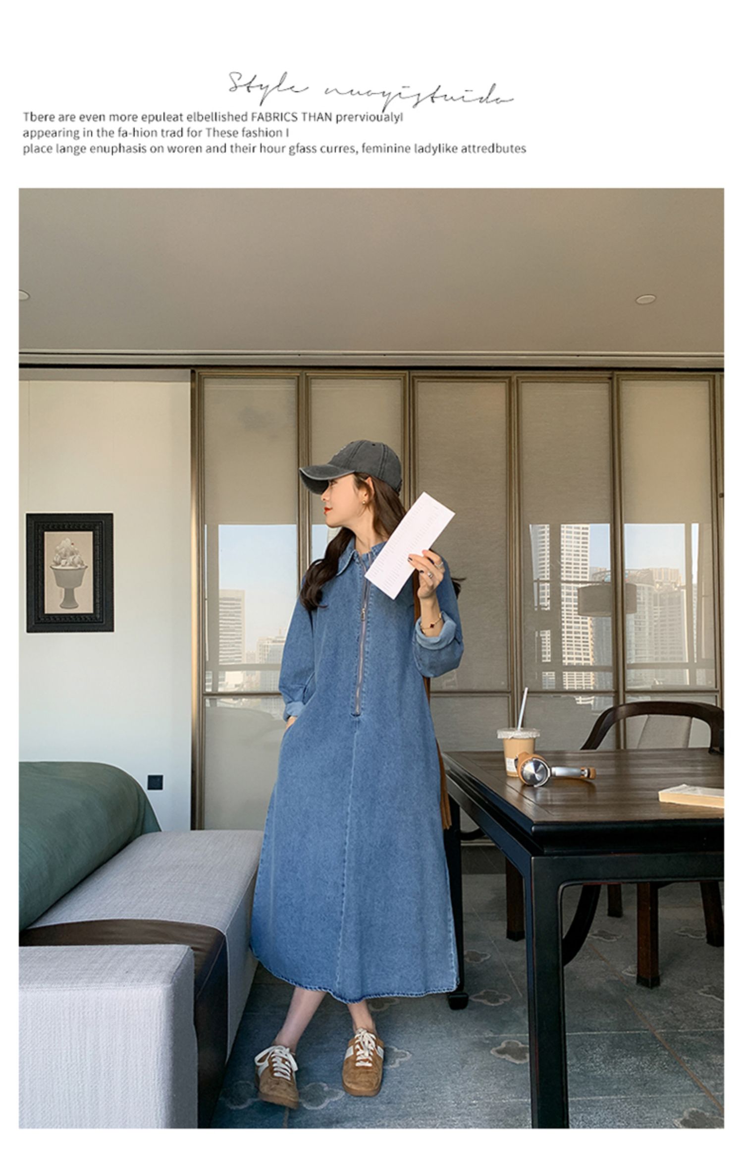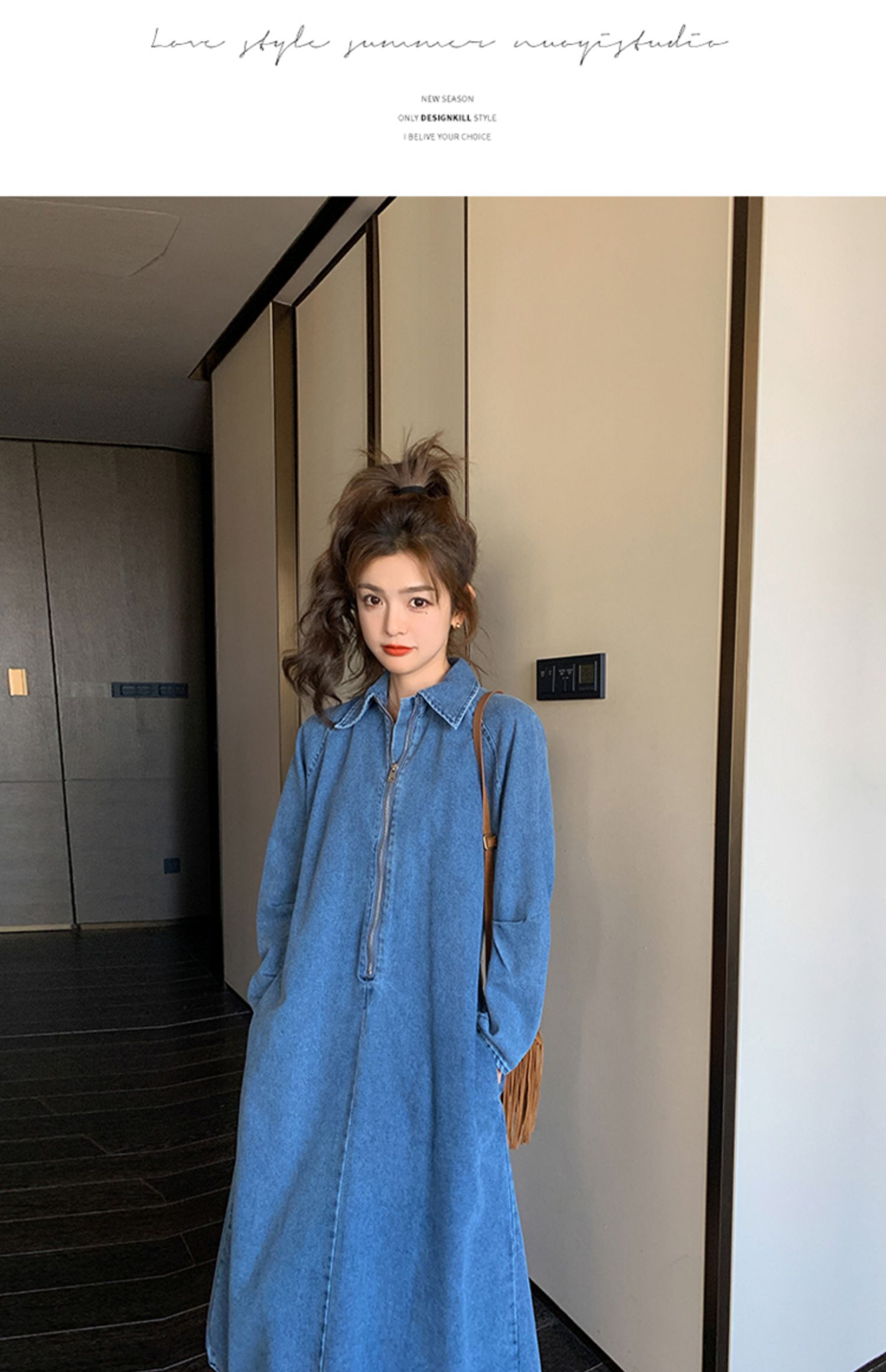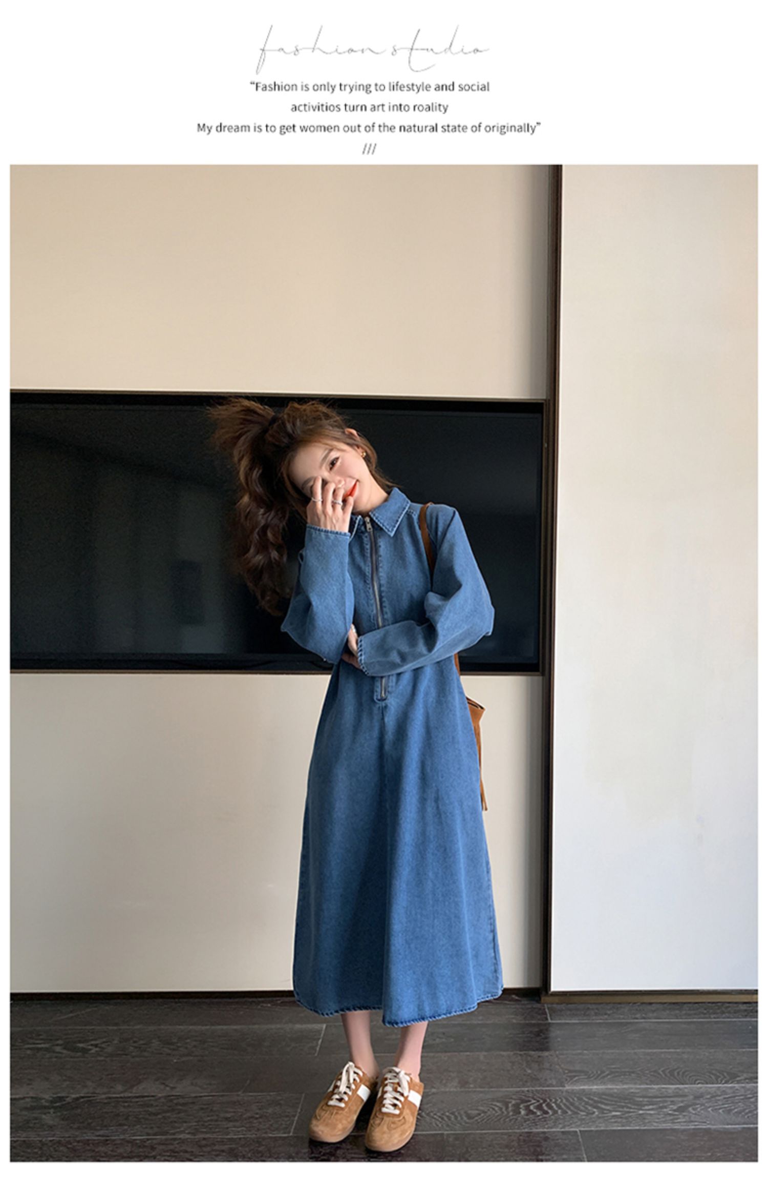 【商品名】【ワンピース】人気トレンド 着痩せ お腹カバー デニム 長袖ワンピース