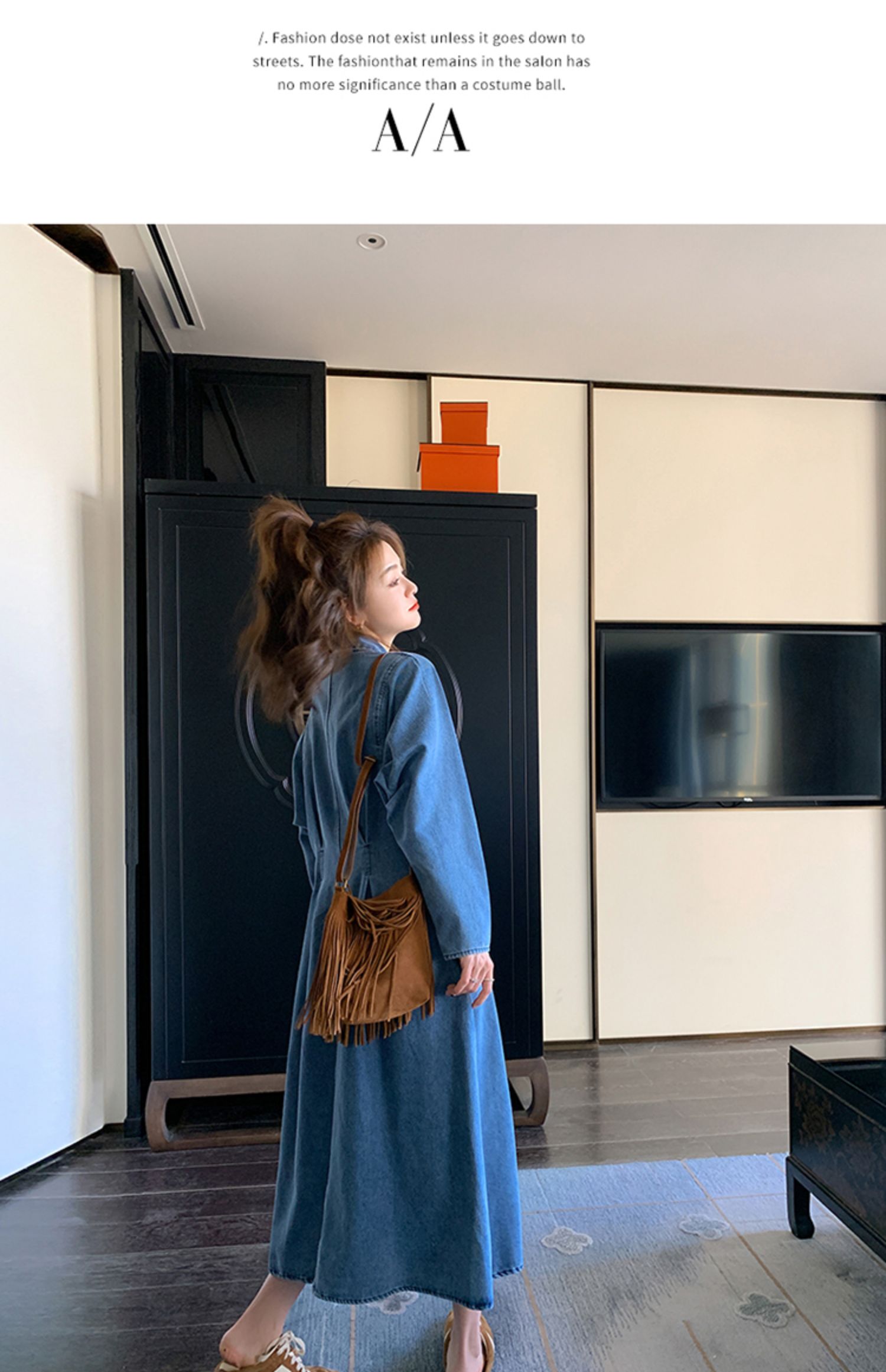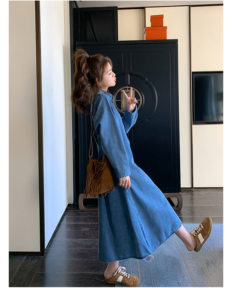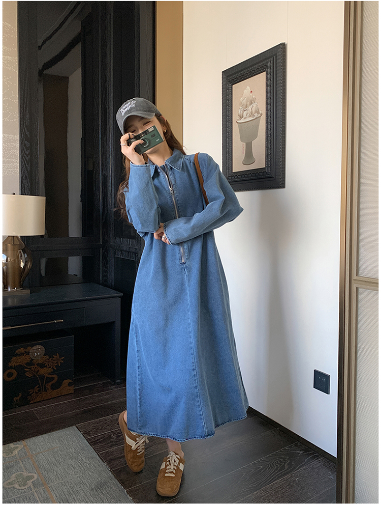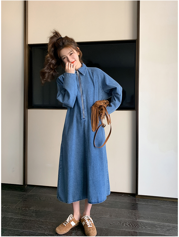 【ワンピース】春秋冬 人気トレンド 着痩せ お腹カバー デニム 長袖ワンピース