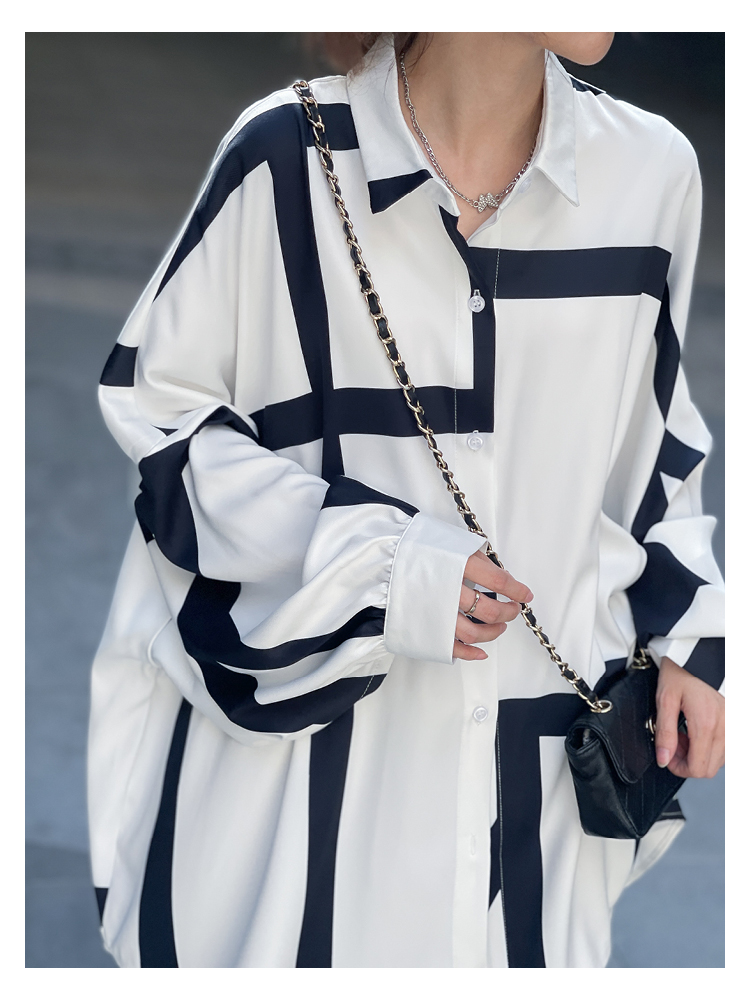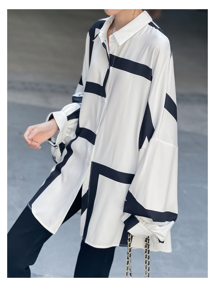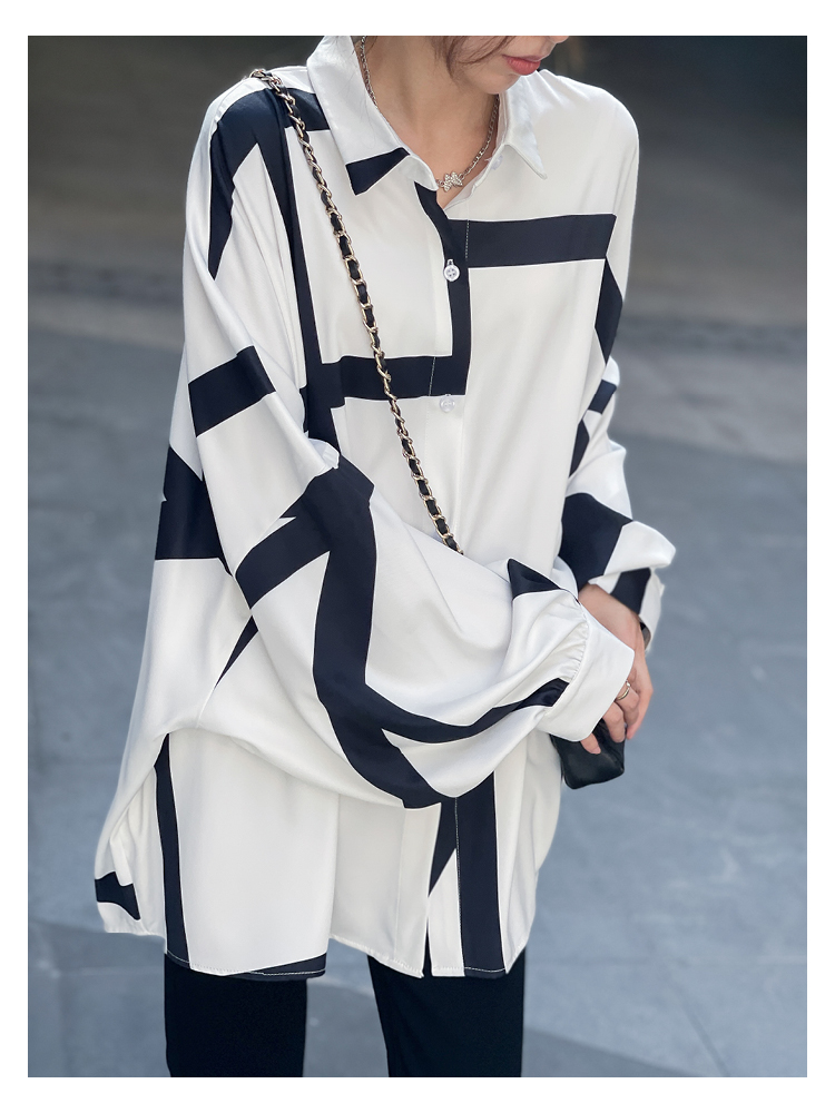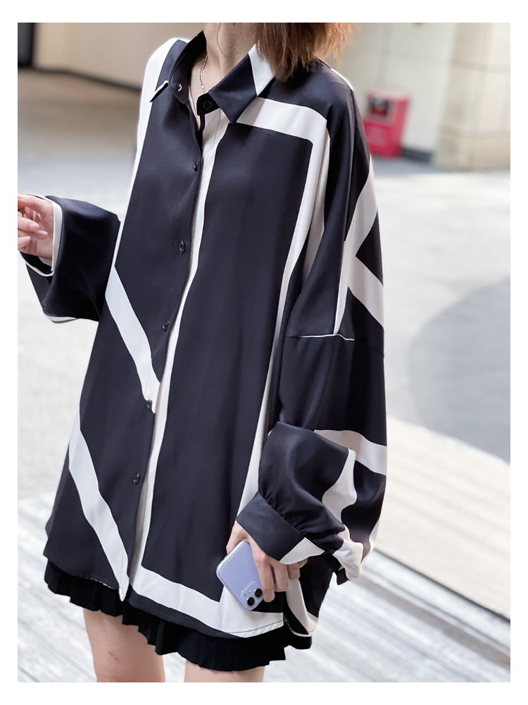 【トップス】春夏秋 ストリート系 不規則なストライプ柄 ドレープ 長袖シャツ