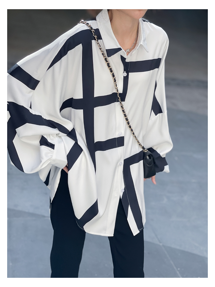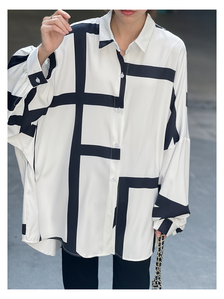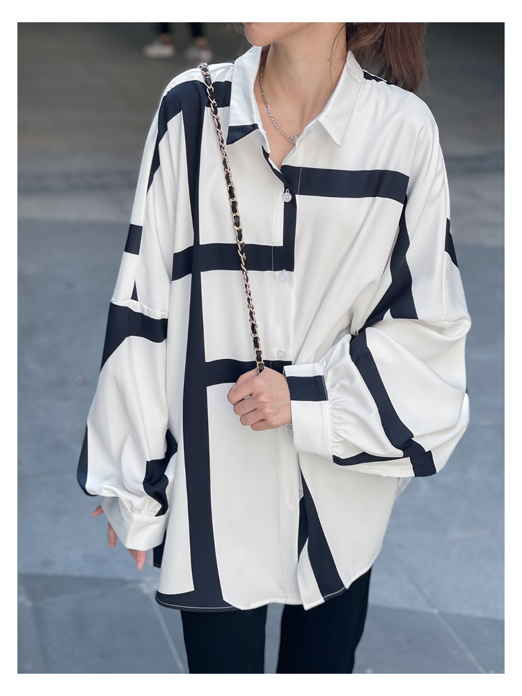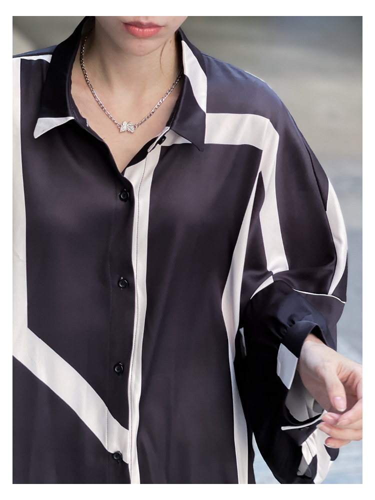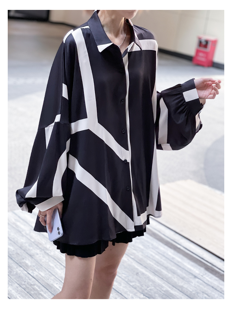 【トップス】春夏秋 ストリート系 不規則なストライプ柄 ドレープ 長袖シャツ