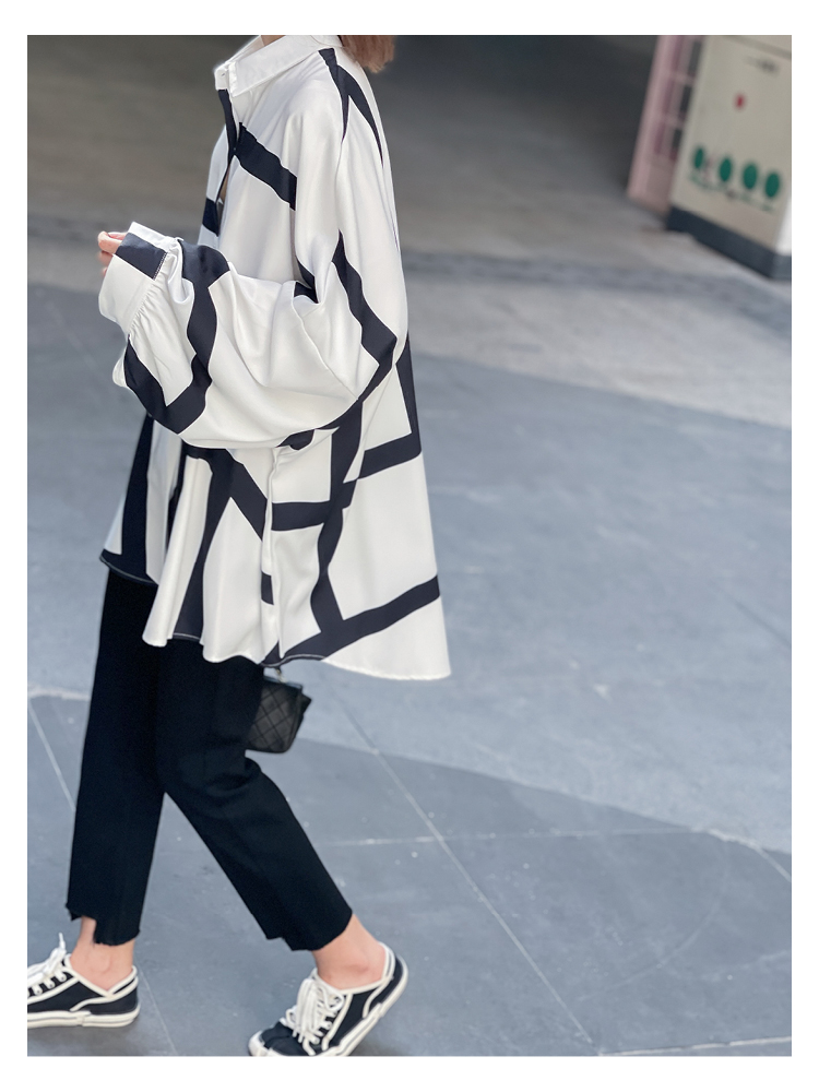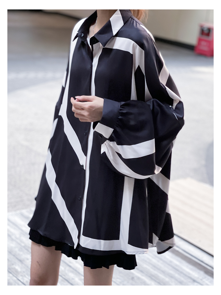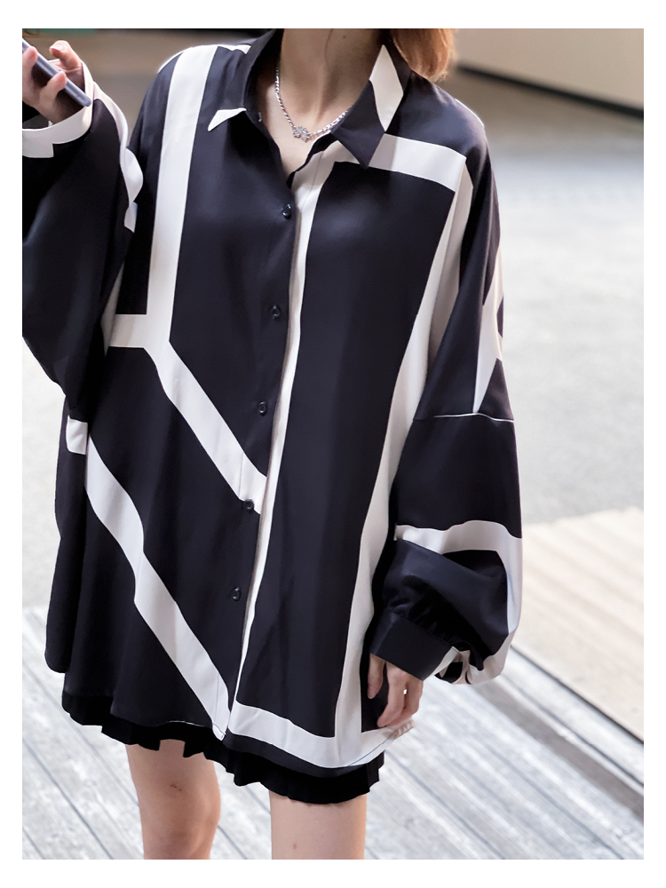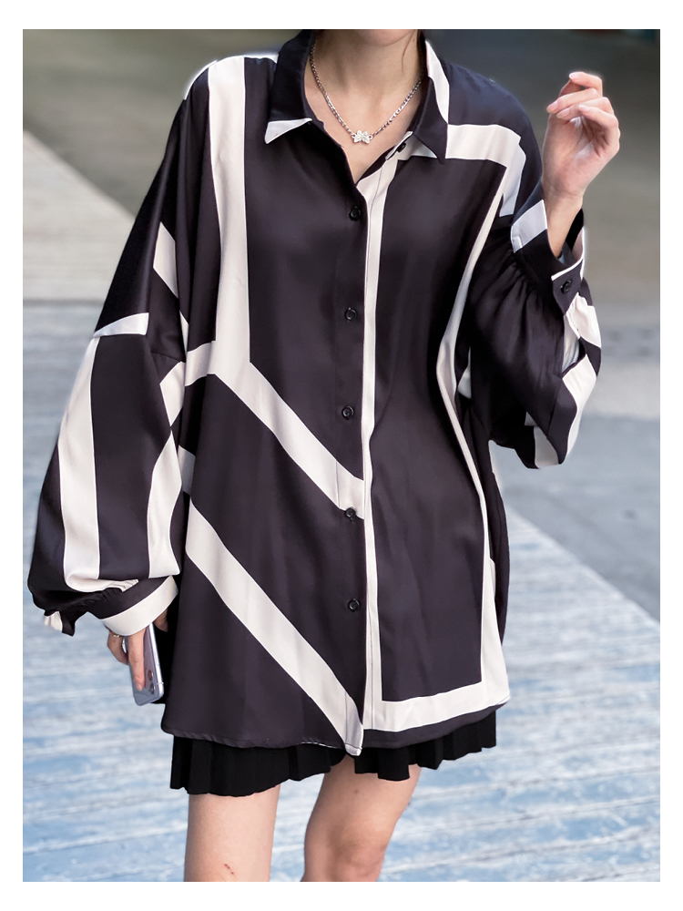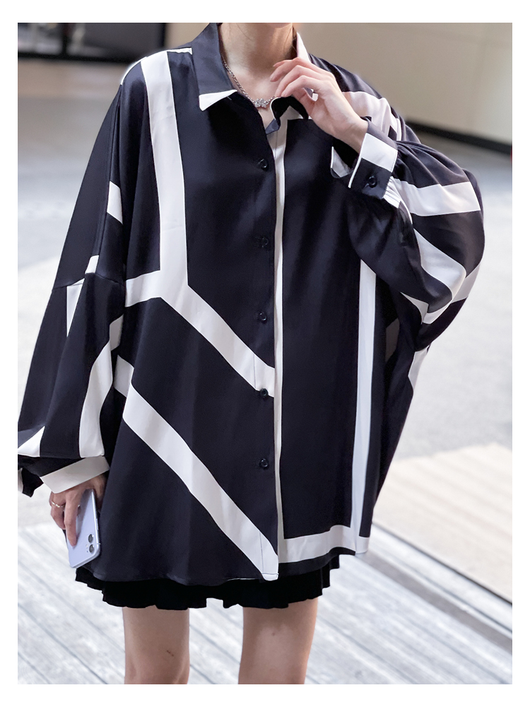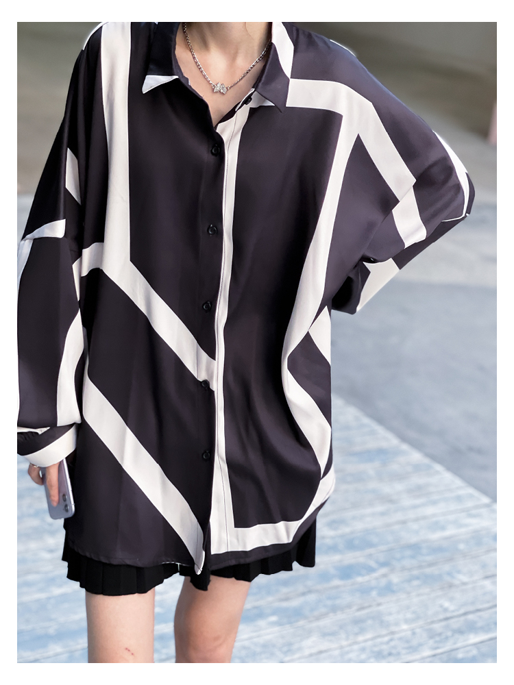【商品名】【トップス】ストリート系 不規則なストライプ柄 ドレープ 長袖シャツ
