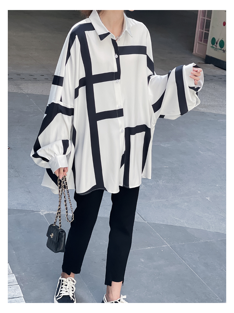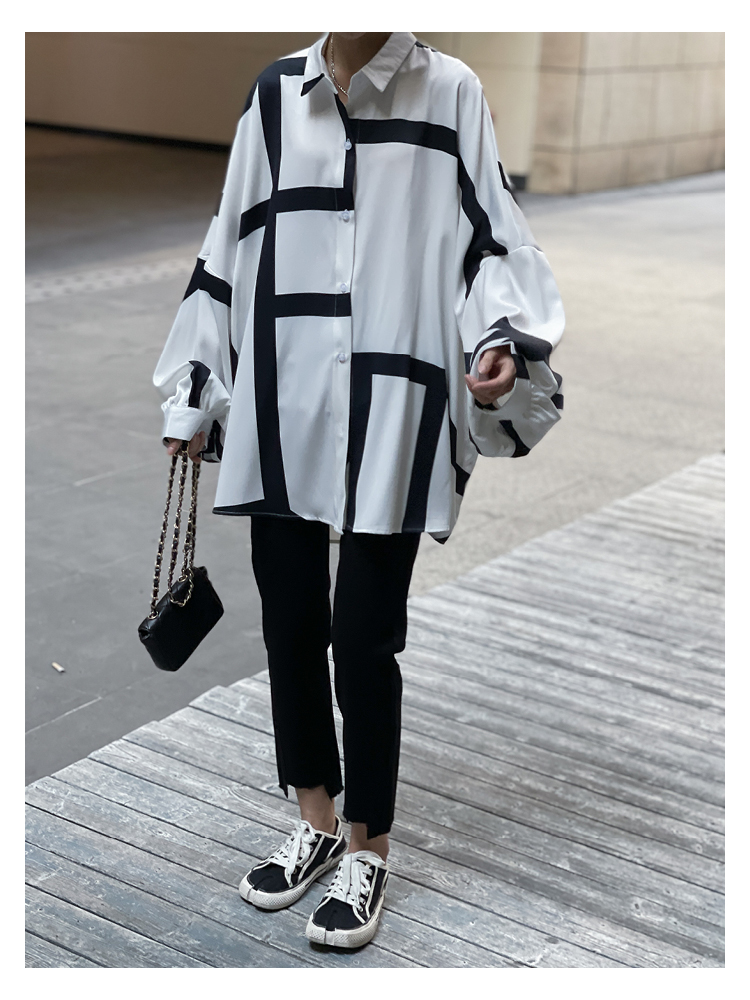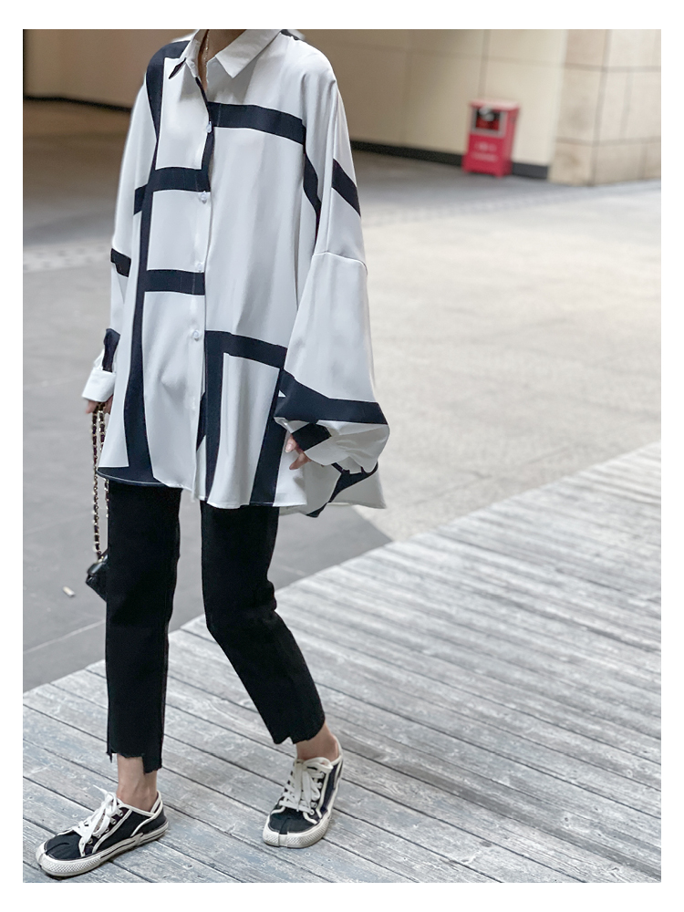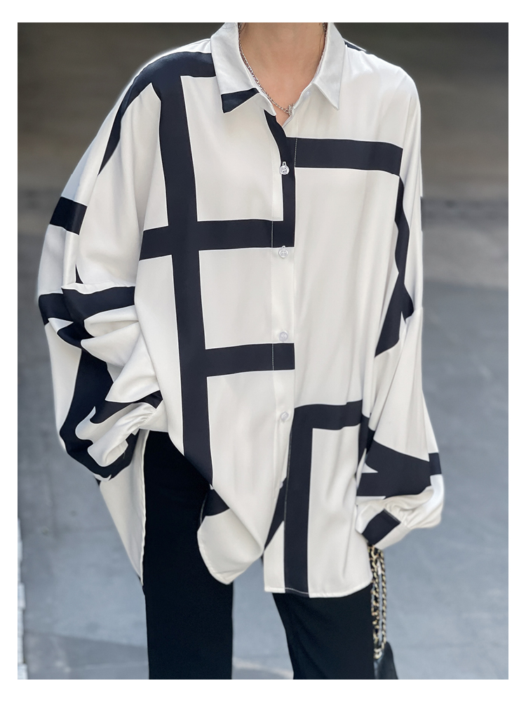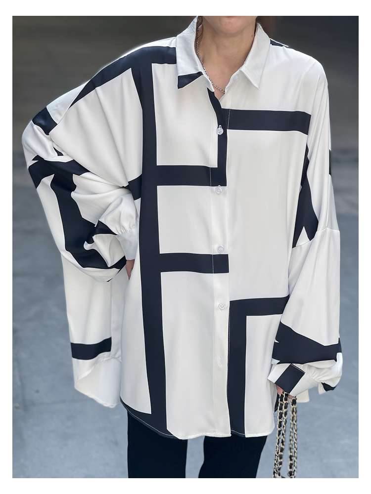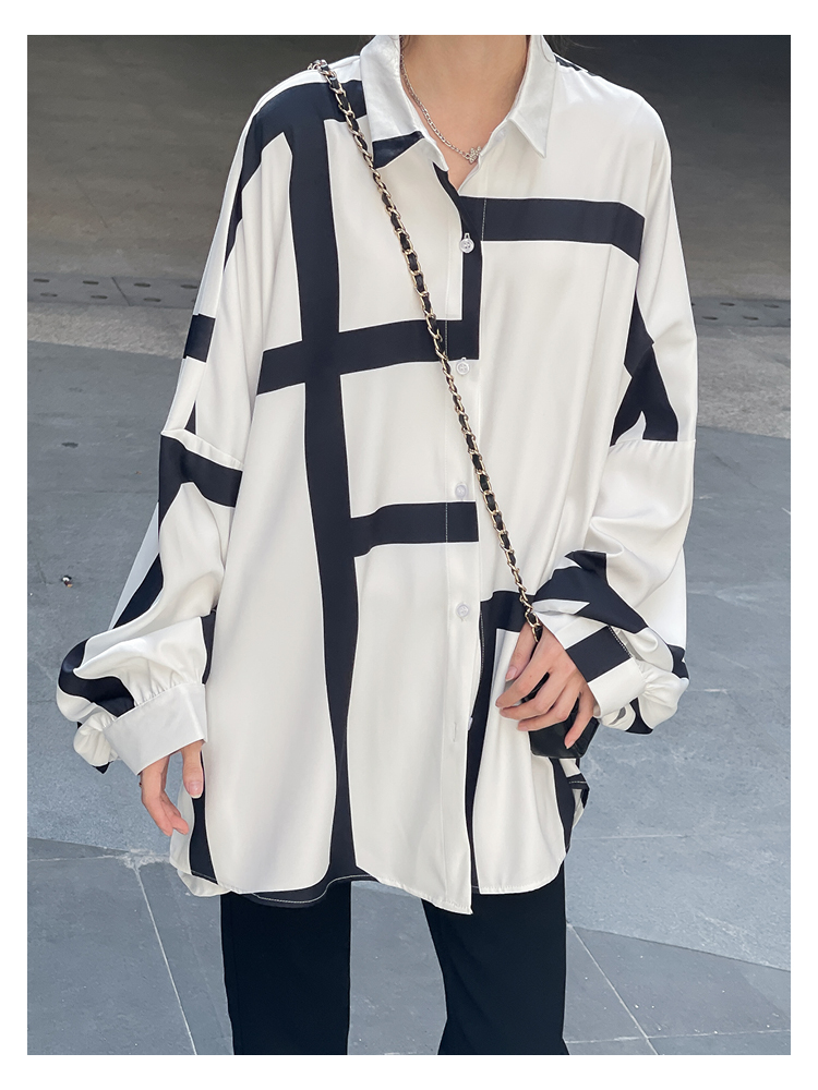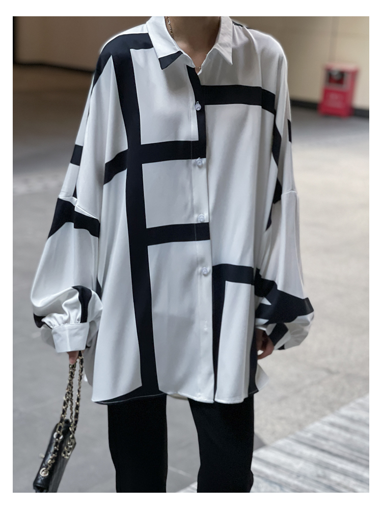 【商品名】【トップス】ストリート系 不規則なストライプ柄 ドレープ 長袖シャツ