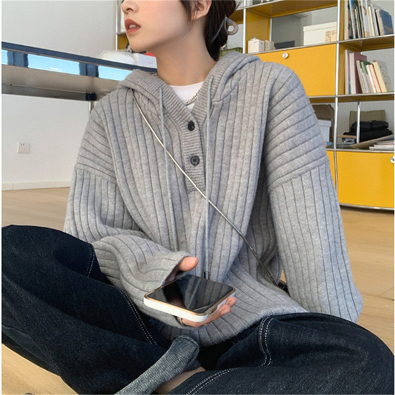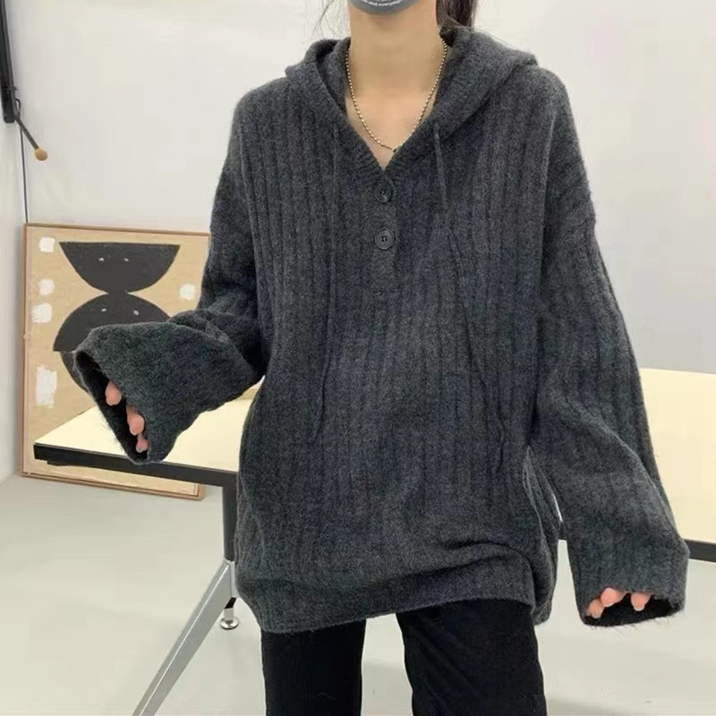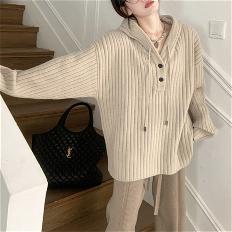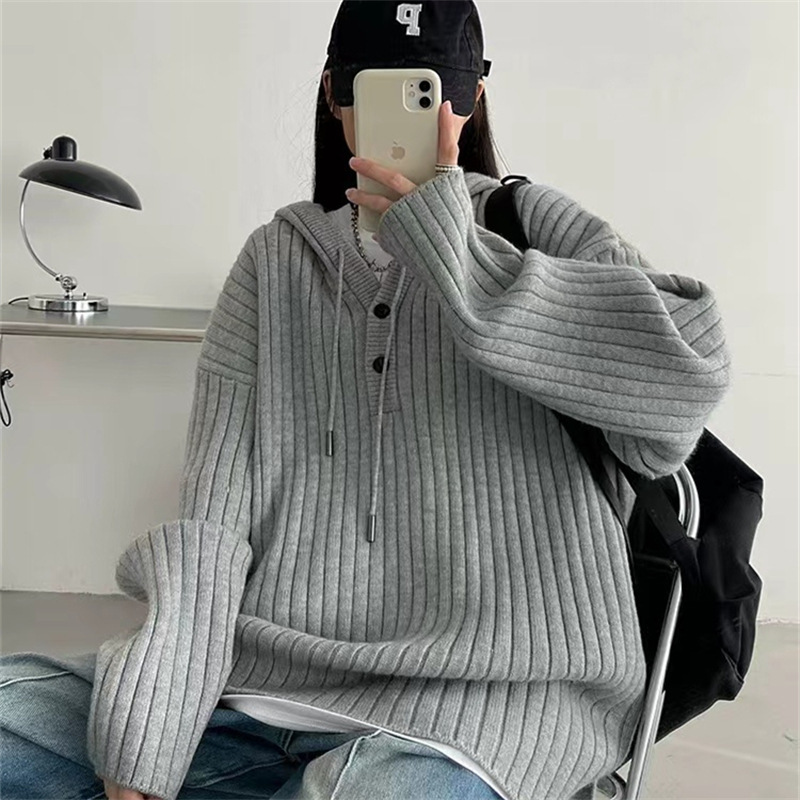 【商品名】【トップス】Oversize ゆったり カジュアル フード付き ニットセーター