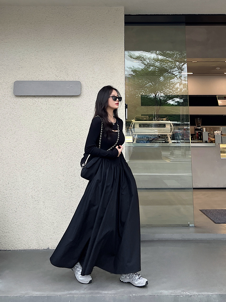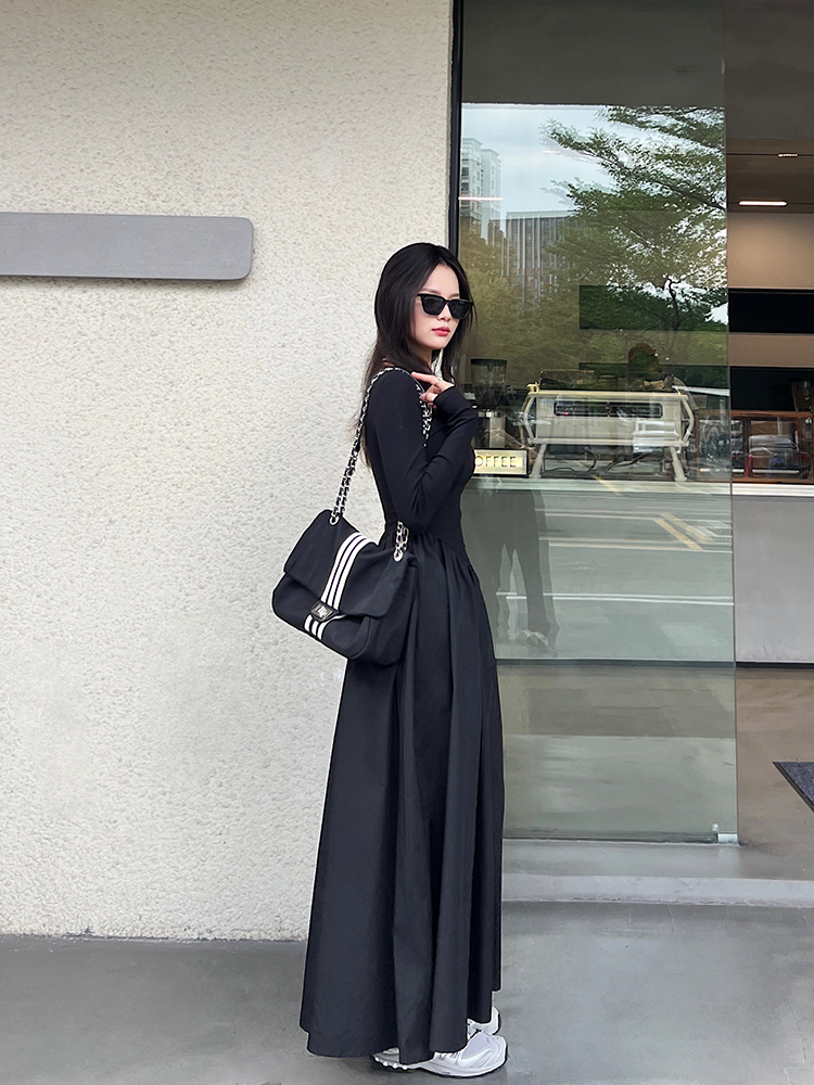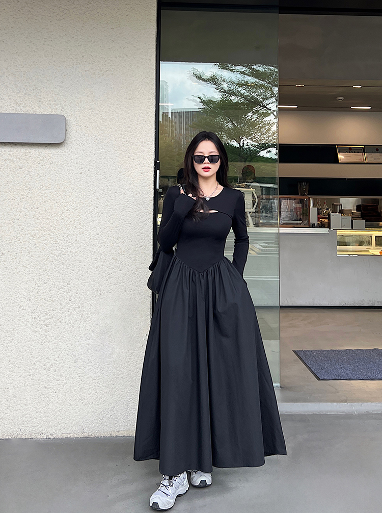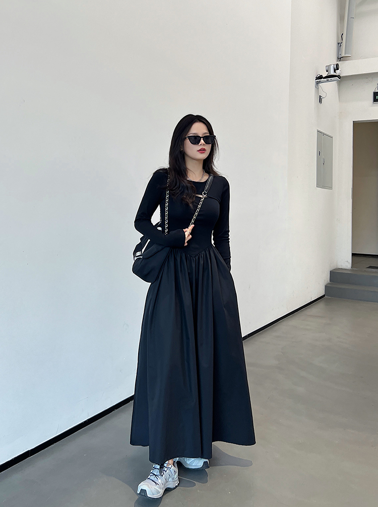 【商品名】【ワンピース】ヘプバーン風 気質よい 着痩せ 長袖ワンピース