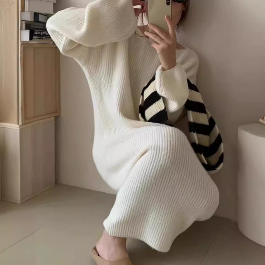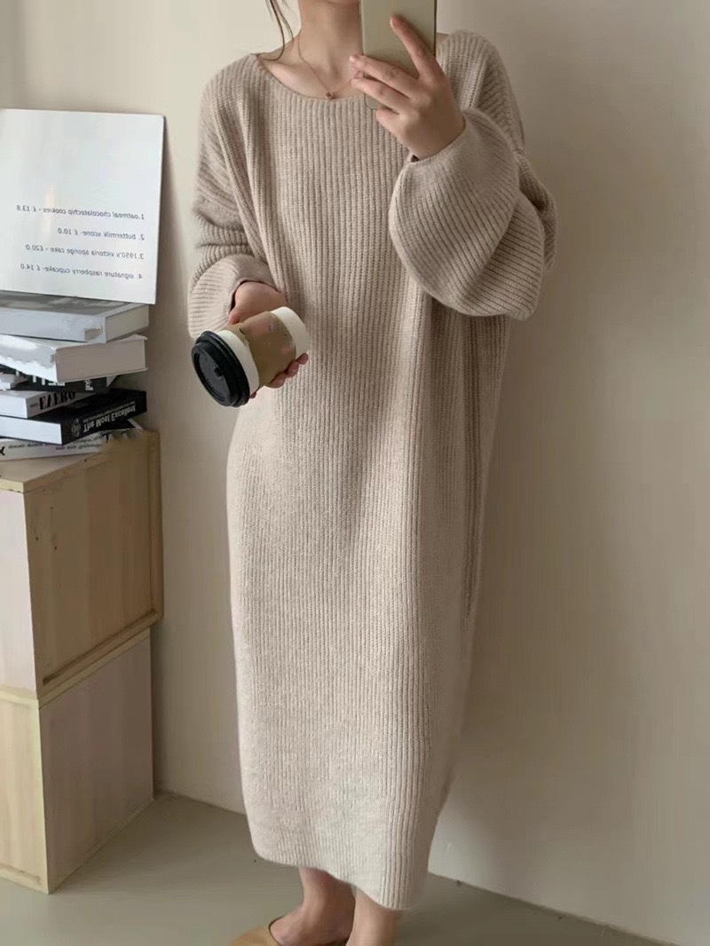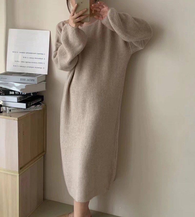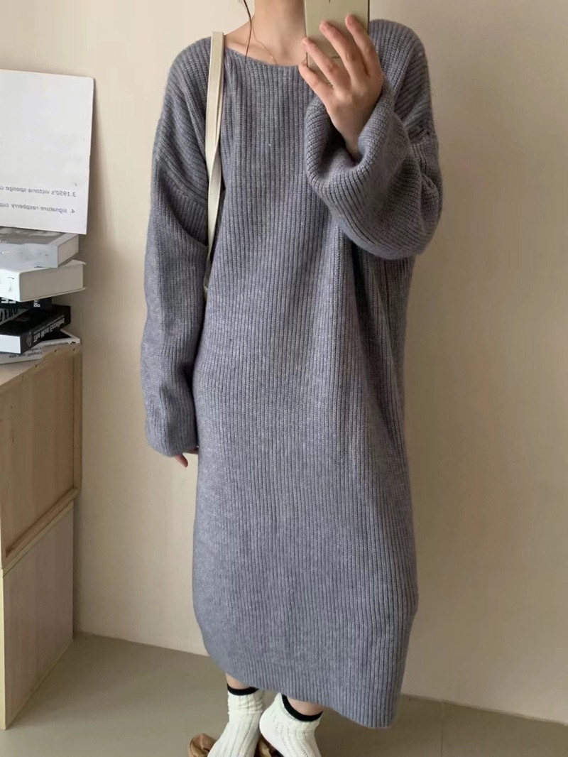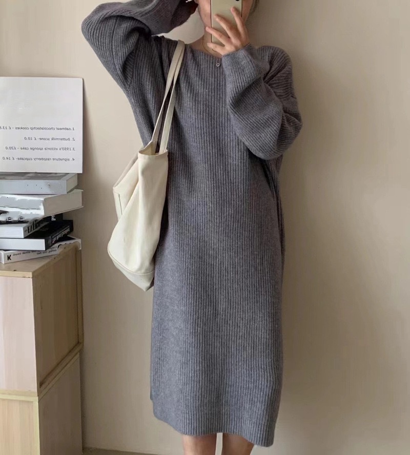 【ワンピース】春秋冬 韓国風 無地 合わせやすい 長袖 ワンピース