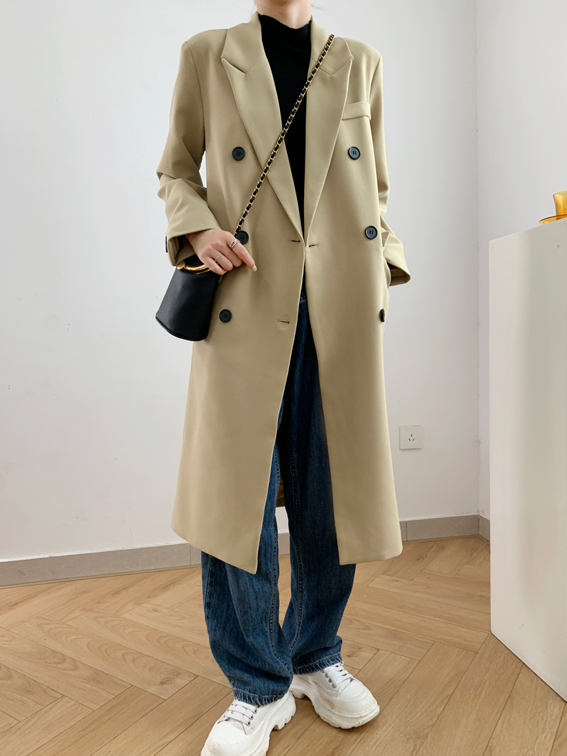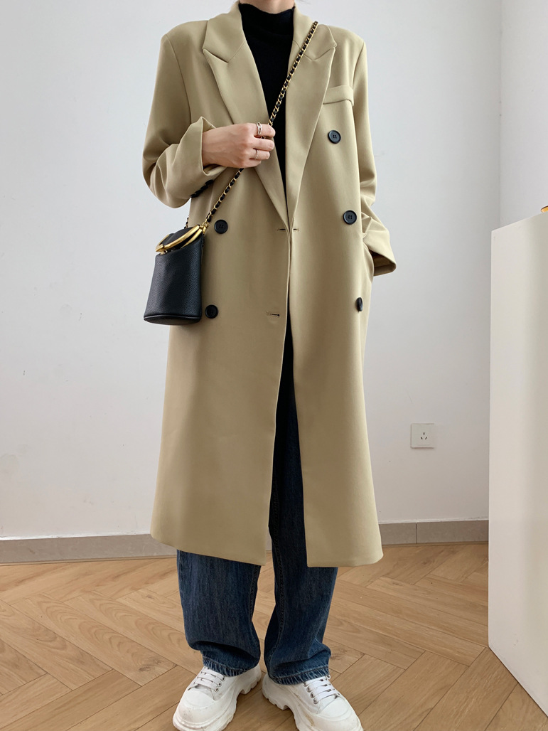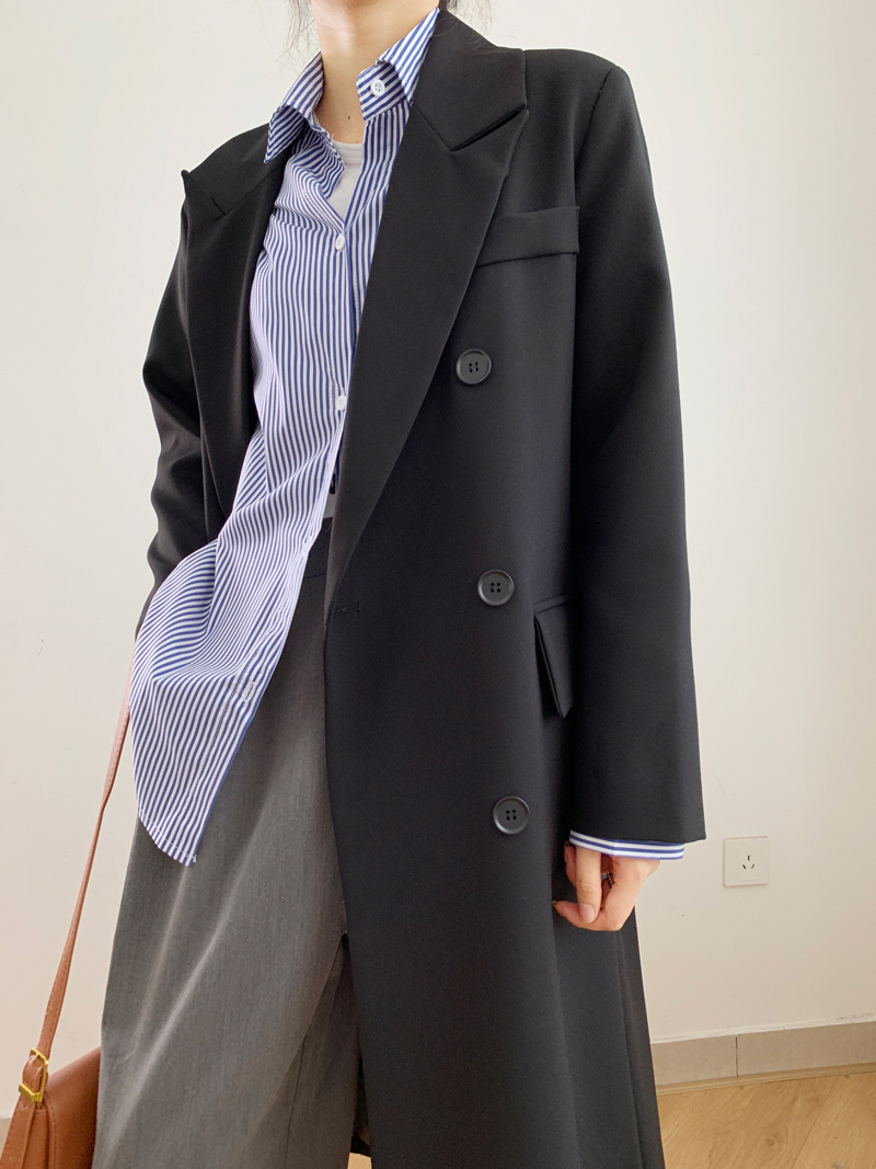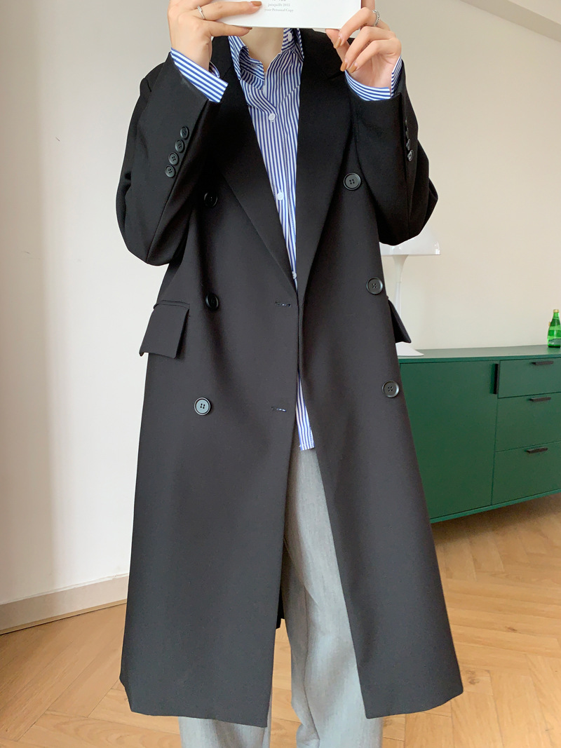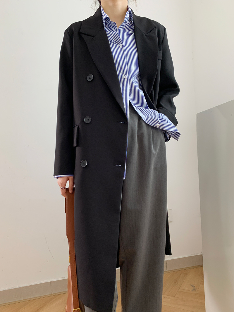 【商品名】【アウター】カジュアル 無地 ミドル丈 ゆったり スーツジャケット