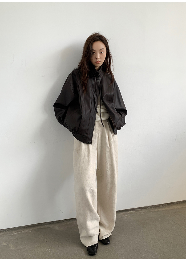 【商品名】【アウター】レトロ 秋冬新作 ショート レザー ジャケット