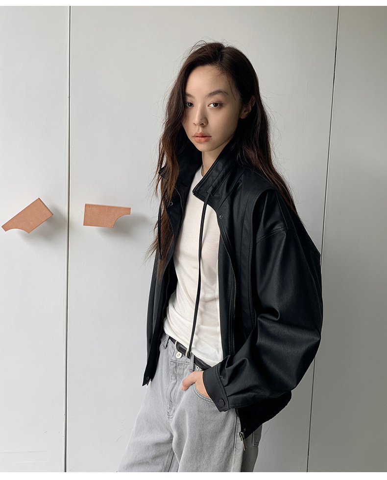 【アウター】レトロ 春秋 ショート レザー ジャケット【JZシリーズ】