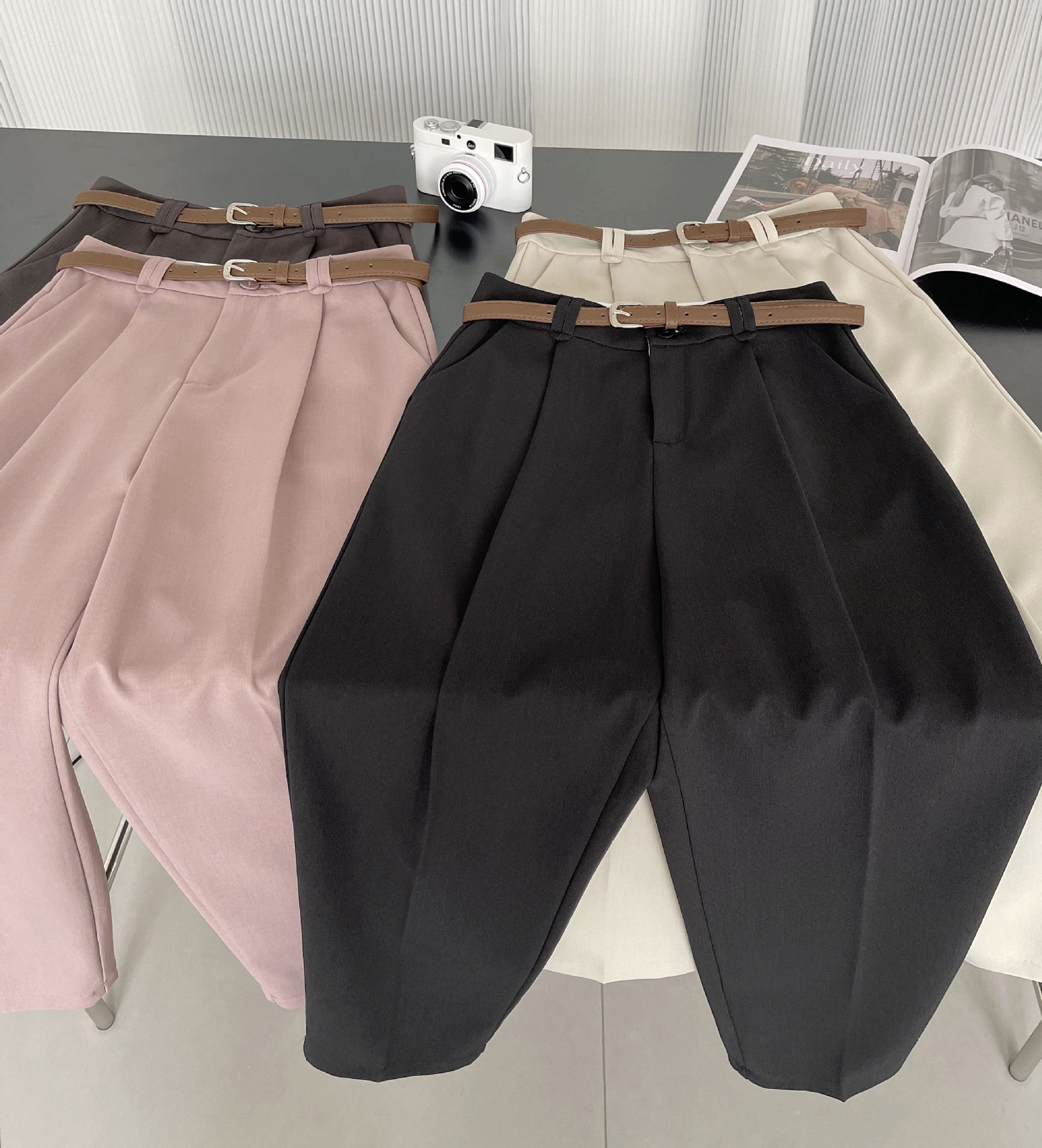 【ボトムス】レトロ ハーレムパンツ ゆったり ハイウエストドレープ 春夏 パンツ【JZシリーズ】