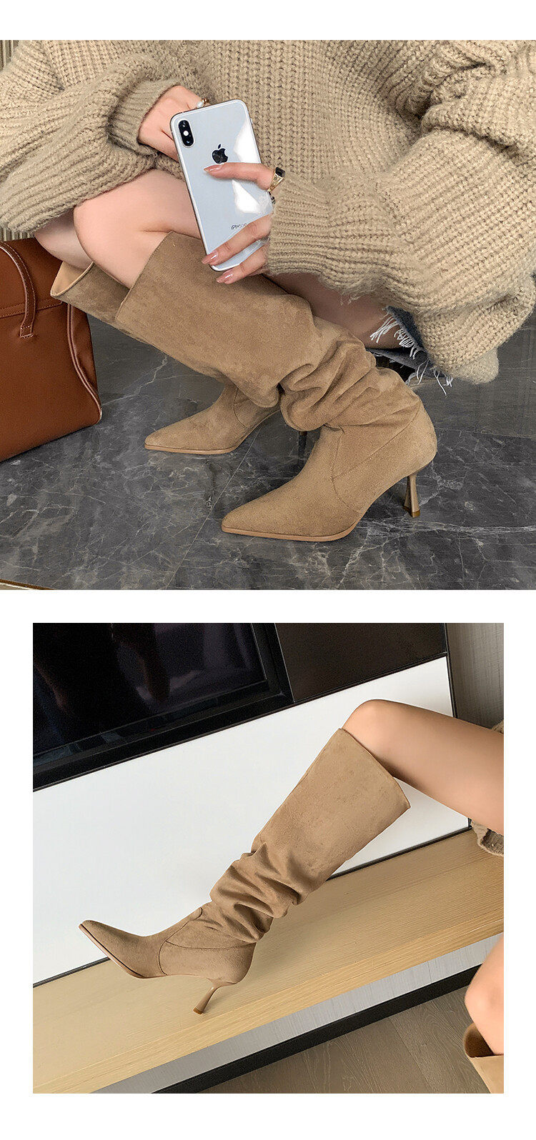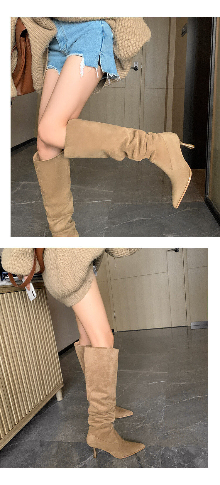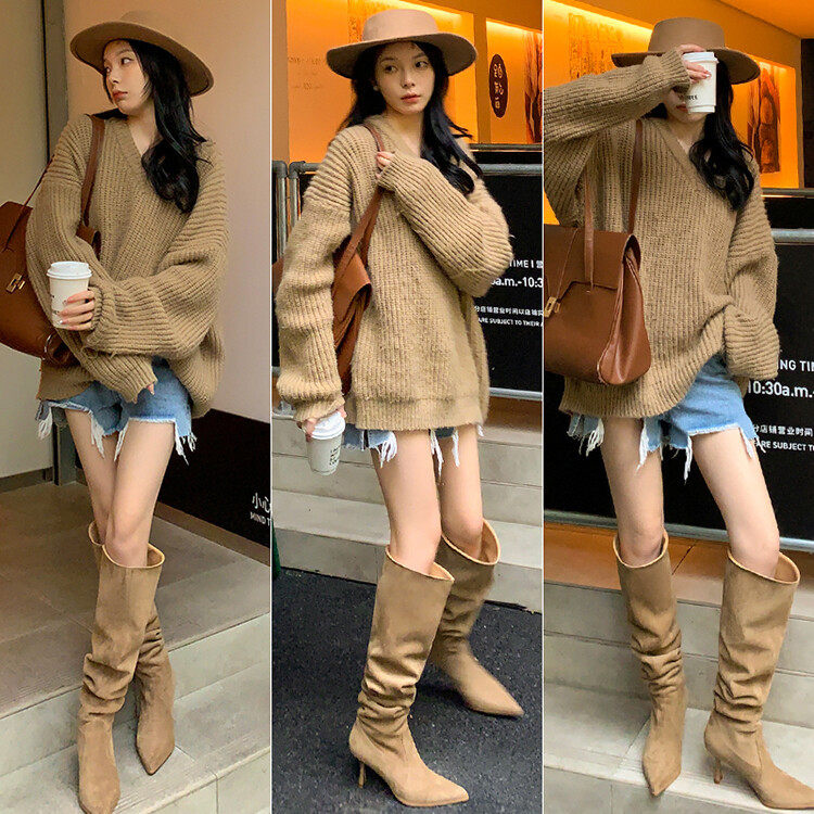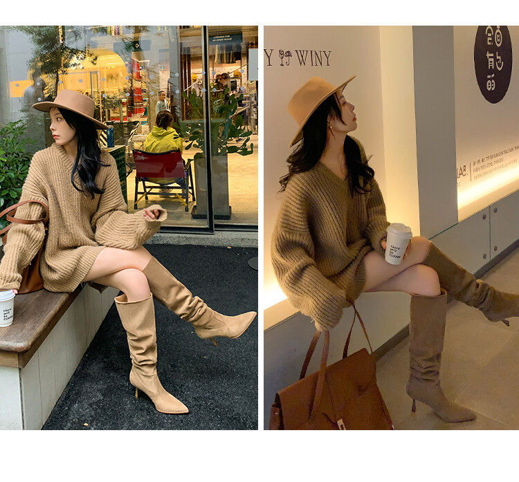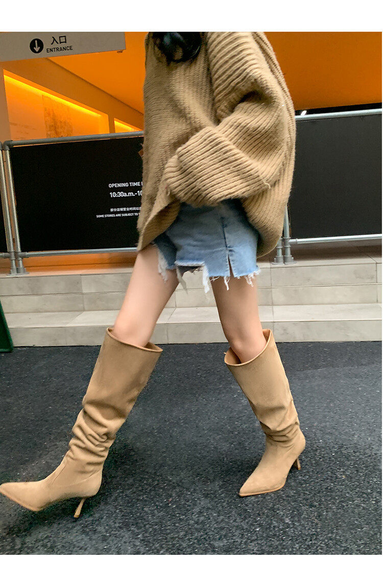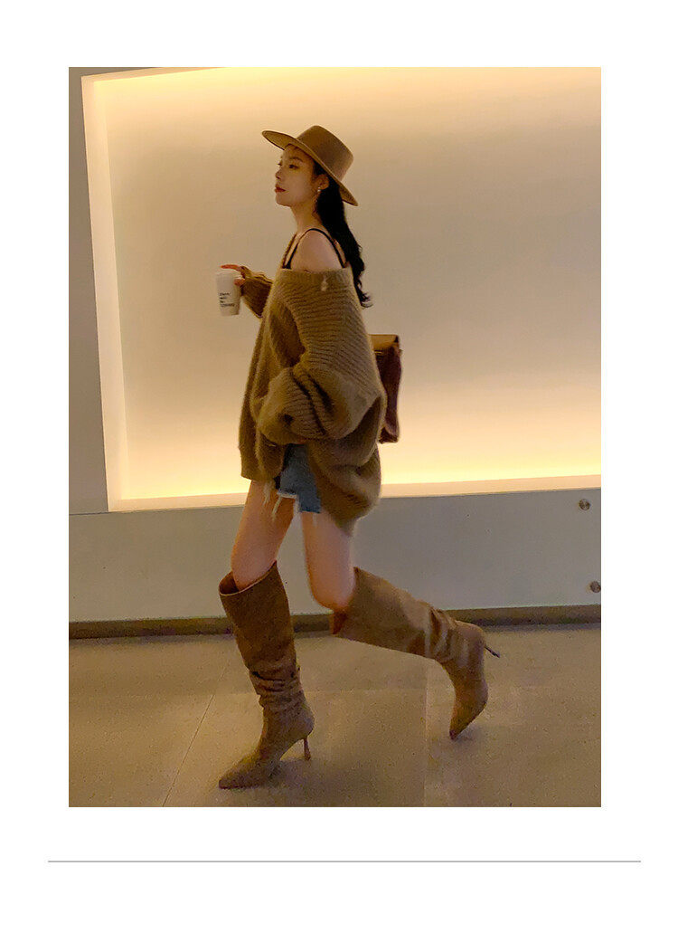 【商品名】【24AW】【シューズ】ファッション 合わせやすい スエード オーバーニー ハイバレルブーツ