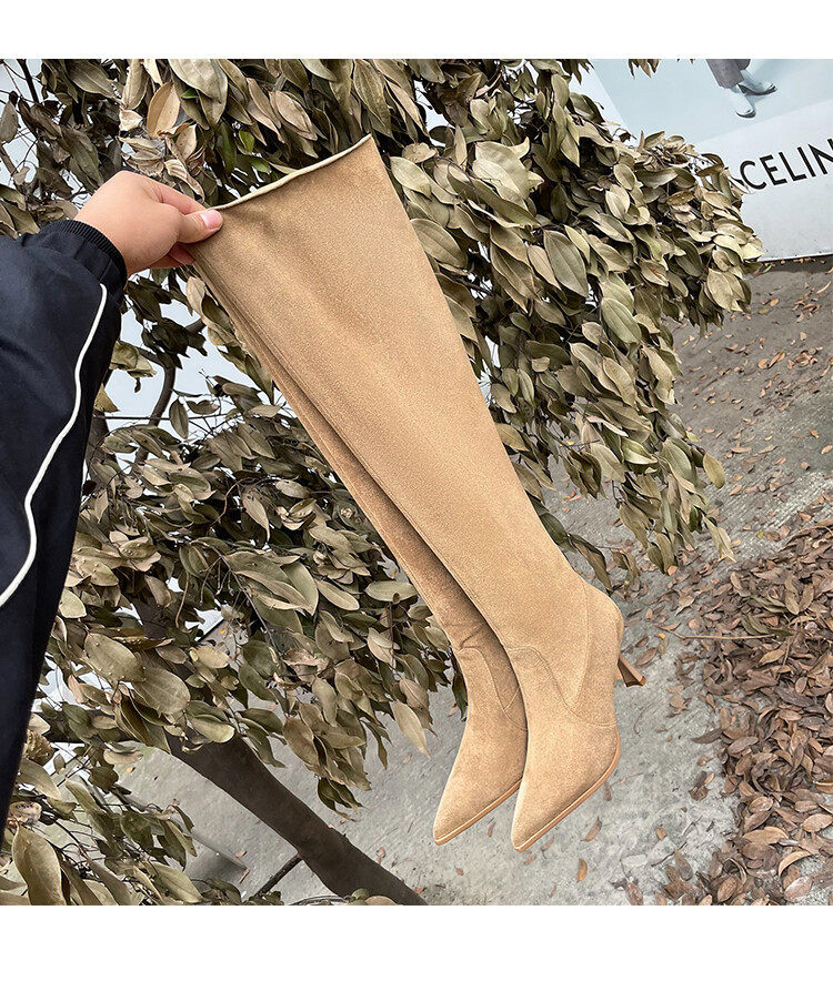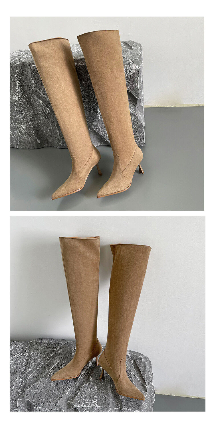 【シューズ】春秋冬 ファッション 合わせやすい スエード オーバーニー ハイバレルブーツ