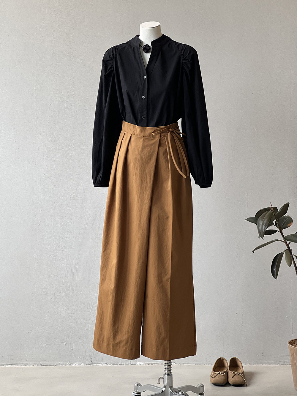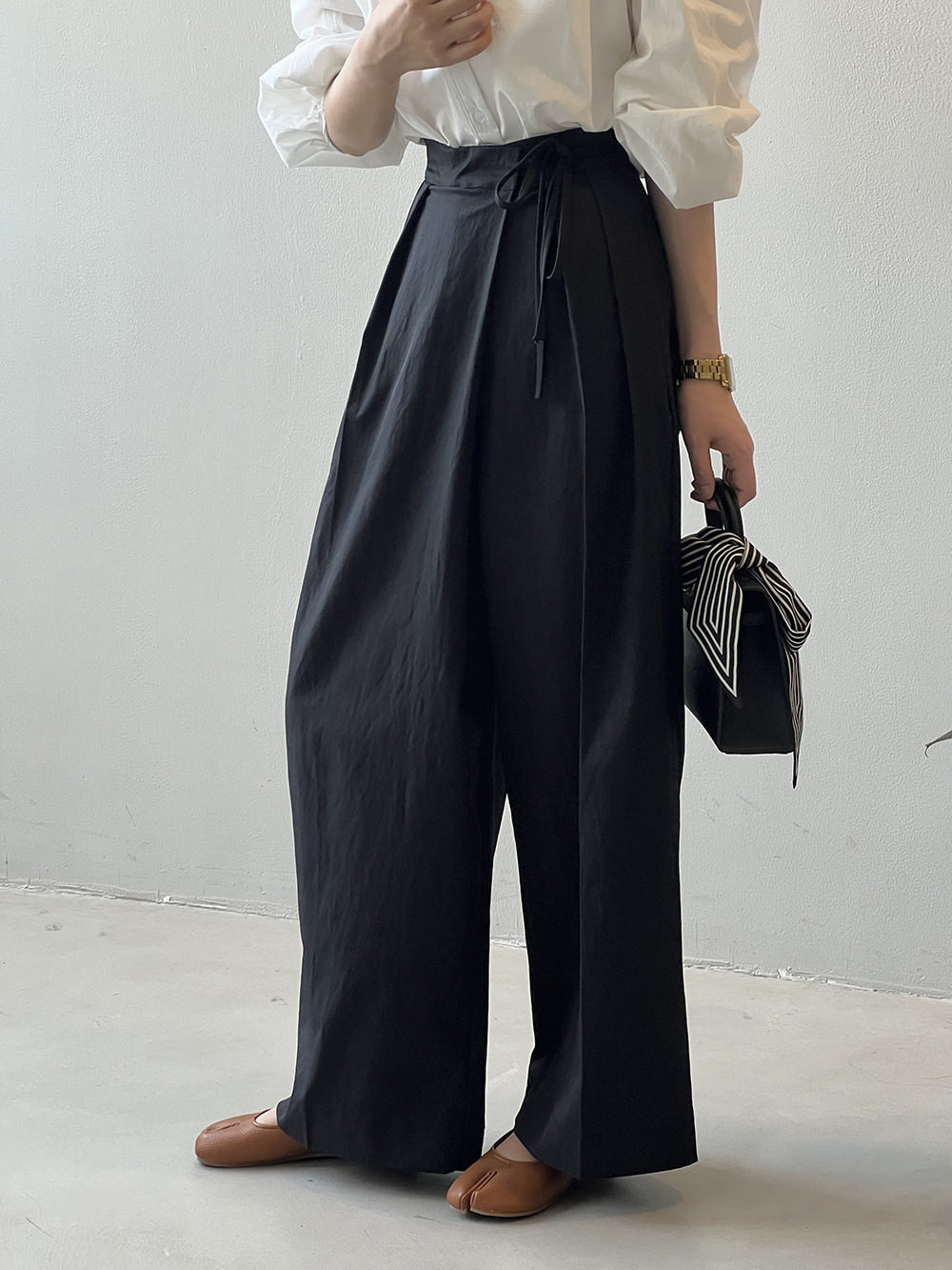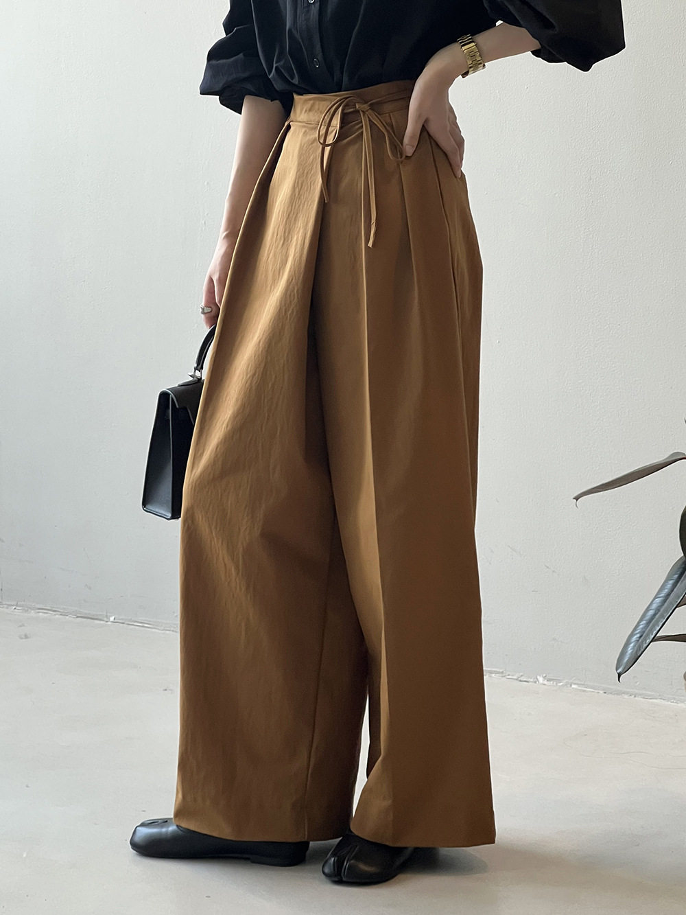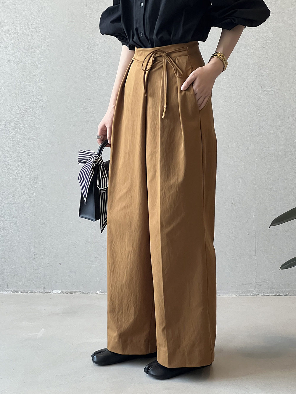 【ボトムス】特別なデザイン バンド飾り 春夏秋冬 無地 ワイドパンツ【JZシリーズ】