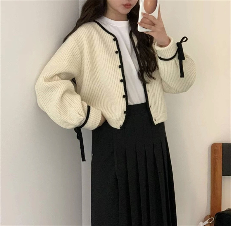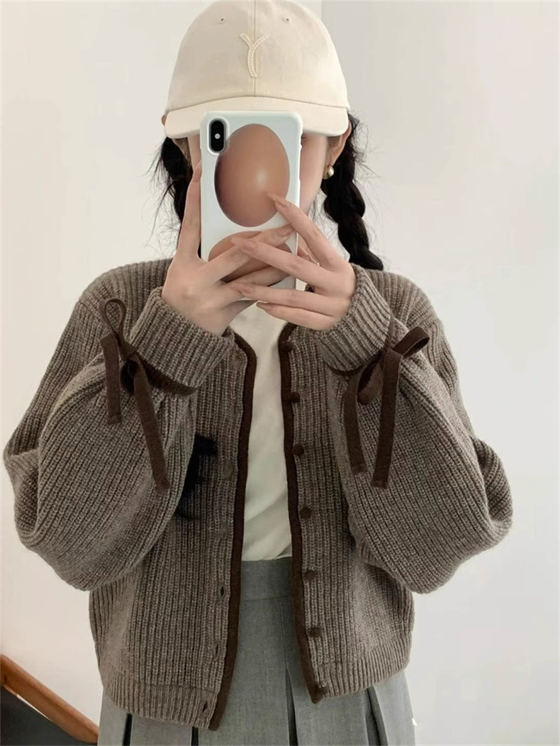【商品名】【アウター】スウィート 蝶結び 合わせやすい 着痩せ カーディガン