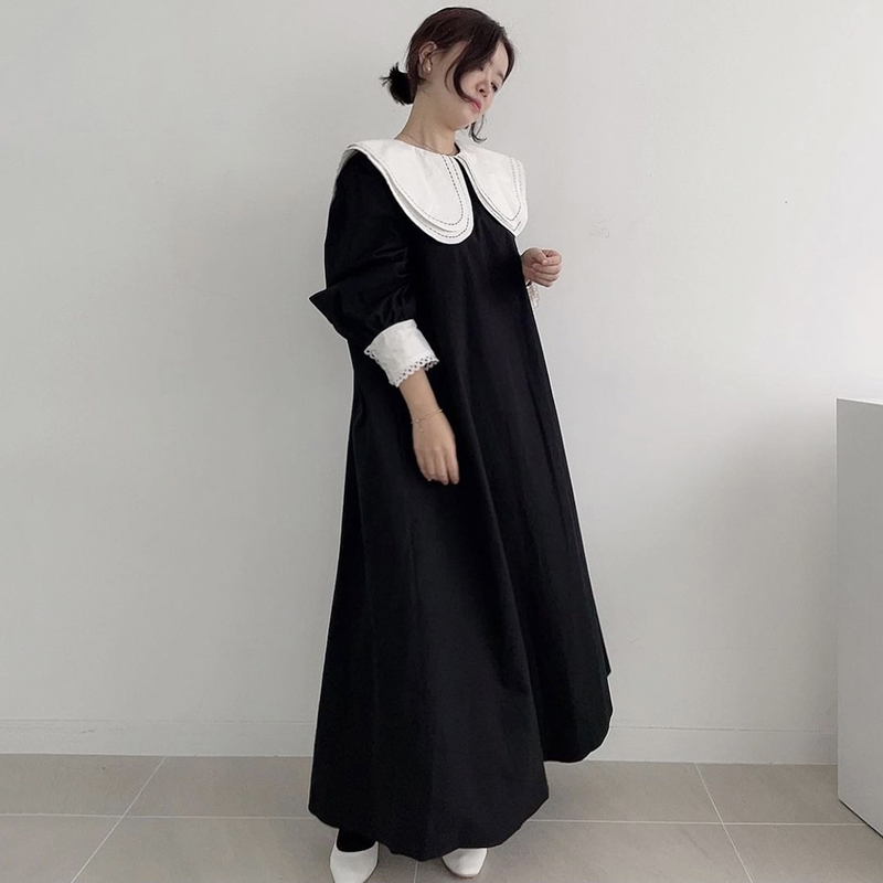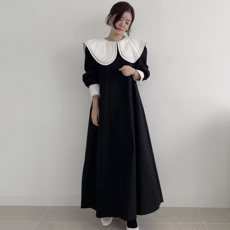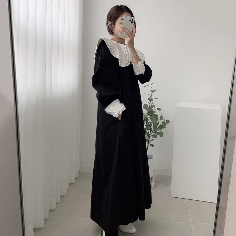 【ワンピース】フレンチレトロ 切替デザイン 大ポケット 長袖 ワンピース 秋新作 ゆったり 【JZシリーズ】