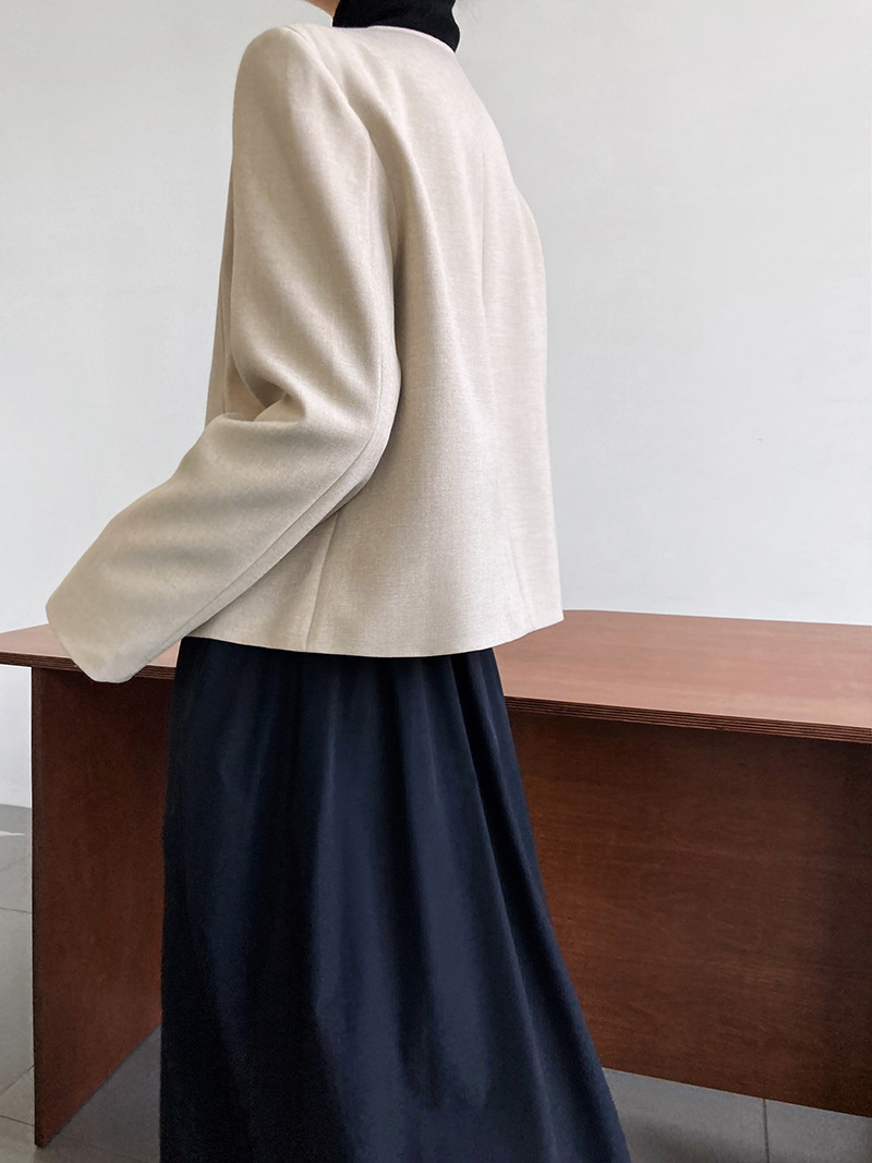 【アウター】気質と高級感 ミディアムロング 斜めボタン襟 ウールコート【JZシリーズ】