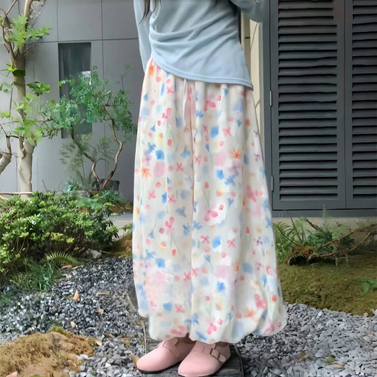 【ボトムス】ハイウエスト 刺繍入り スポーツパンツ レディース 春秋 ゆったり ワイド【FCシリーズ】
