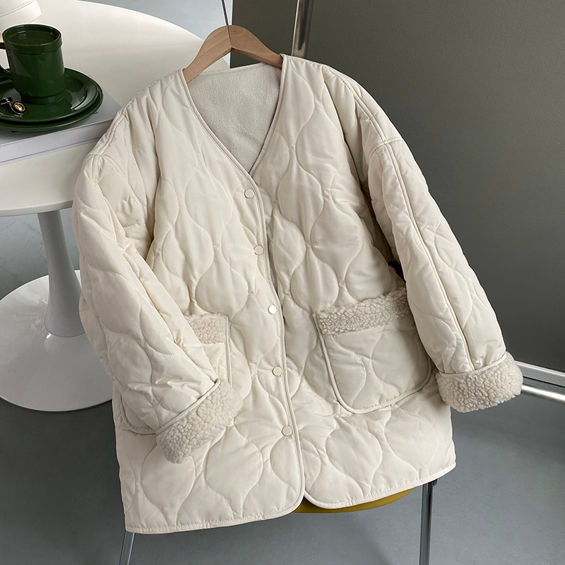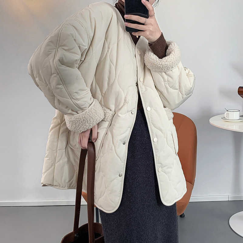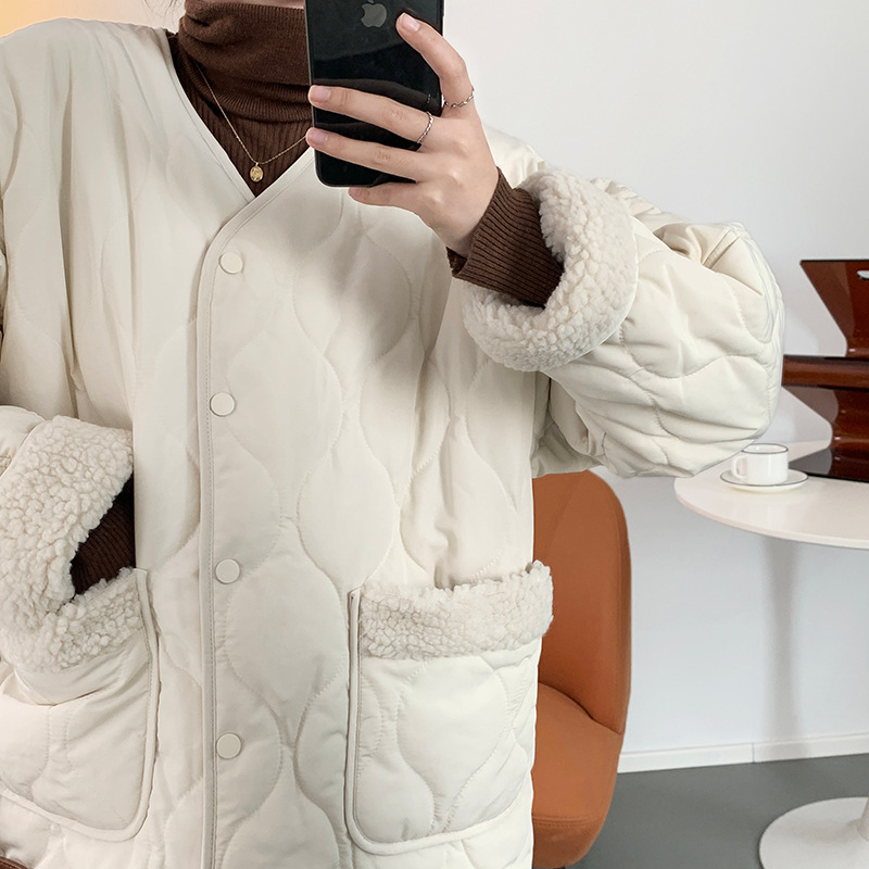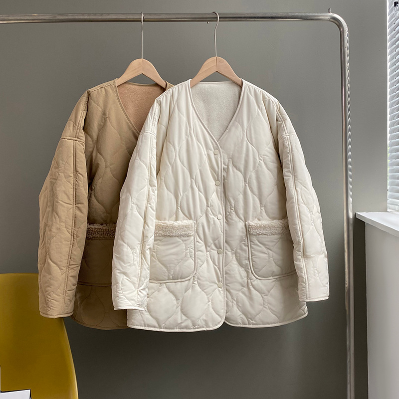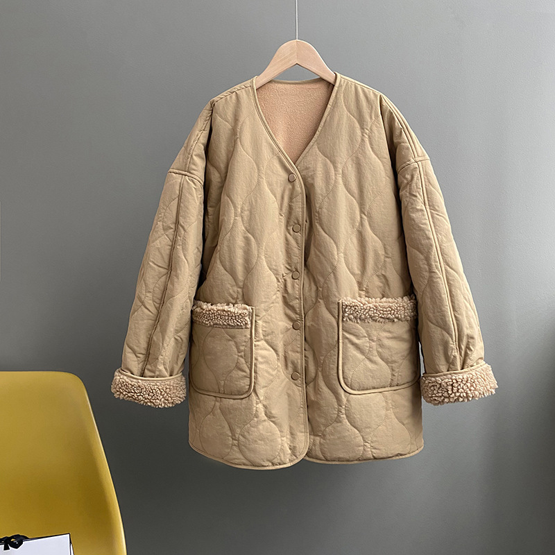 【商品名】【アウター】ファッション 定番 切り替え Vネック 綿入れコート