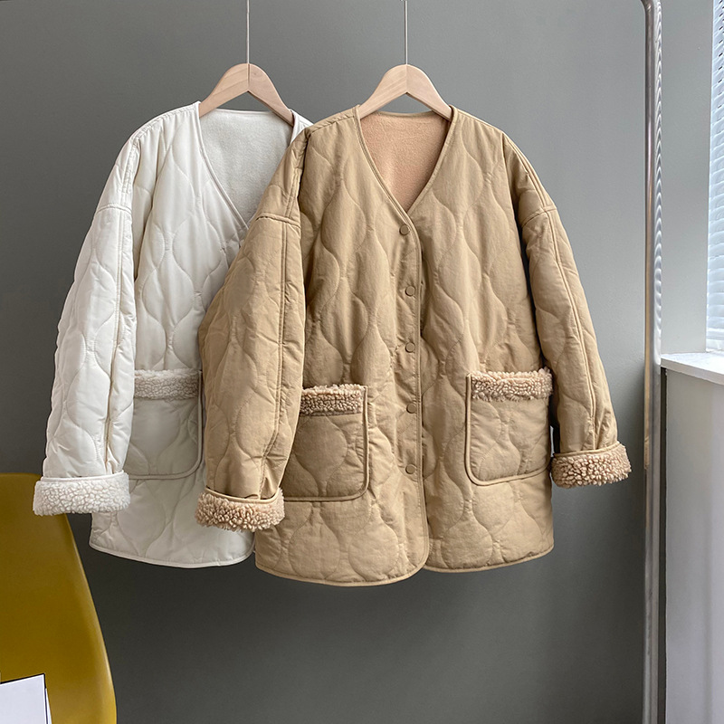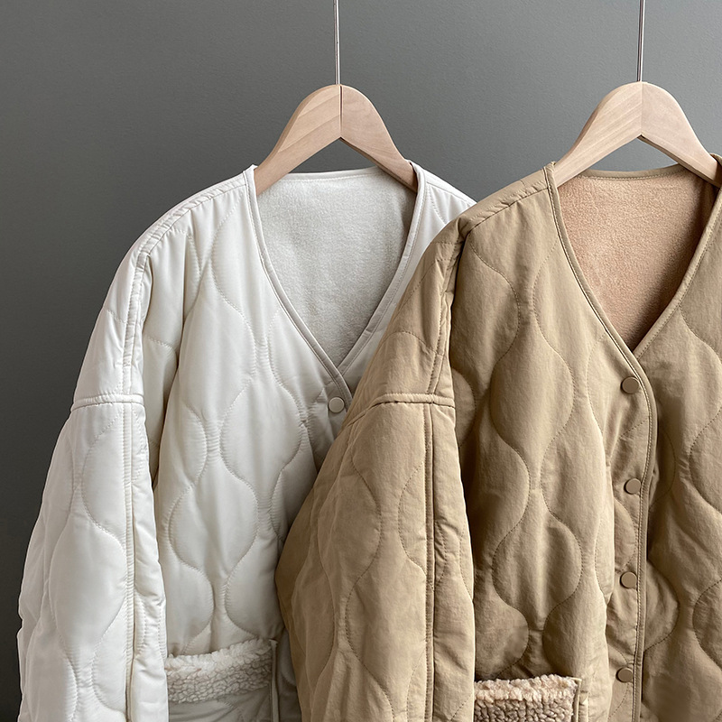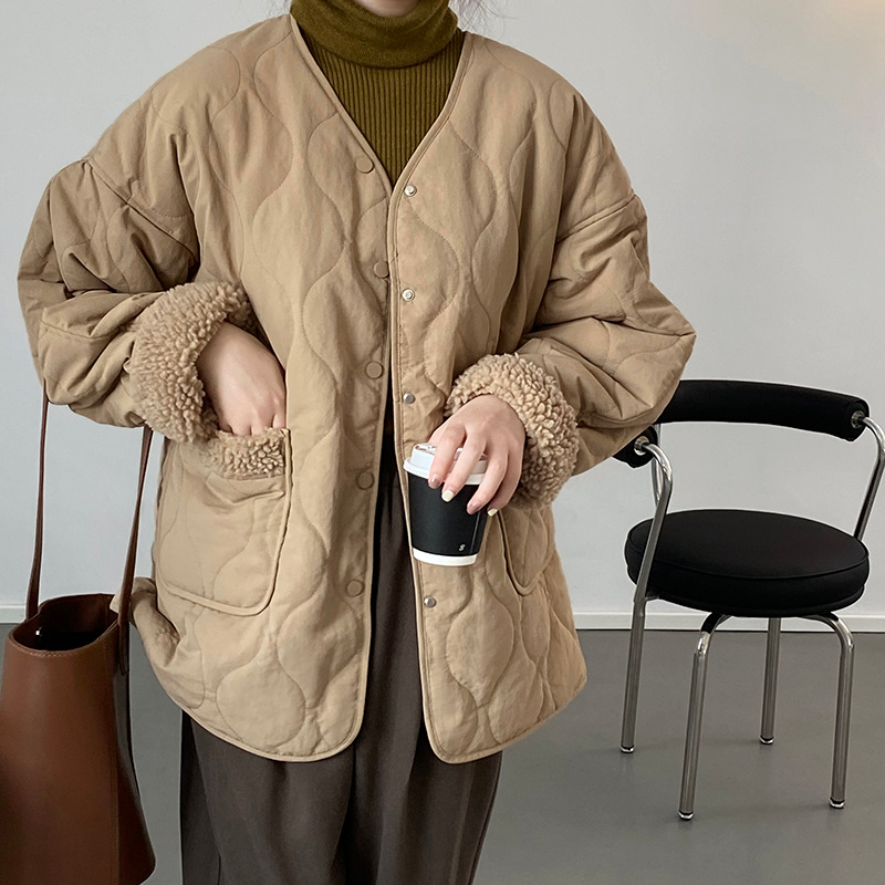 【アウター】ファッション 秋冬 定番 切り替え Vネック 綿入れコート