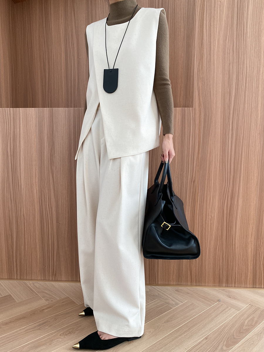 【商品名】【ボトムス】上質 あつさり 目立つ シンプル ベスト+ワイドパンツ 上下セット